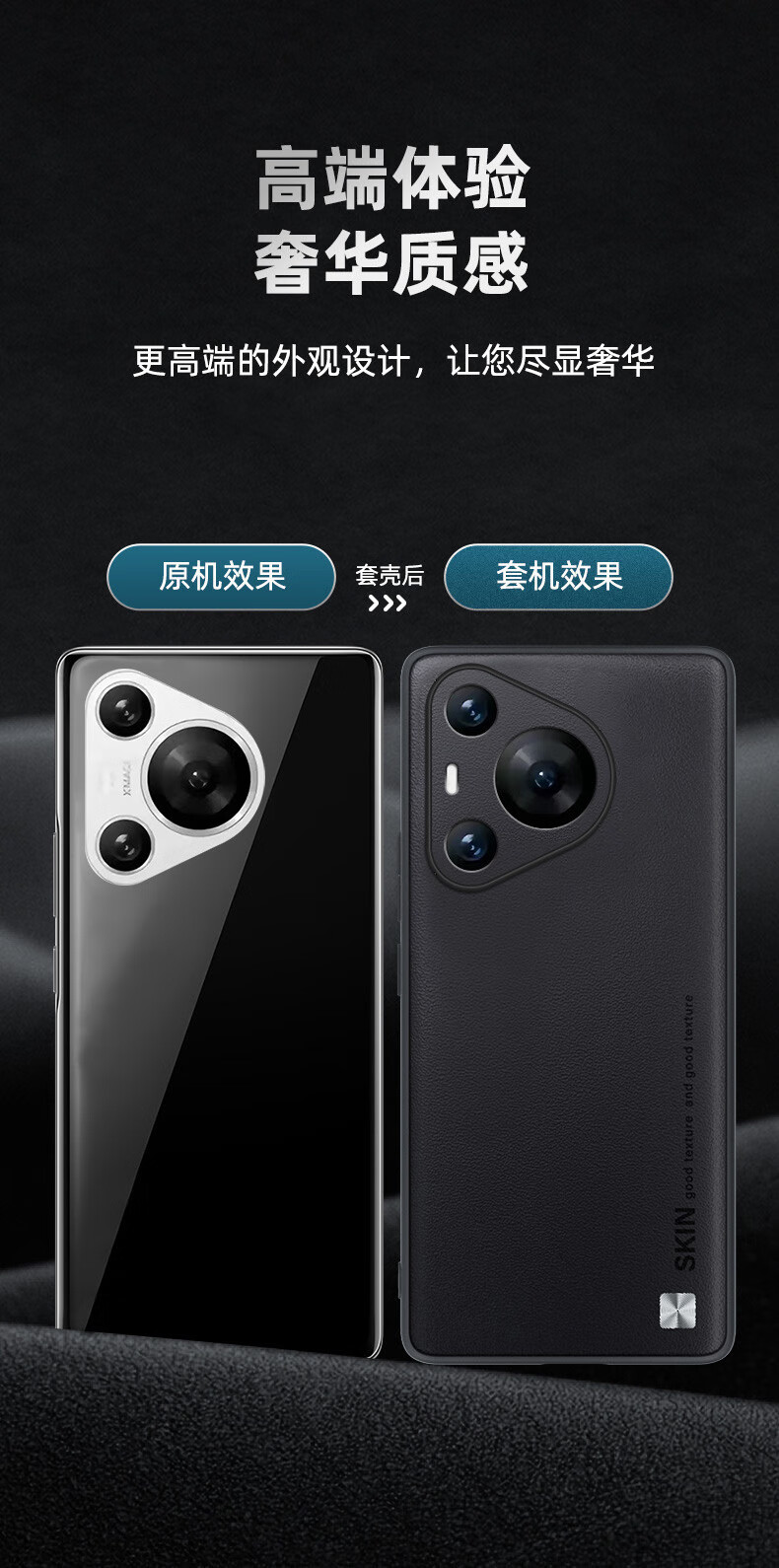 适用华为Pura70手机壳镜头全包素皮软壳保护套Pura70ultr防摔CD纹 经典黑(1个装) P70Pro