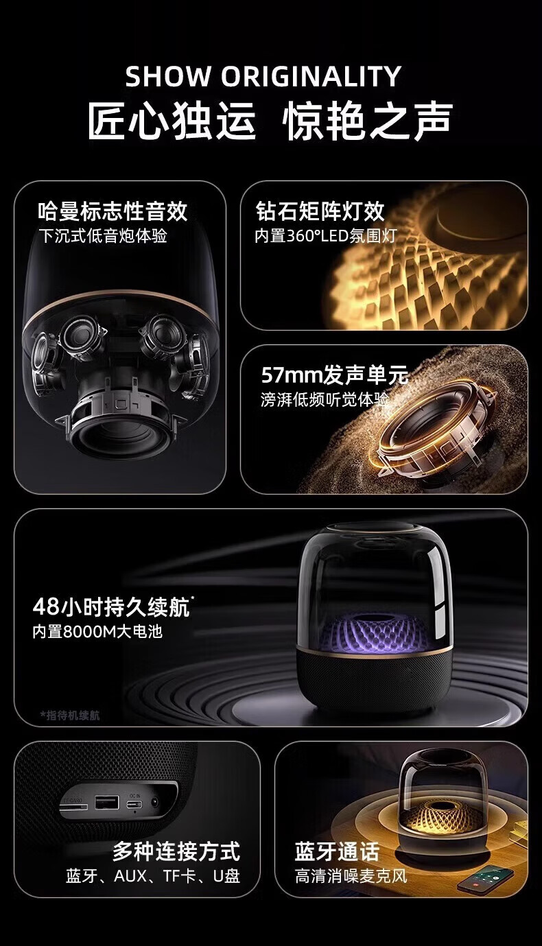 MILDRY【曼哈琉璃6代】大哈曼卡顿蓝牙音响华强北音箱无线6代柏林之声五桌面台式电脑低音炮 【黑金典藏丨琉璃6代】Mini版