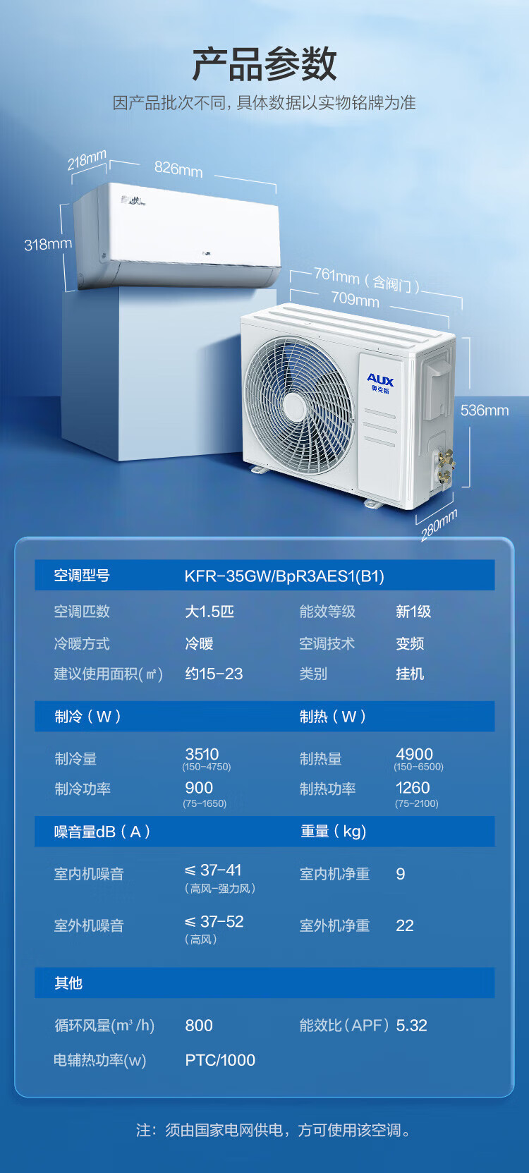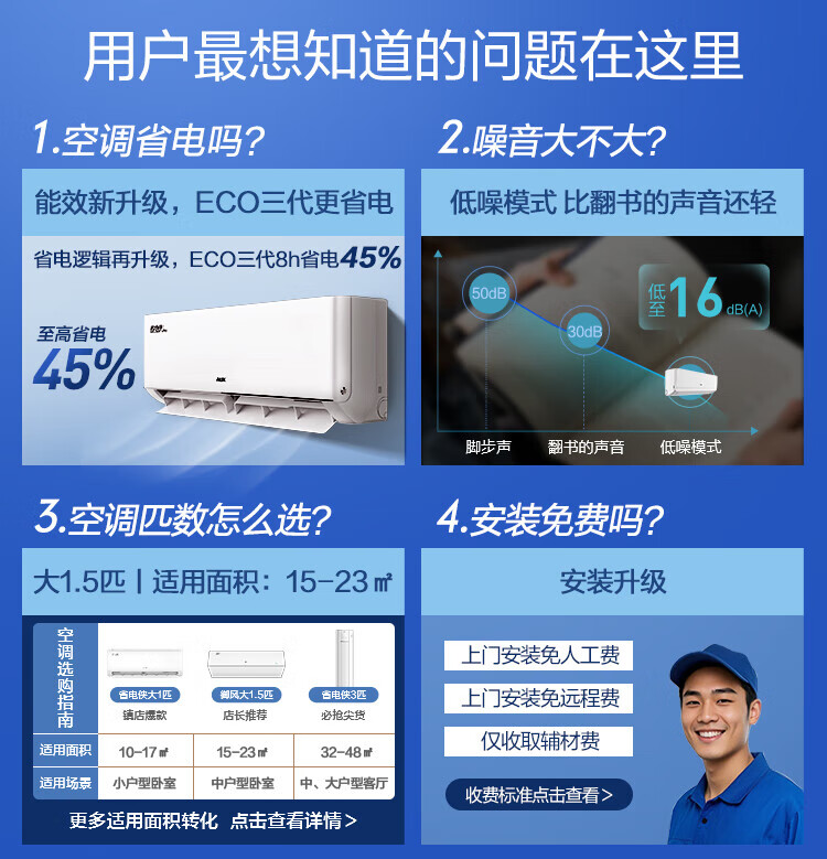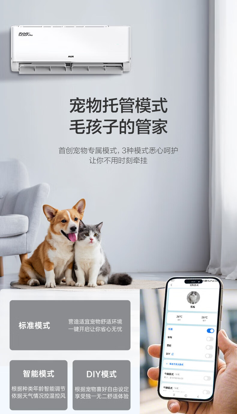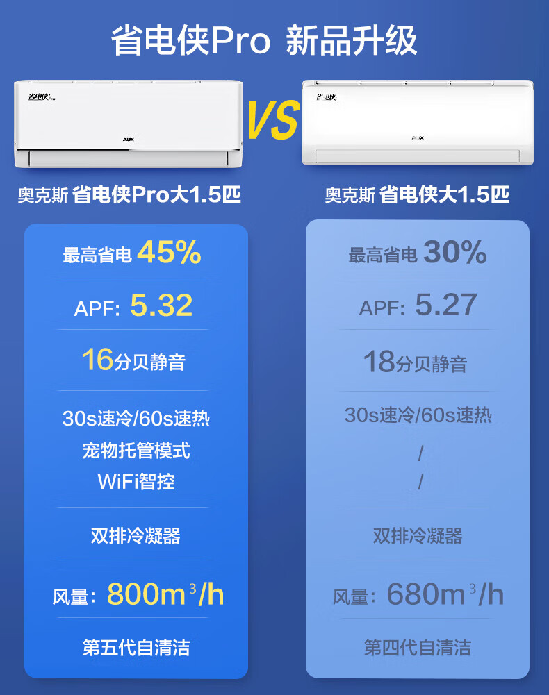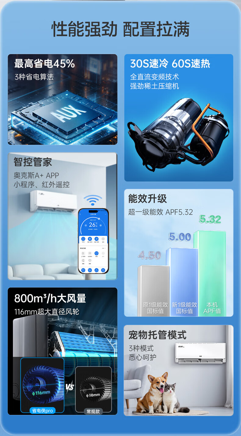 奥克斯大1.5匹 省电侠Pro 大1匹新一级能效 WiFi语音智控 家用变频冷暖两用 挂壁式空调挂机 大1匹 一级能效 省电侠PRO 省电45%