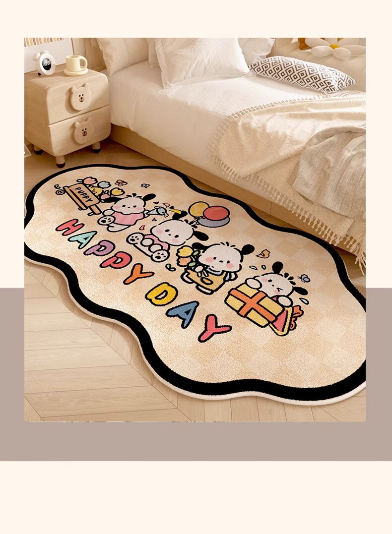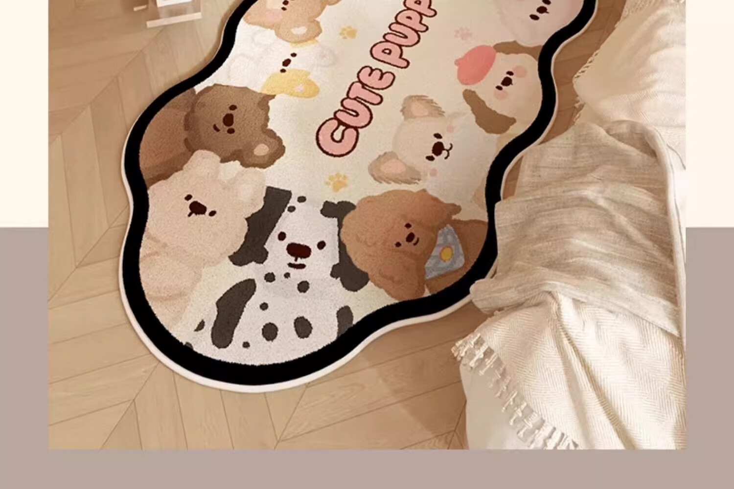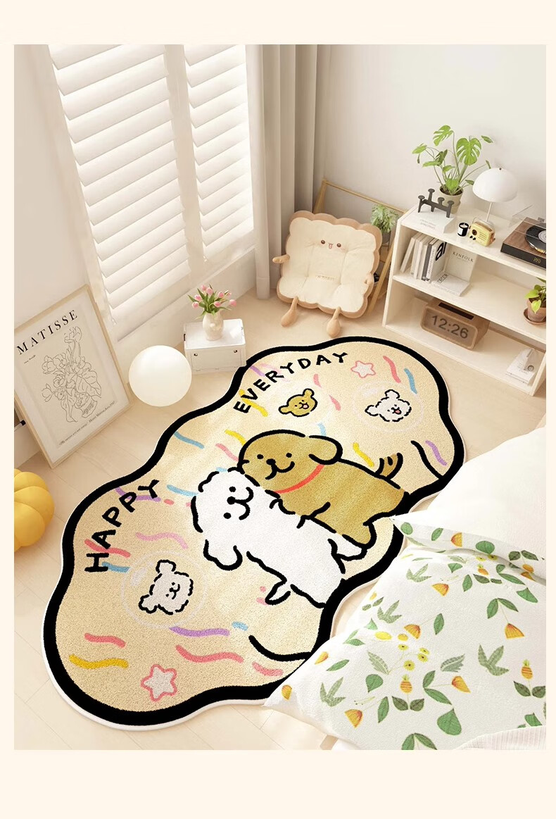 织百佳多巴胺卧室床边地毯儿童房间可爱异形不规则防水可擦女孩装饰地垫 J异形小狗 60*160CM