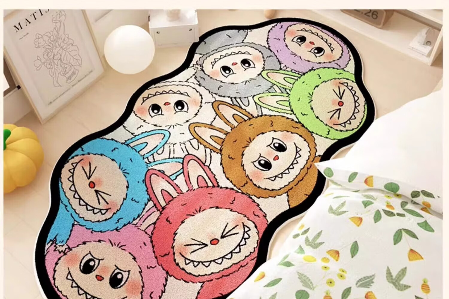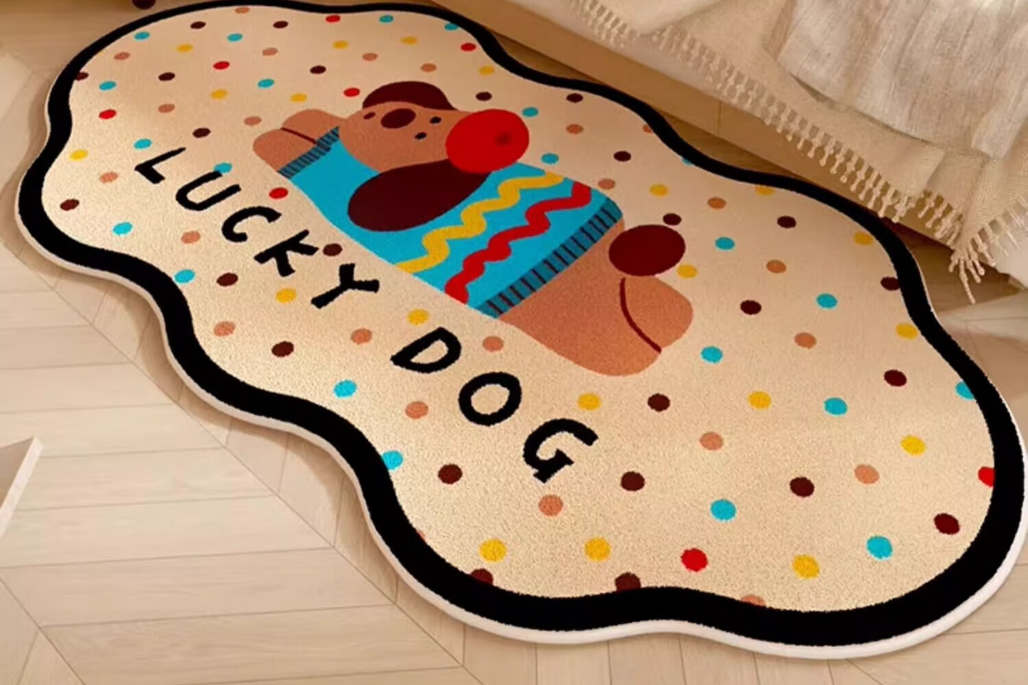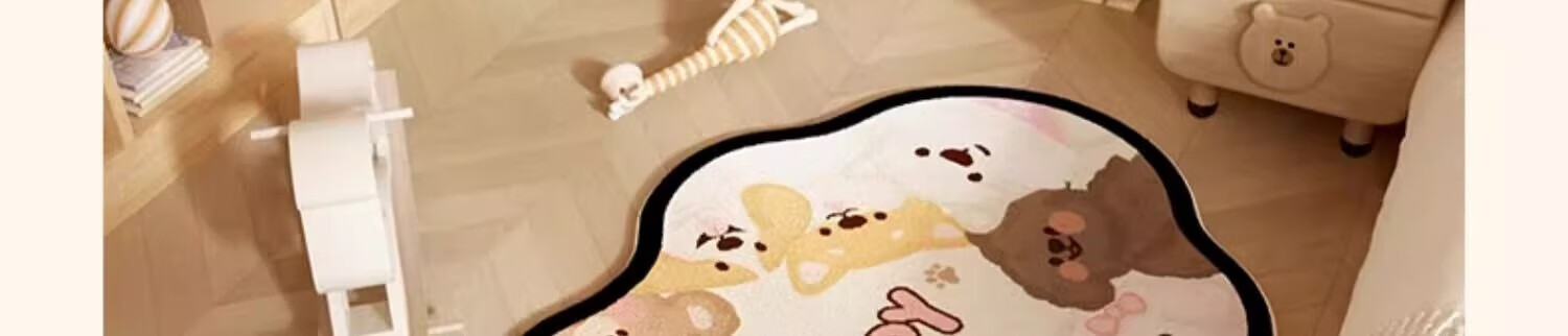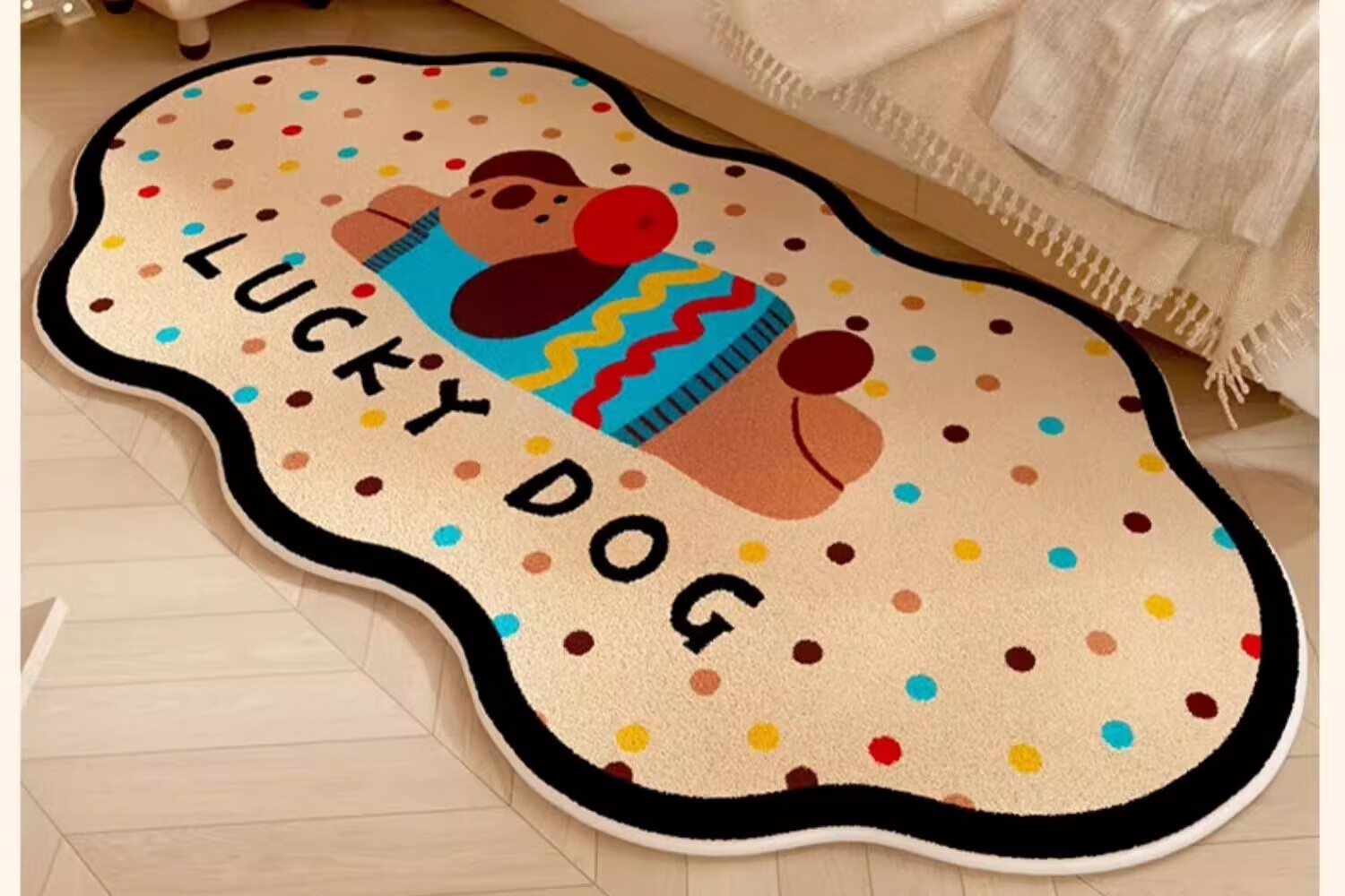 织百佳多巴胺卧室床边地毯儿童房间可爱异形不规则防水可擦女孩装饰地垫 J异形小狗 60*160CM