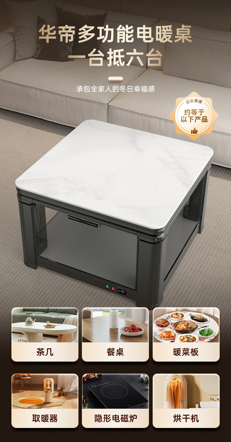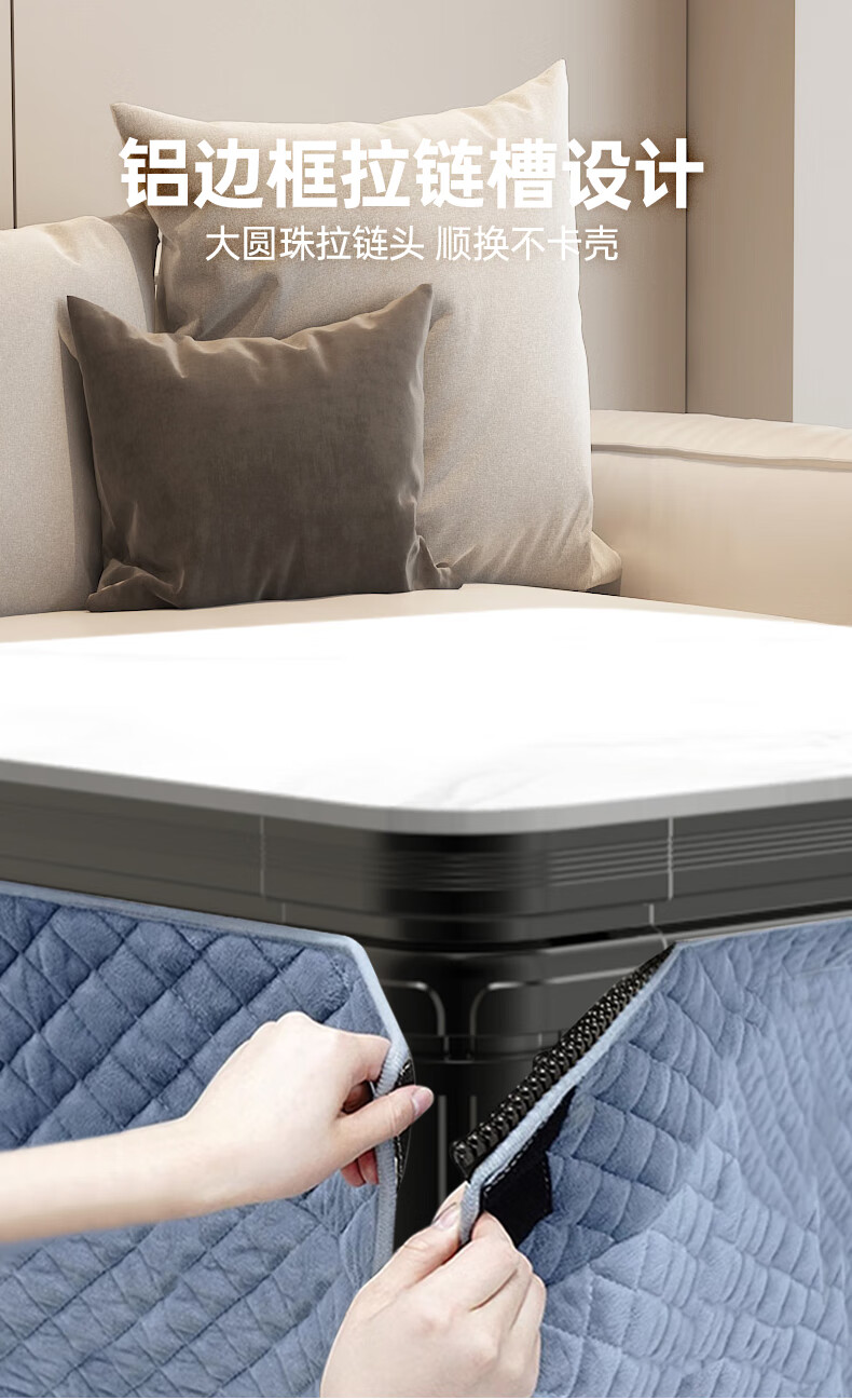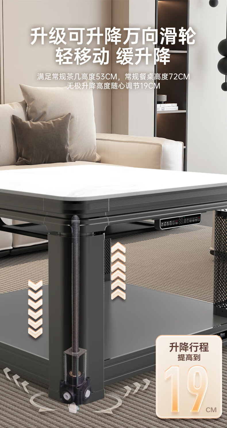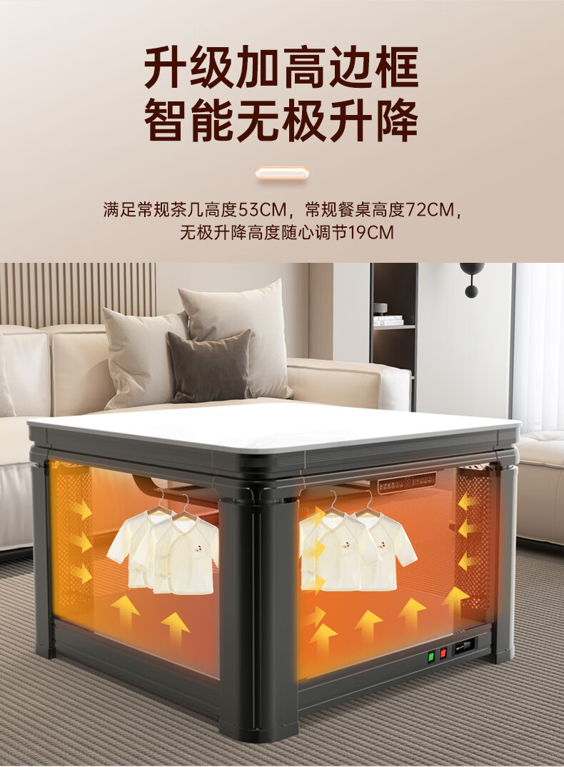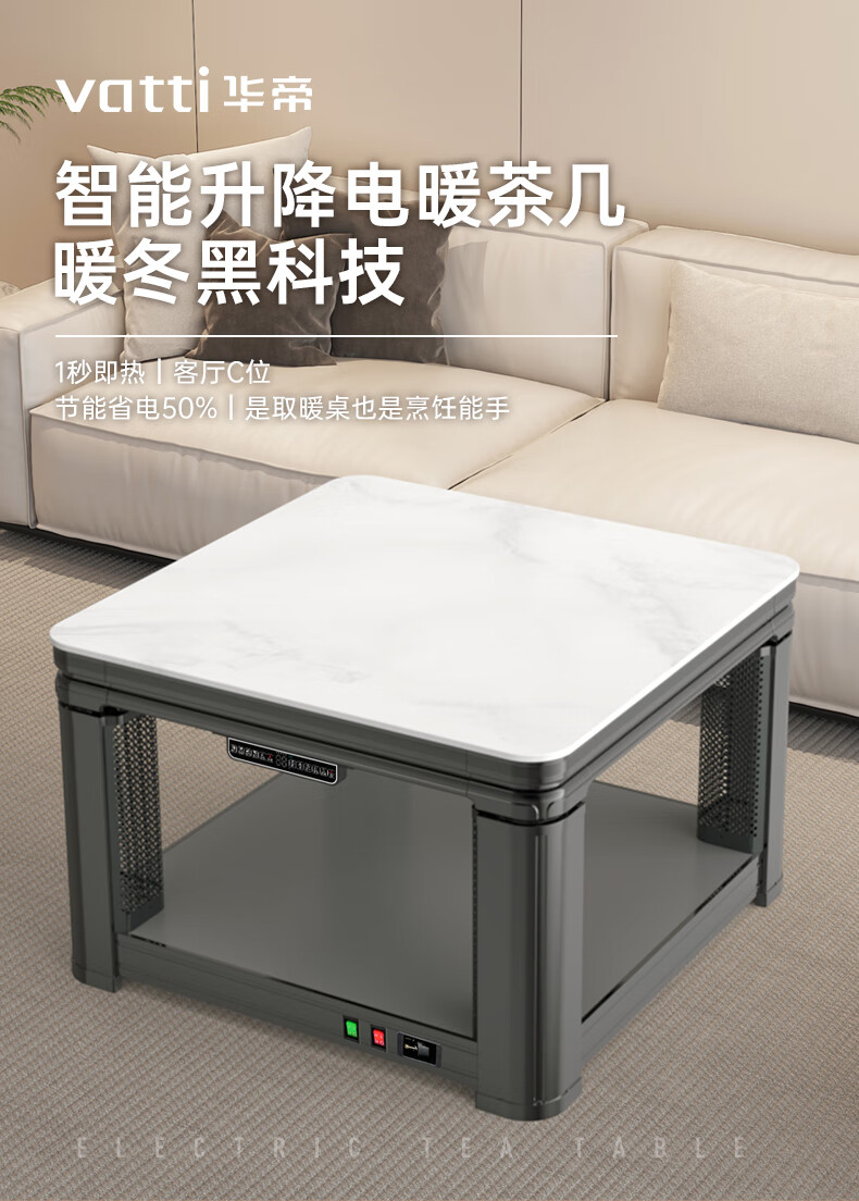 华帝(VATTI)取暖桌 电暖桌 烤火桌电烤桌取暖语音升降轻移动家用电烤炉桌子烤火电暖炉烤火炉正方形餐桌 G02白800*800mm智能升降移动滑轮轨道桌罩