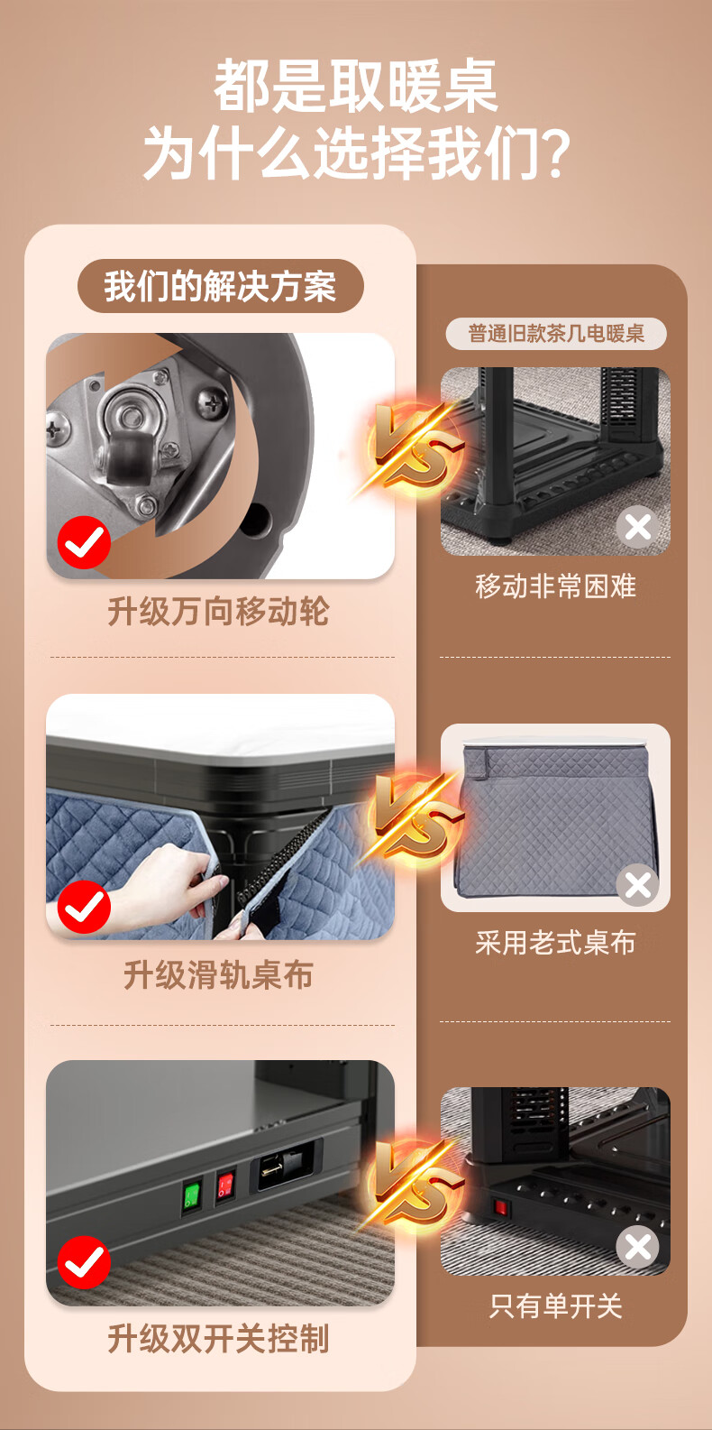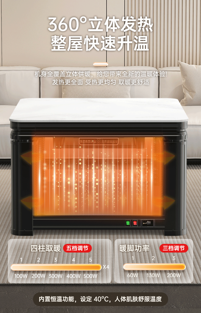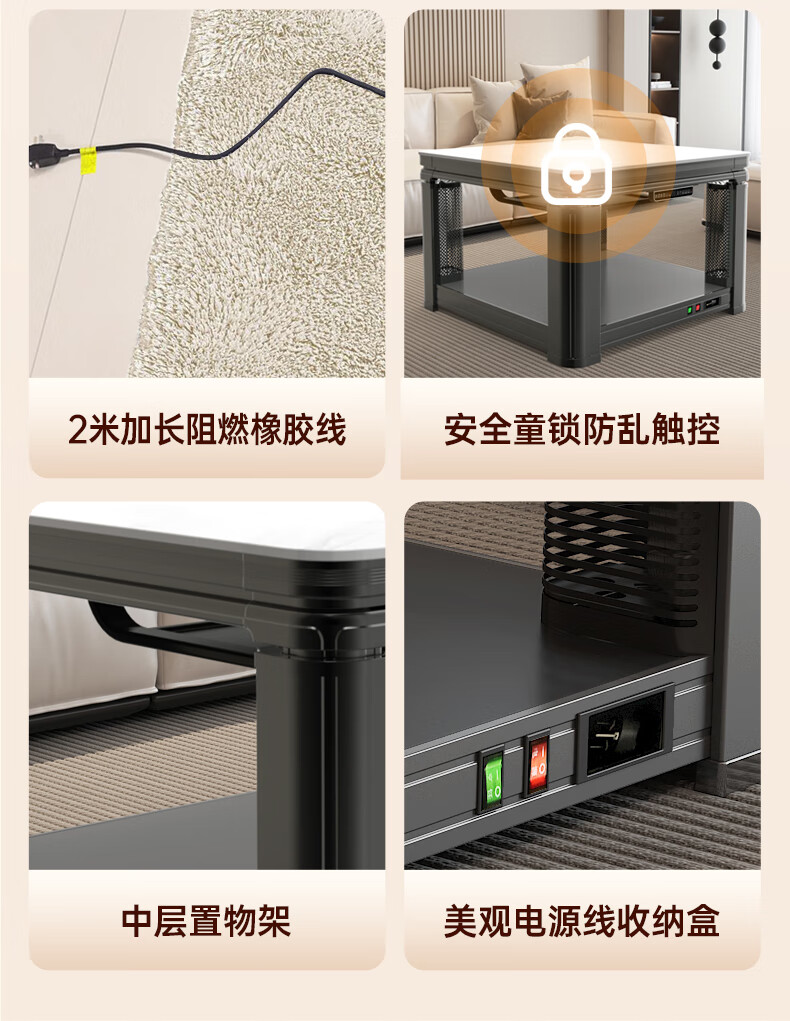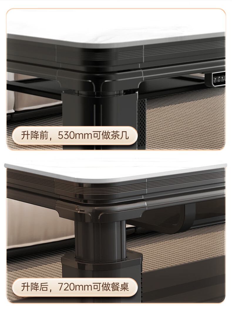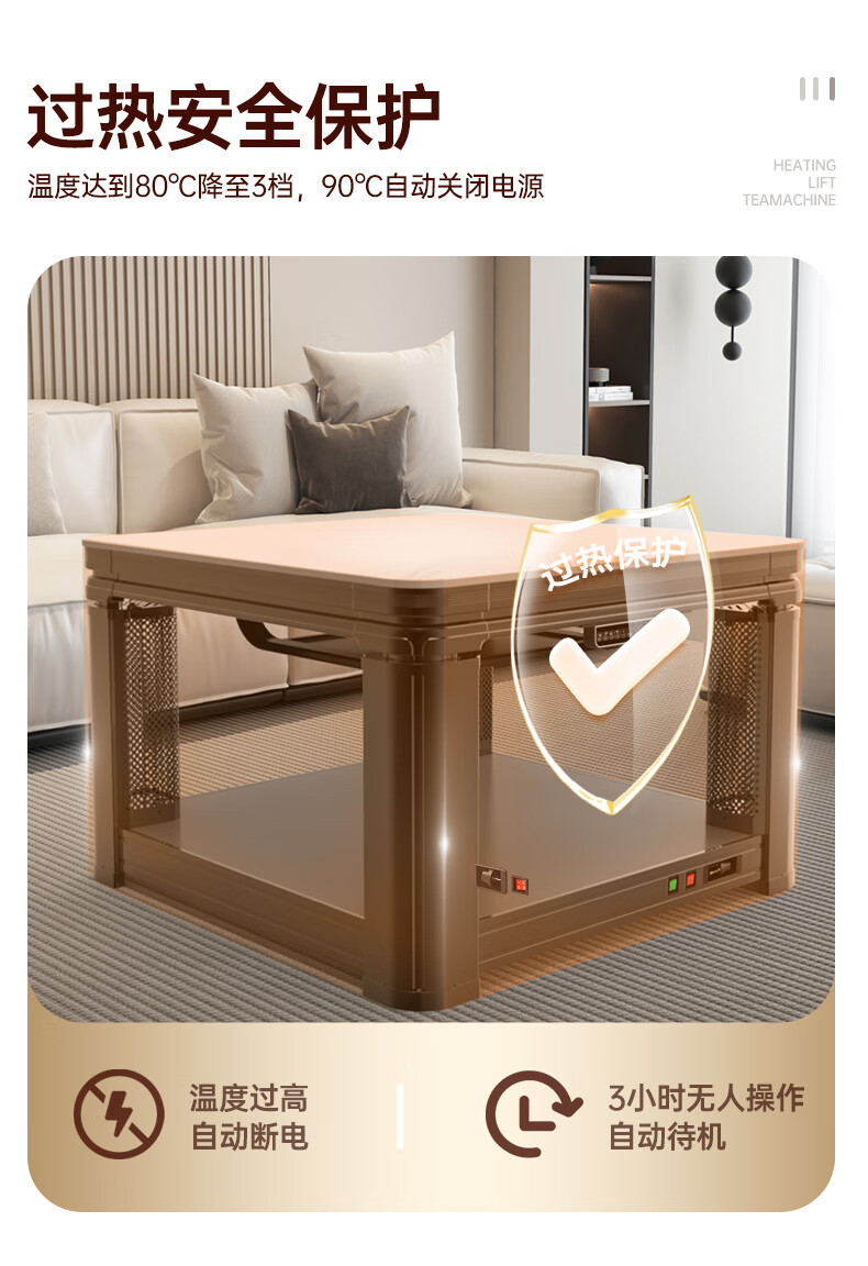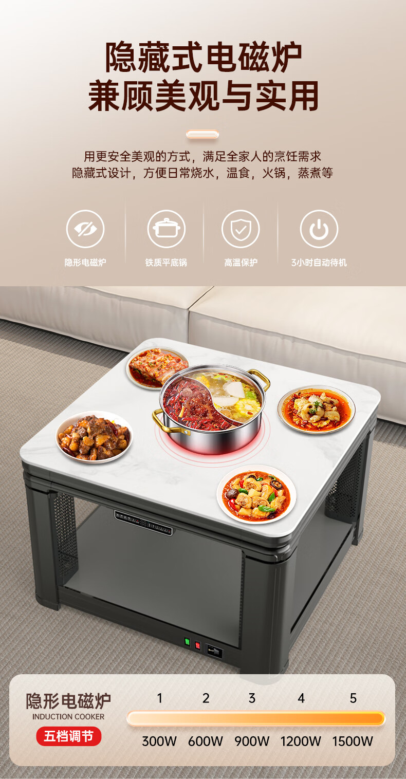 华帝(VATTI)取暖桌 电暖桌 烤火桌电烤桌取暖语音升降轻移动家用电烤炉桌子烤火电暖炉烤火炉正方形餐桌 G02白800*800mm智能升降移动滑轮轨道桌罩
