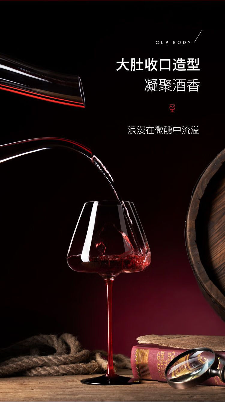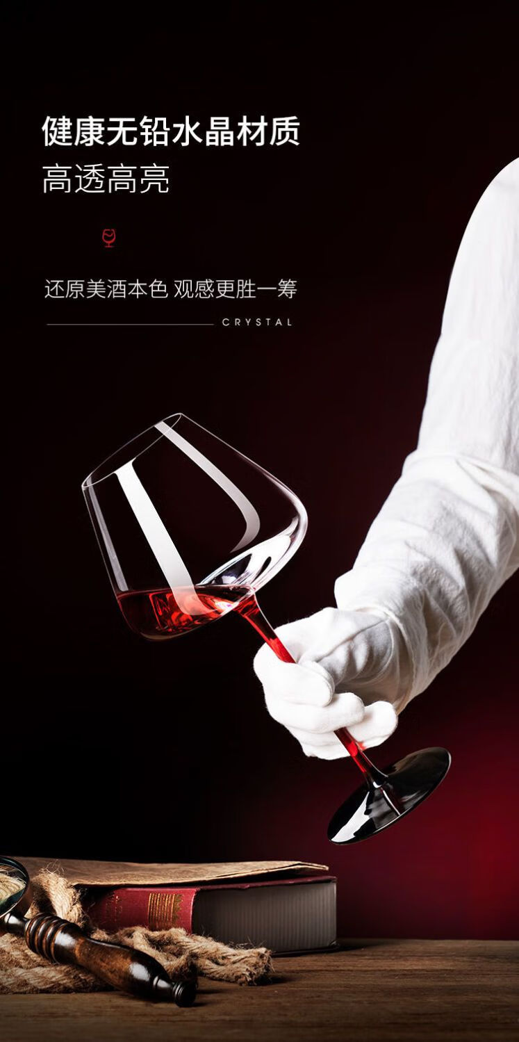简漾高档勃艮第红酒杯醒酒器套装一整套家用水晶玻璃高脚杯子葡萄酒杯 勃艮第770ml【2支装】