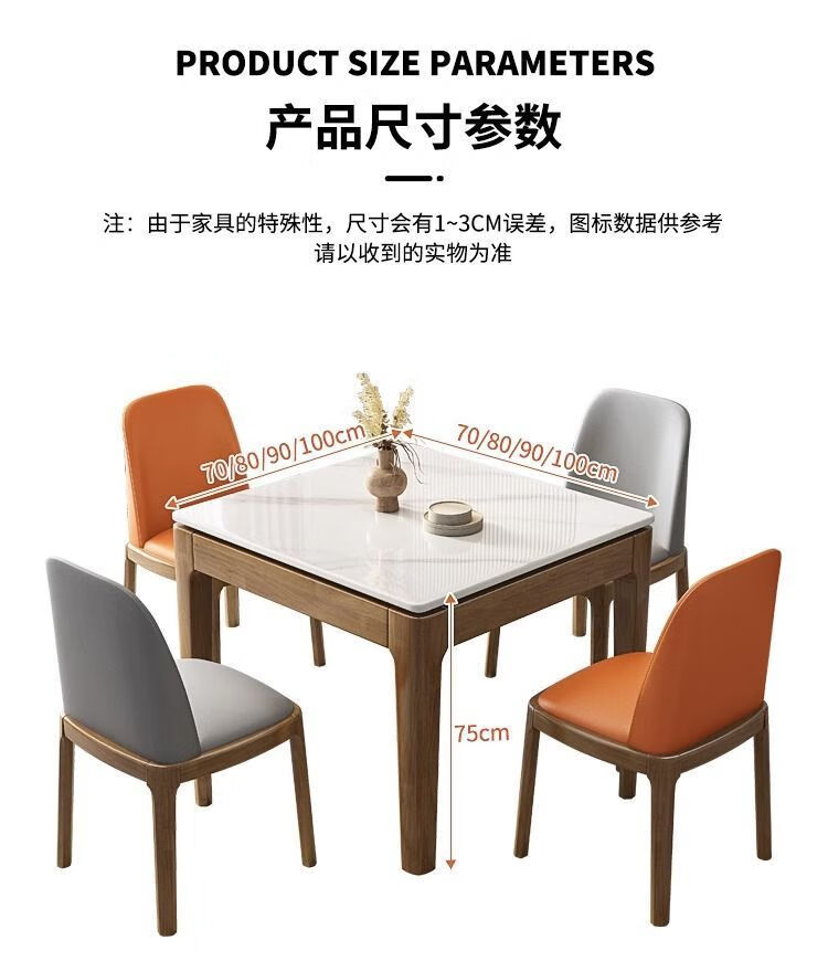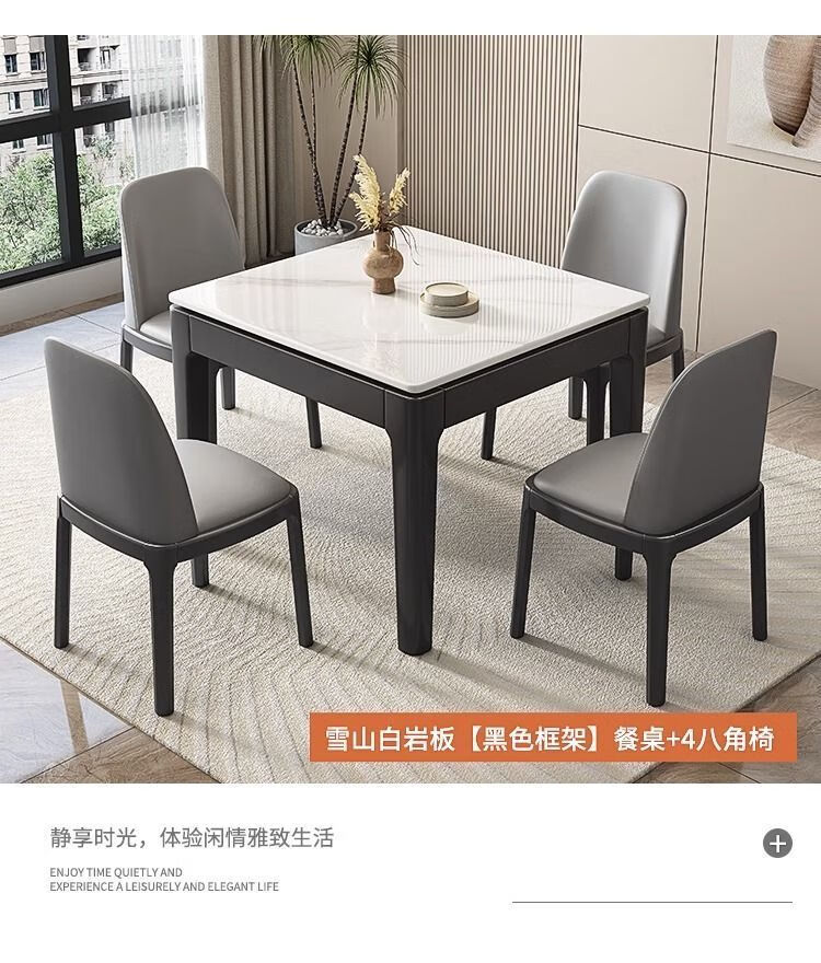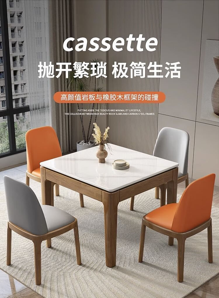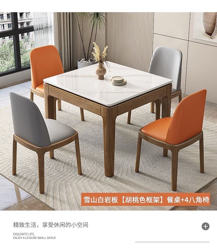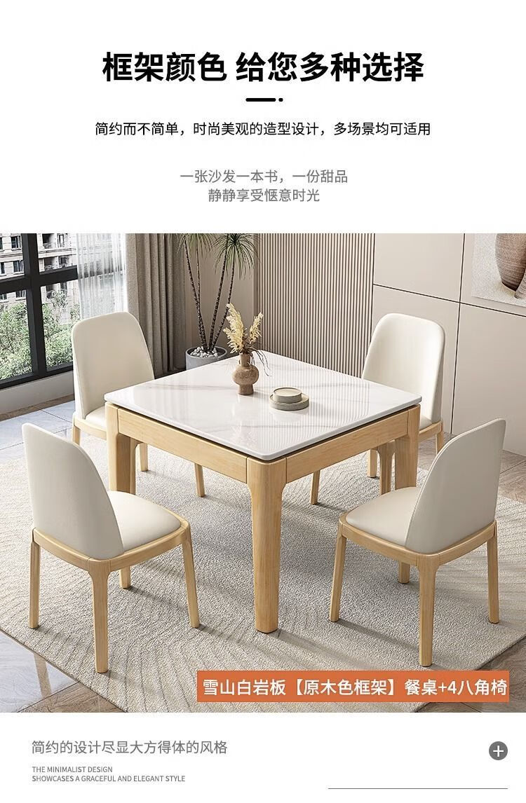 弘星隆岩板餐桌现代简约中式实木小方桌麻将打牌正方形饭桌子家用小户型 原木色实木框架+【雪山白岩板】 0.7米单桌【不包含椅子】