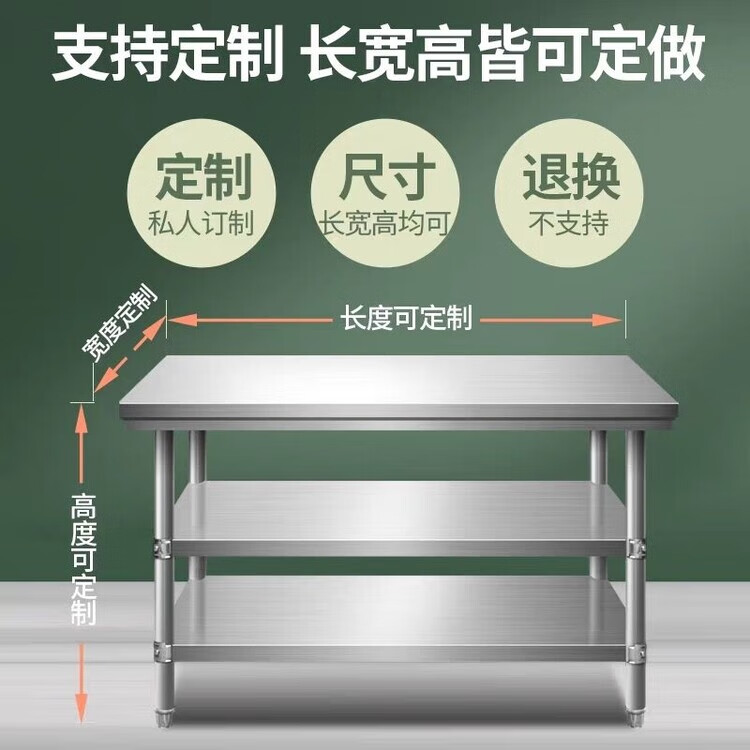 咏夏304加厚不锈钢工作台家用商用厨房和面揉面桌柜多功能切菜操作台 加厚长100宽40高80双层