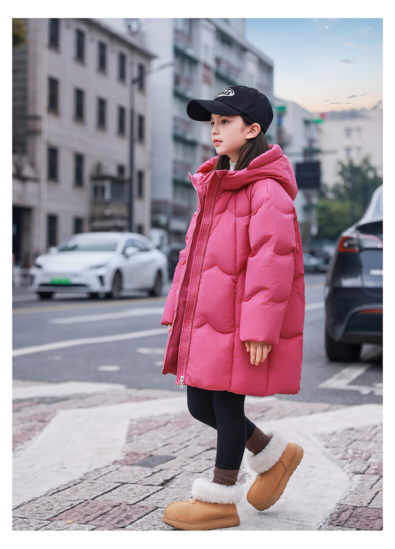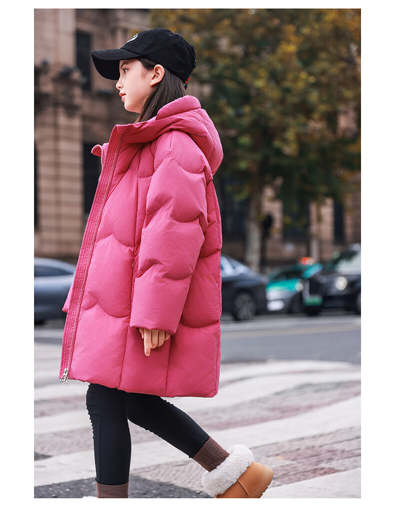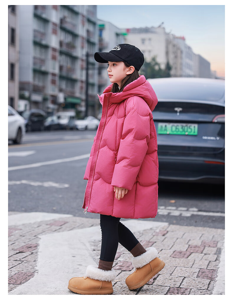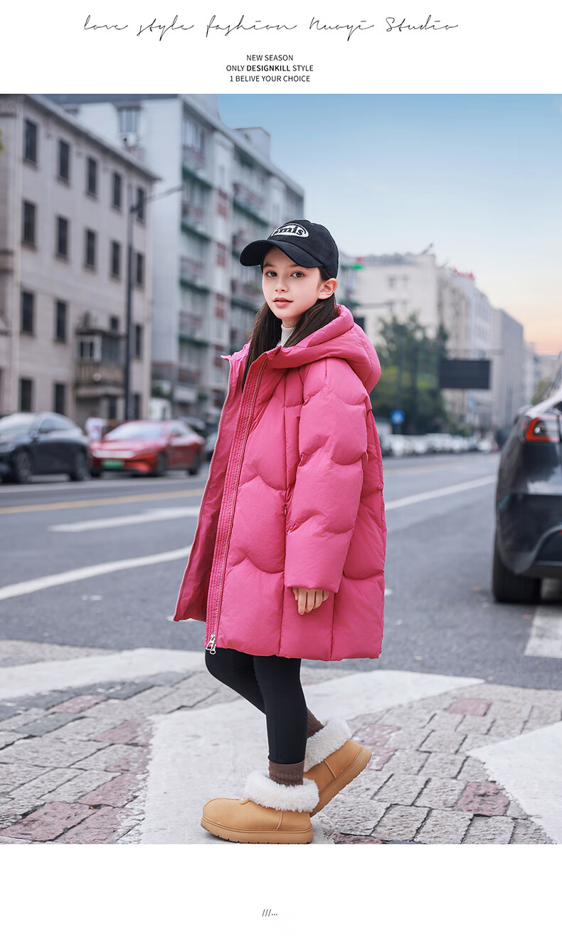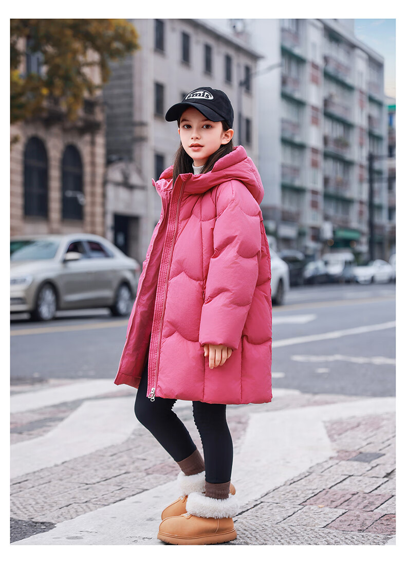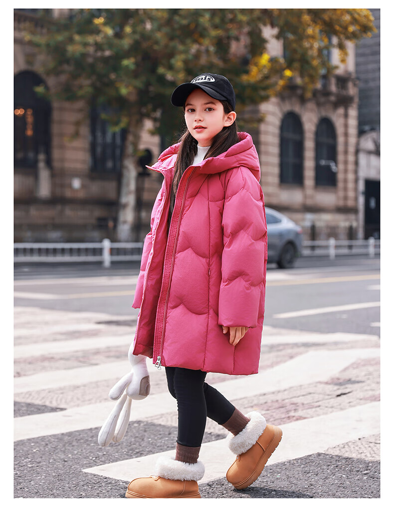 ABC KAIA中长款儿童羽绒服女童白鸭绒韩版女孩冬装加厚外套冬季洋气童装潮 枚红色 130