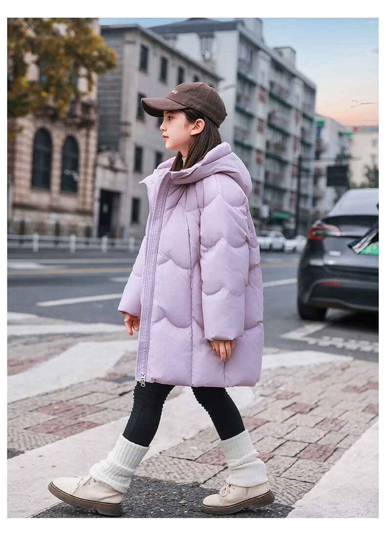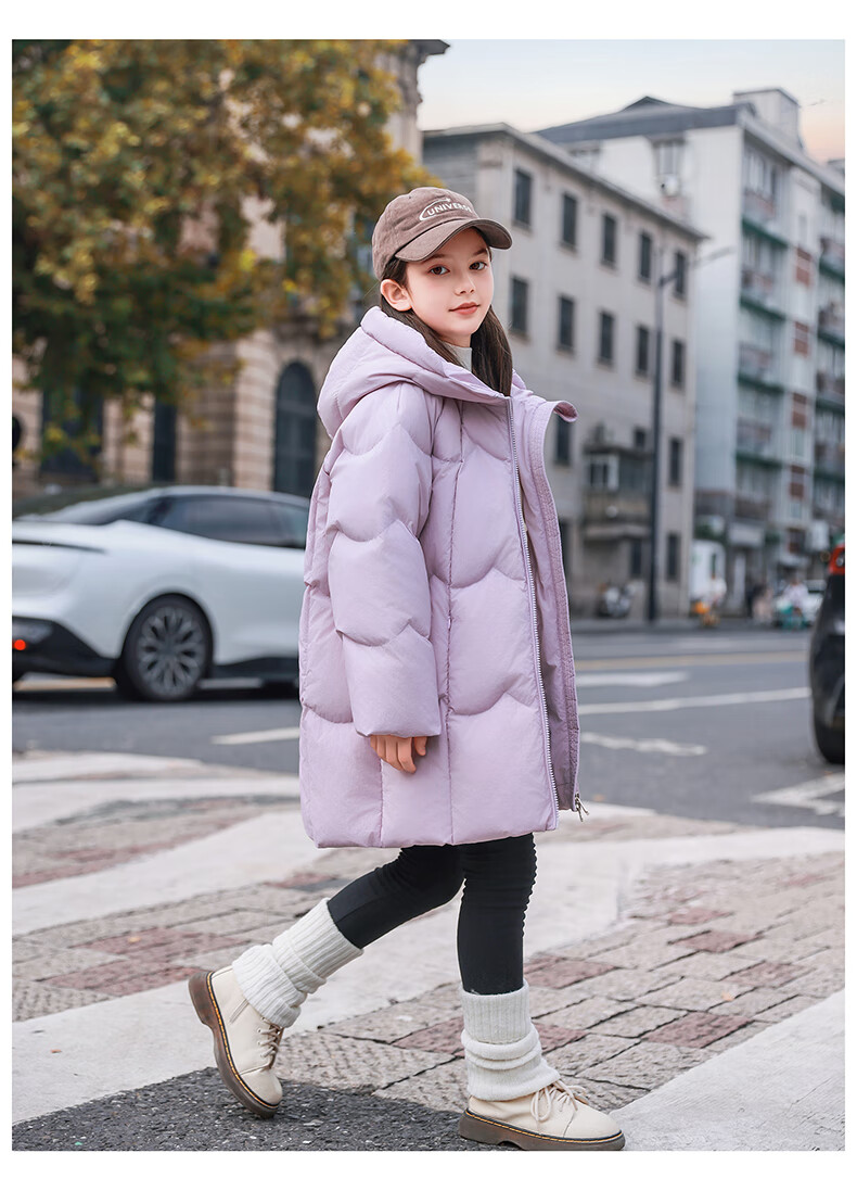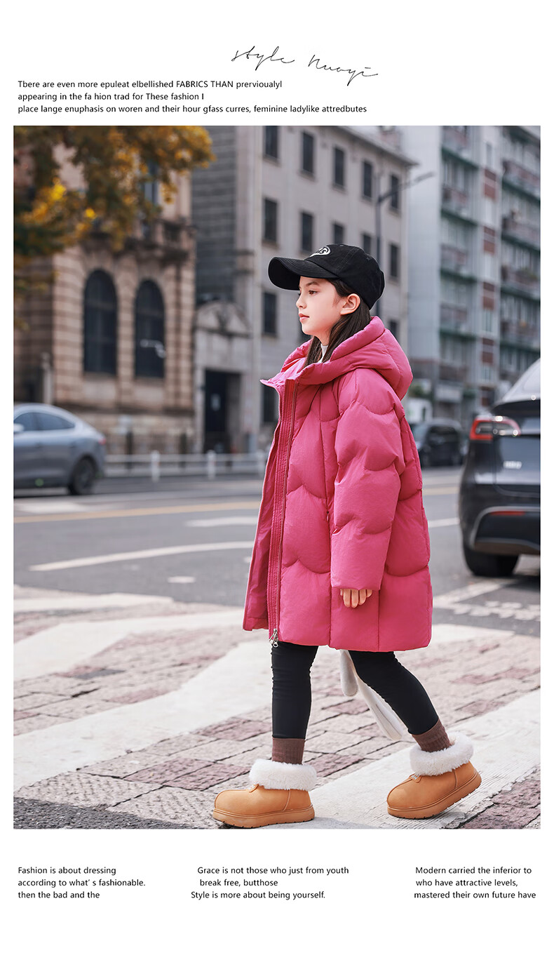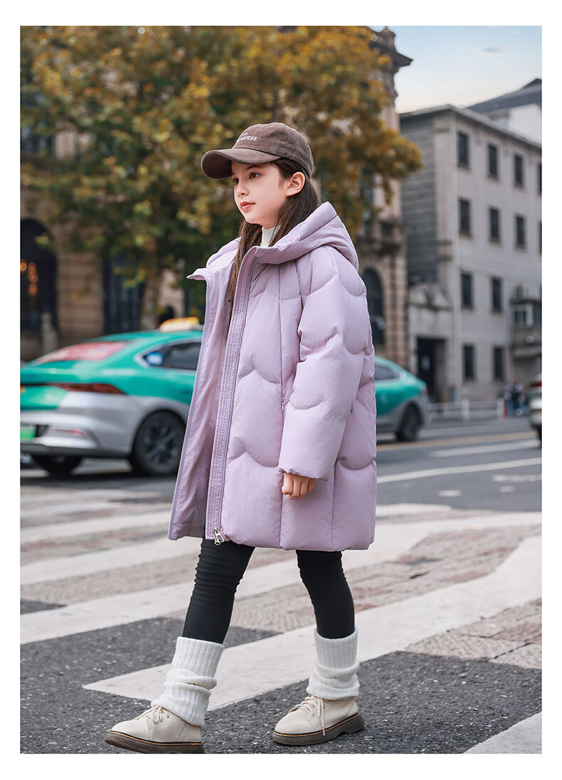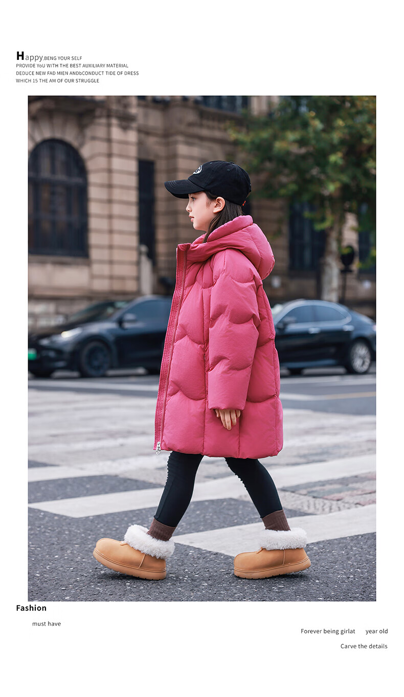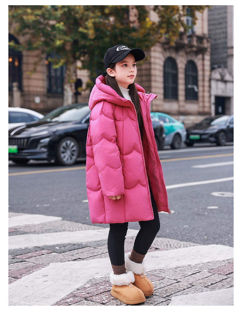 ABC KAIA中长款儿童羽绒服女童白鸭绒韩版女孩冬装加厚外套冬季洋气童装潮 枚红色 130