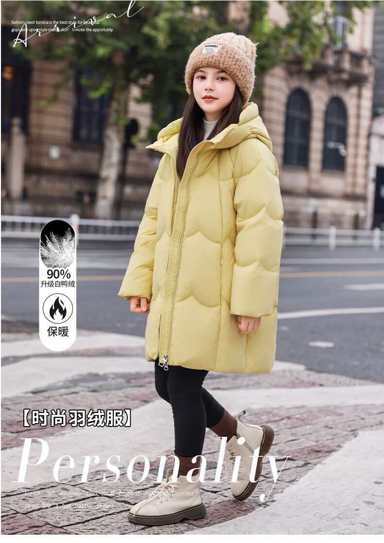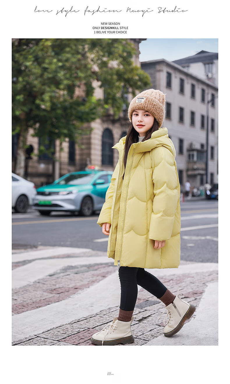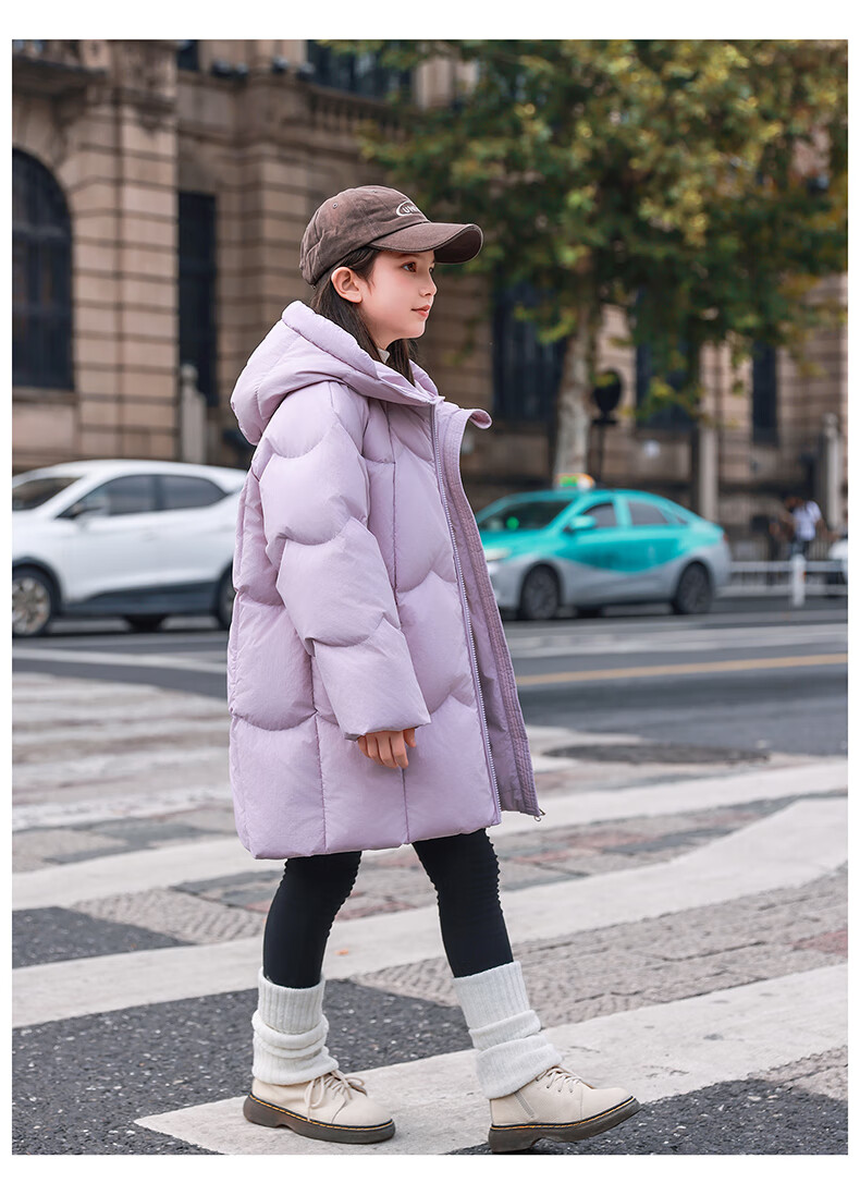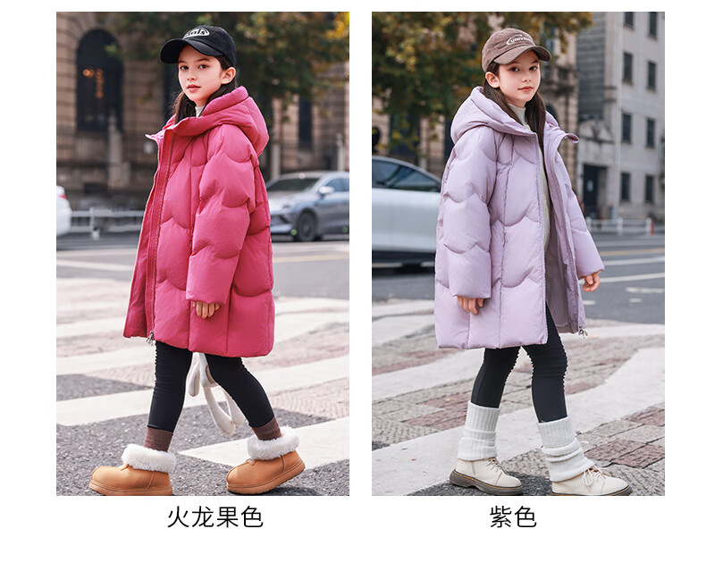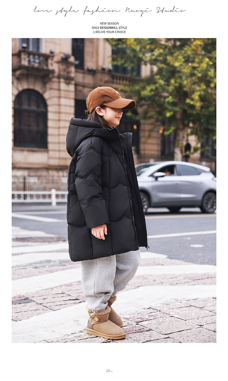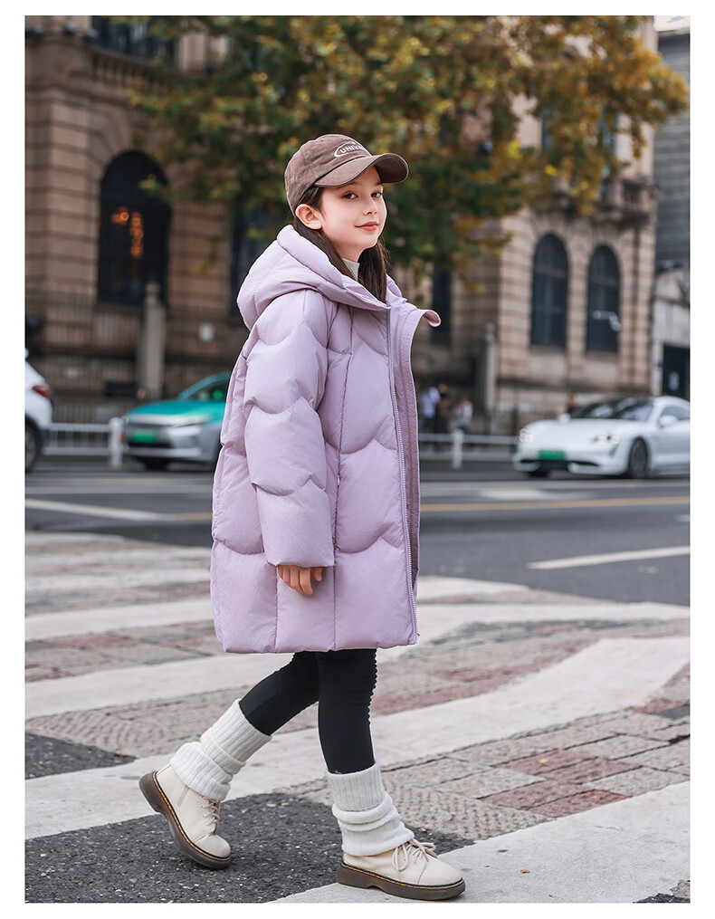 ABC KAIA中长款儿童羽绒服女童白鸭绒韩版女孩冬装加厚外套冬季洋气童装潮 枚红色 130
