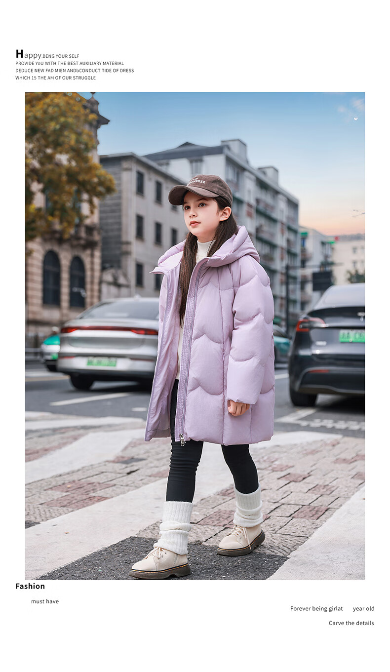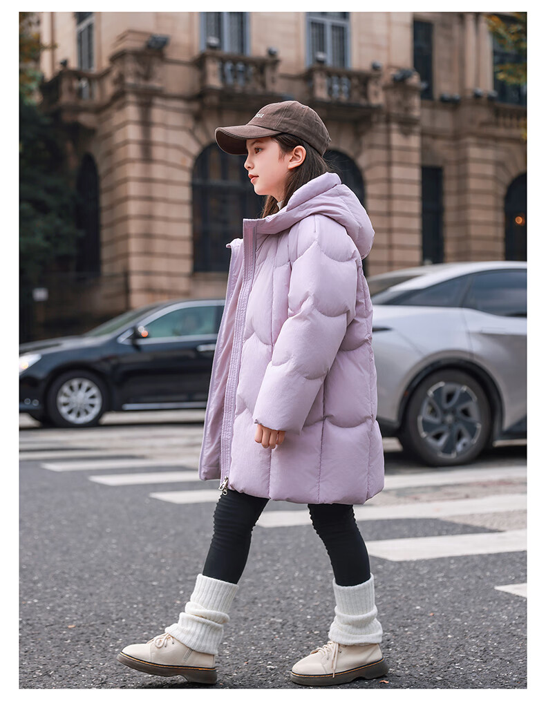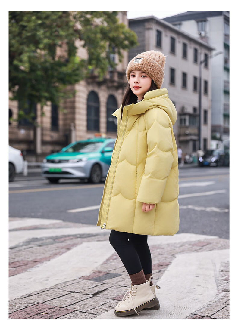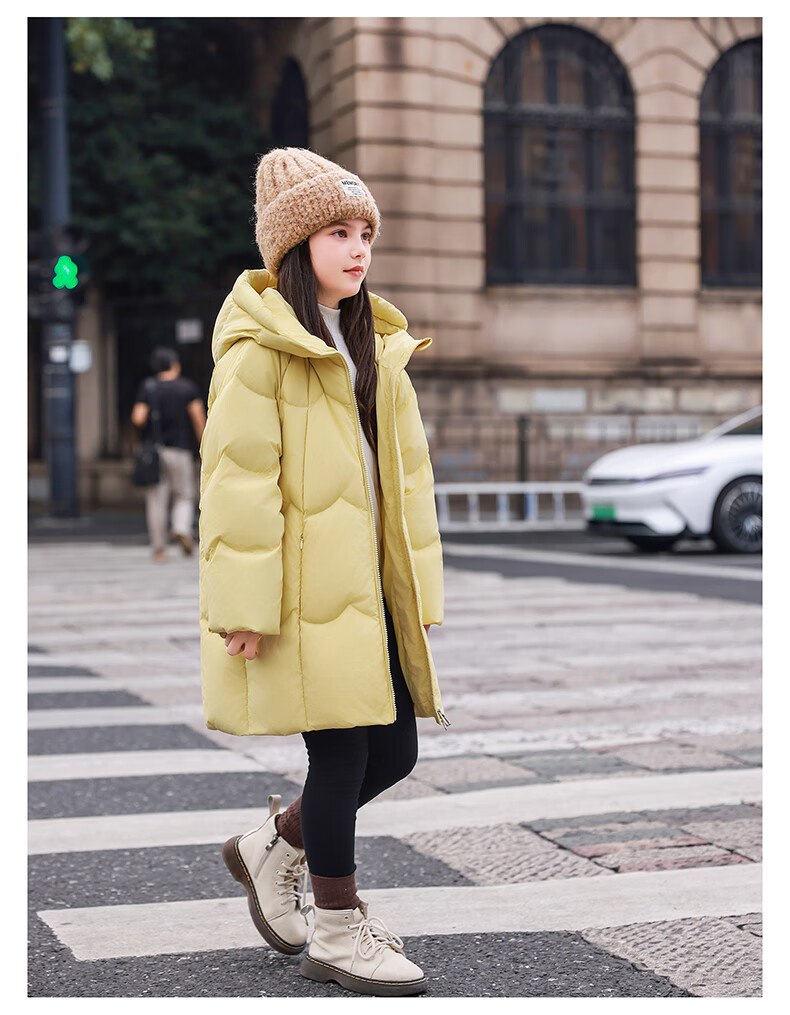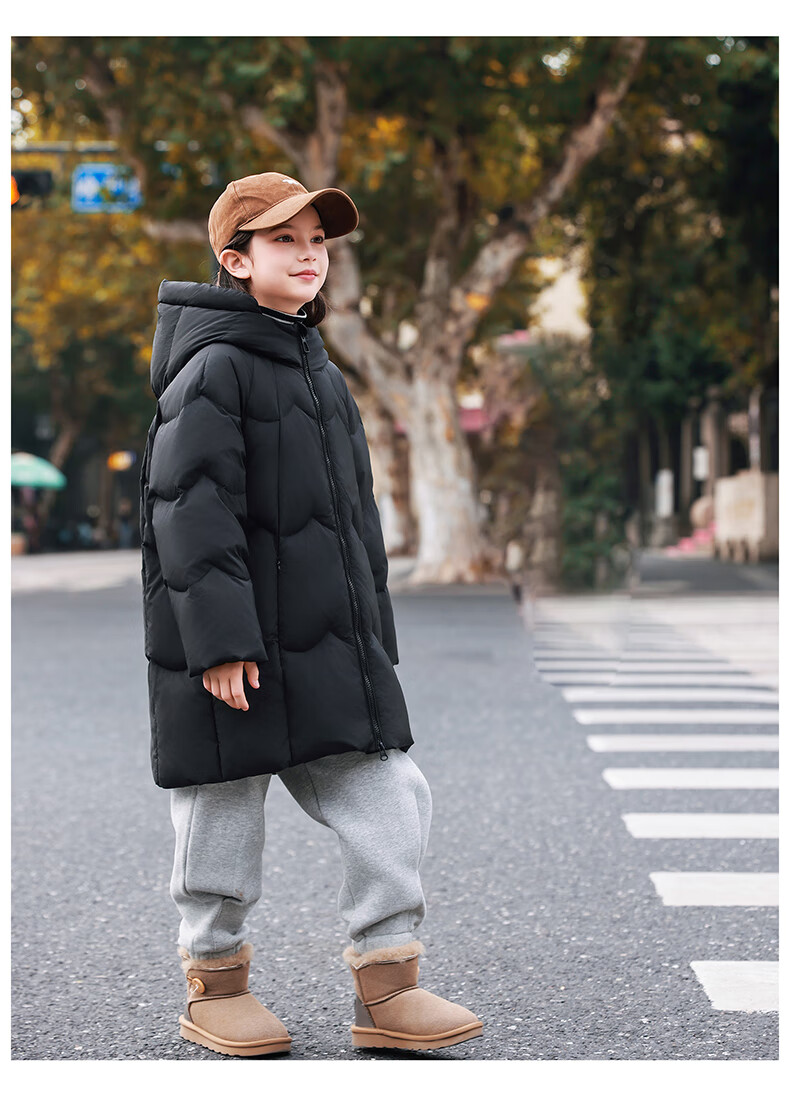 ABC KAIA中长款儿童羽绒服女童白鸭绒韩版女孩冬装加厚外套冬季洋气童装潮 枚红色 130