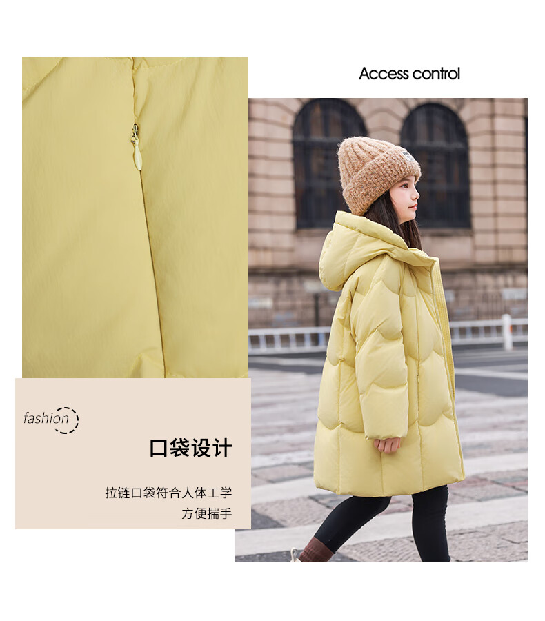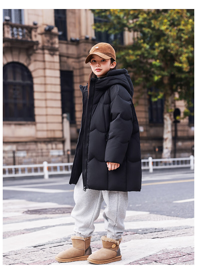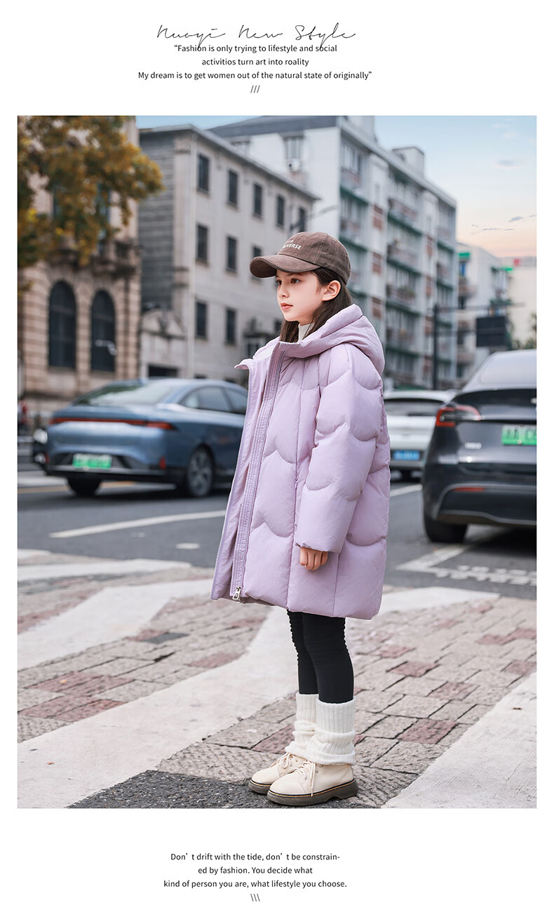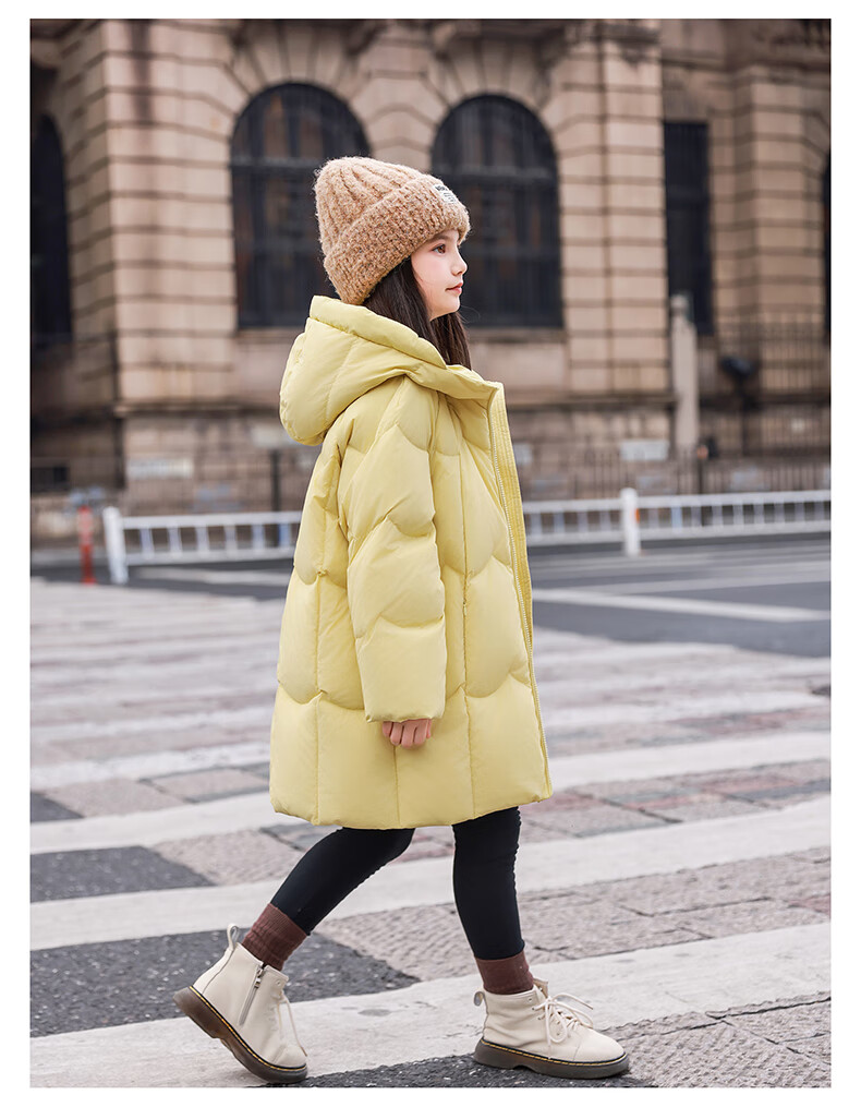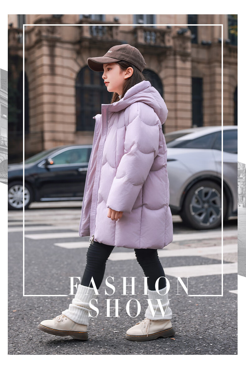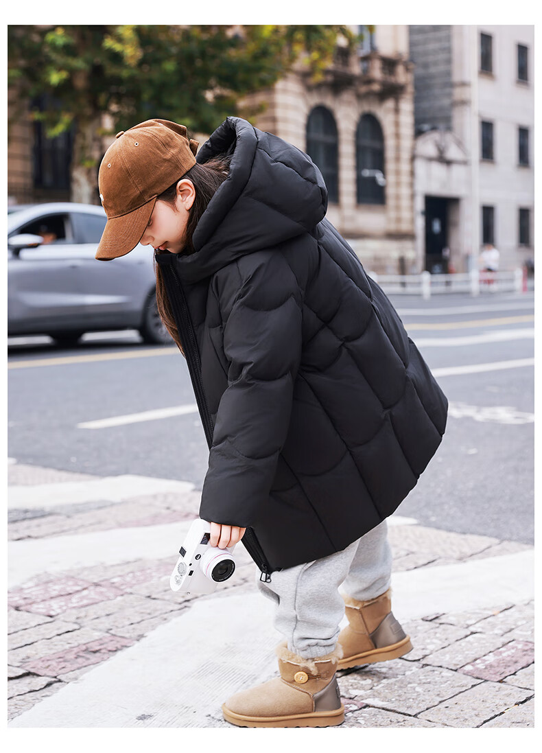 ABC KAIA中长款儿童羽绒服女童白鸭绒韩版女孩冬装加厚外套冬季洋气童装潮 枚红色 130