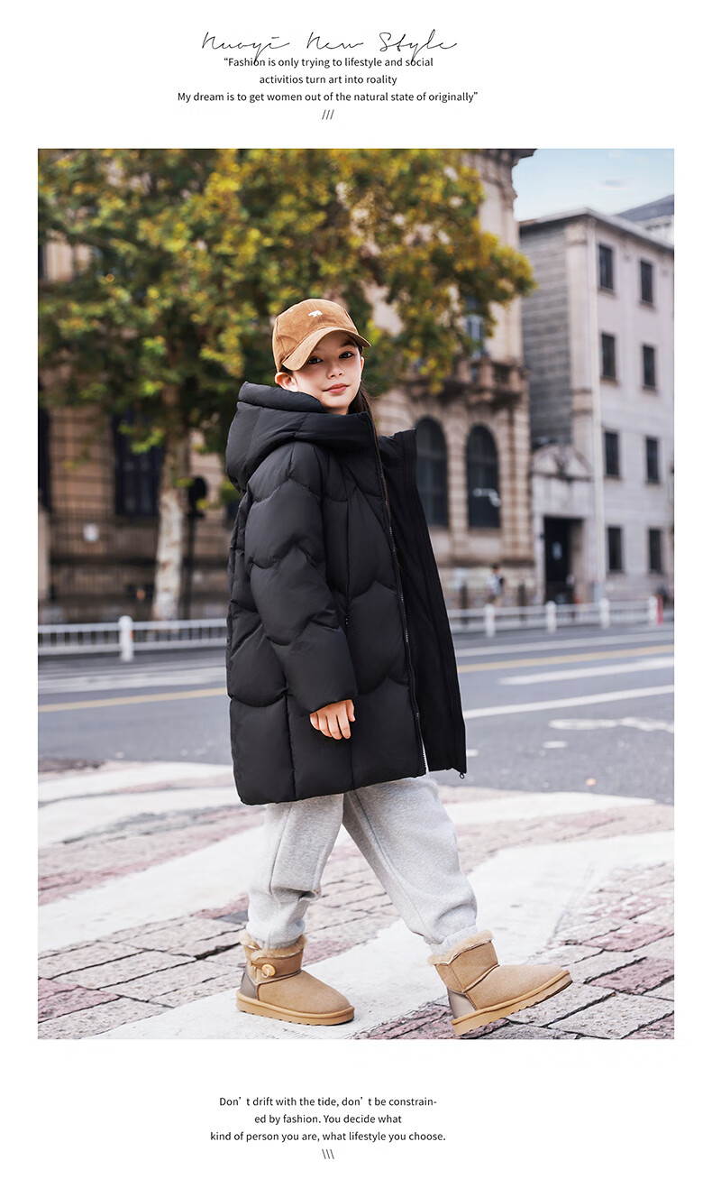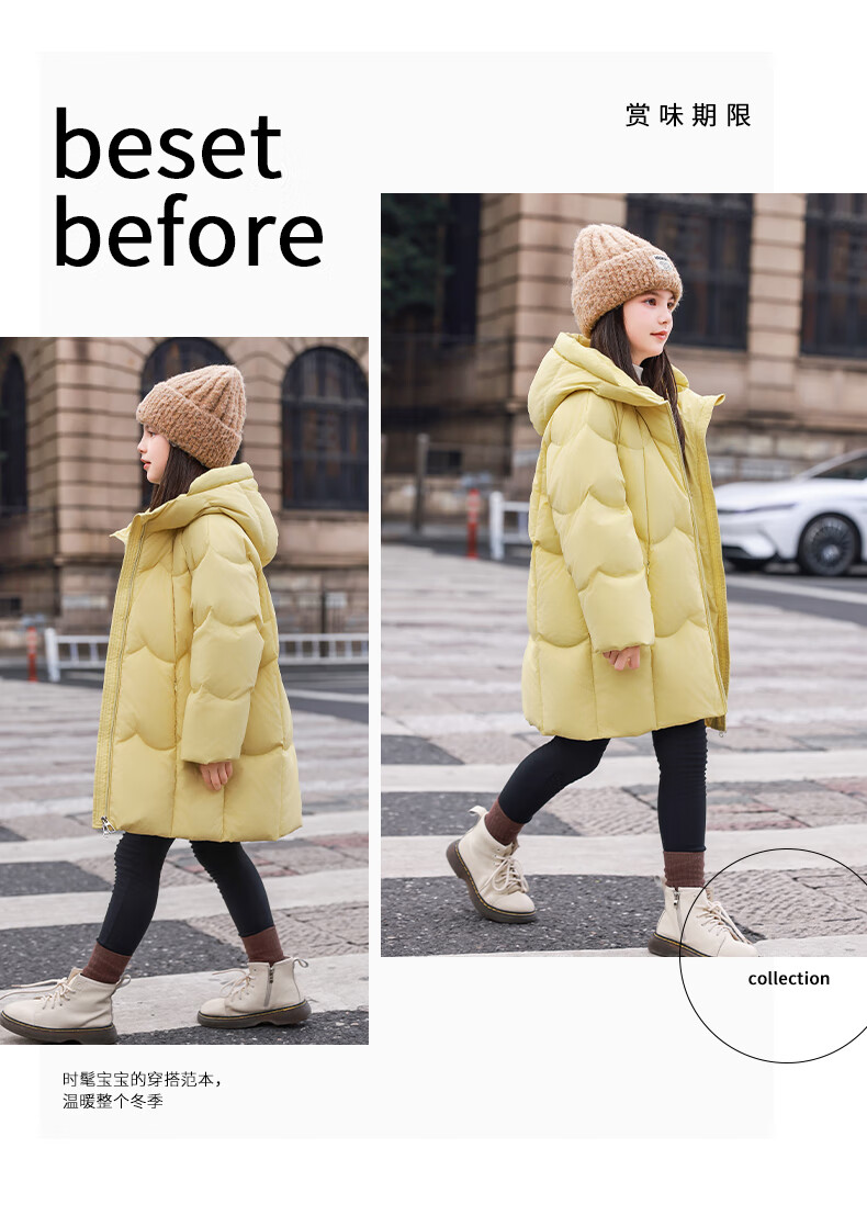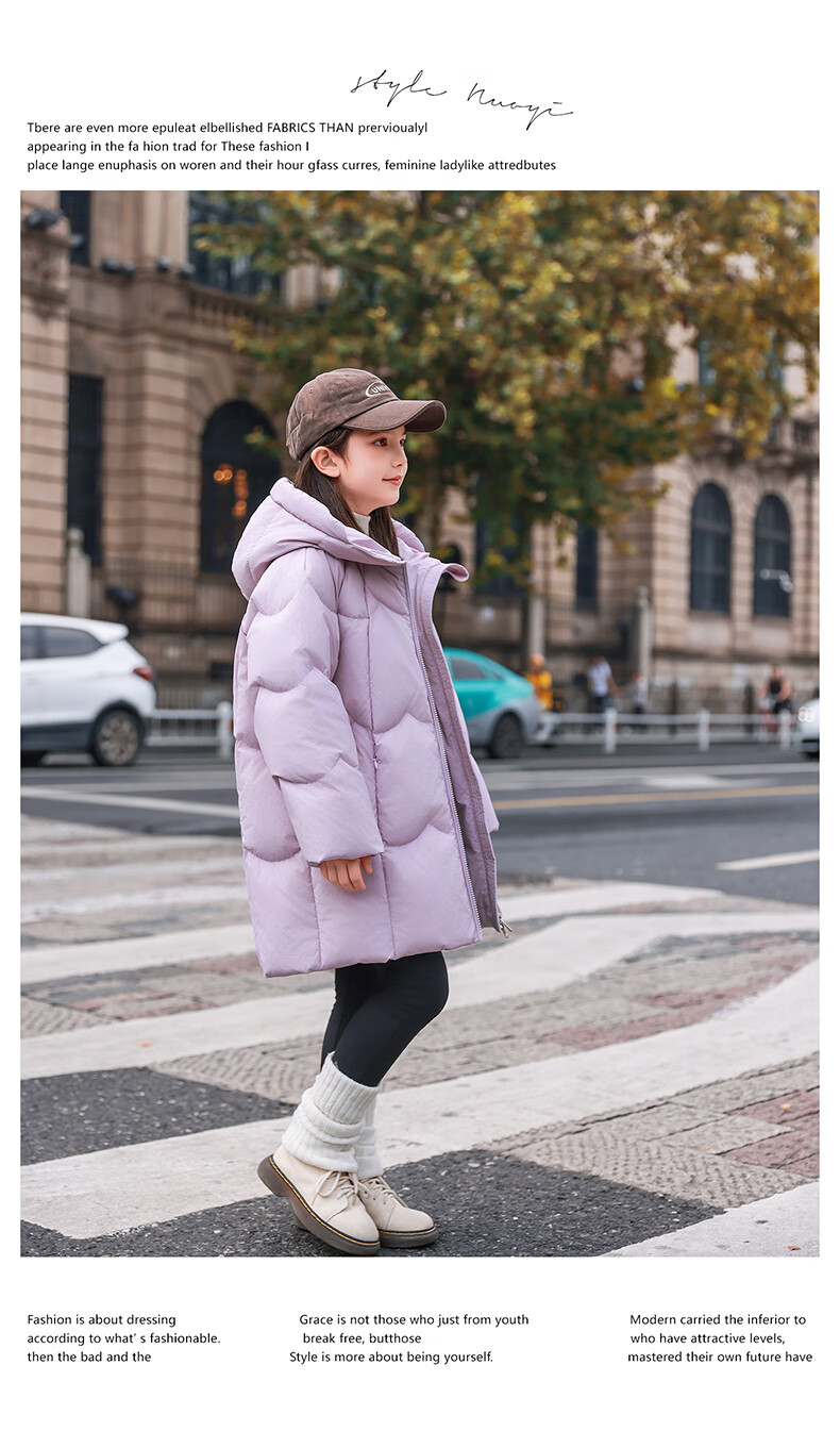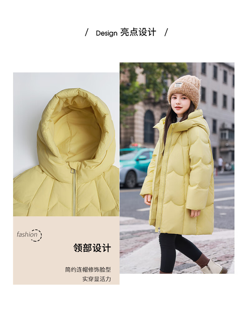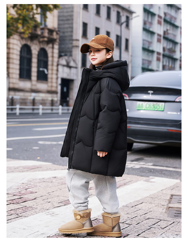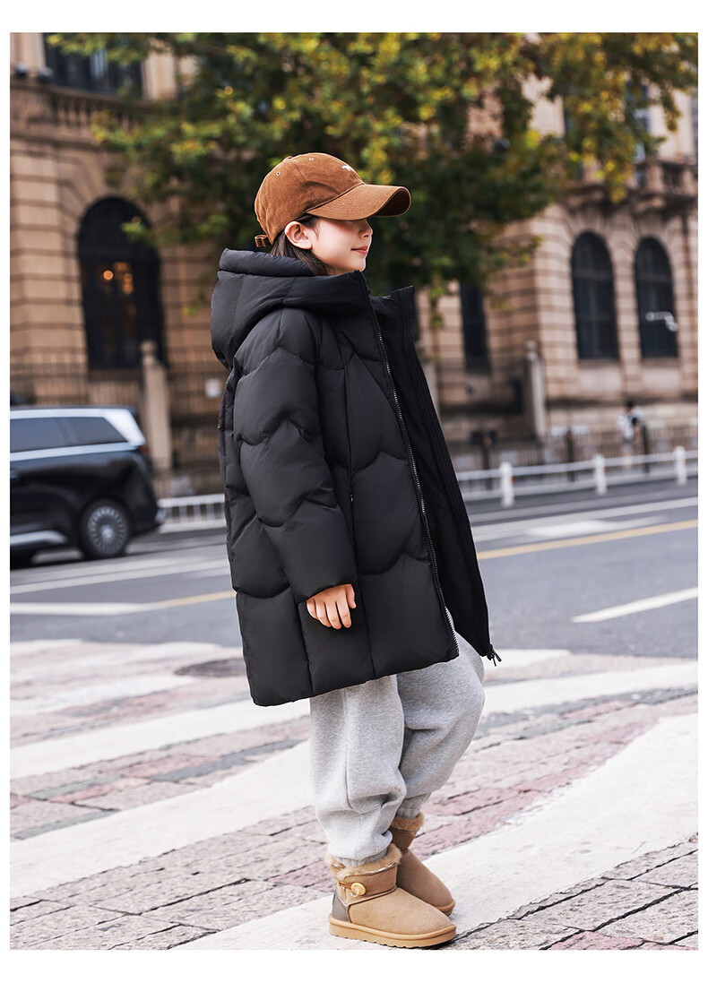 ABC KAIA中长款儿童羽绒服女童白鸭绒韩版女孩冬装加厚外套冬季洋气童装潮 枚红色 130