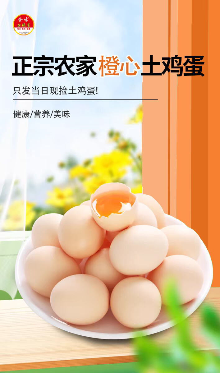 金咕鸡蛋 正宗土鸡蛋 虫草蛋 农家散养新鲜笨鸡蛋 柴鸡蛋 单枚40±5g 正宗橙心土鸡蛋30枚