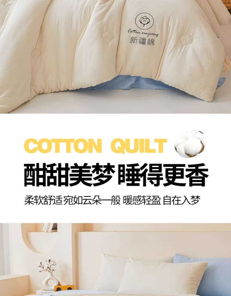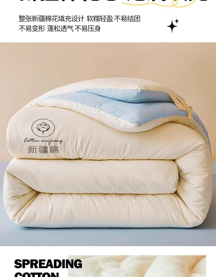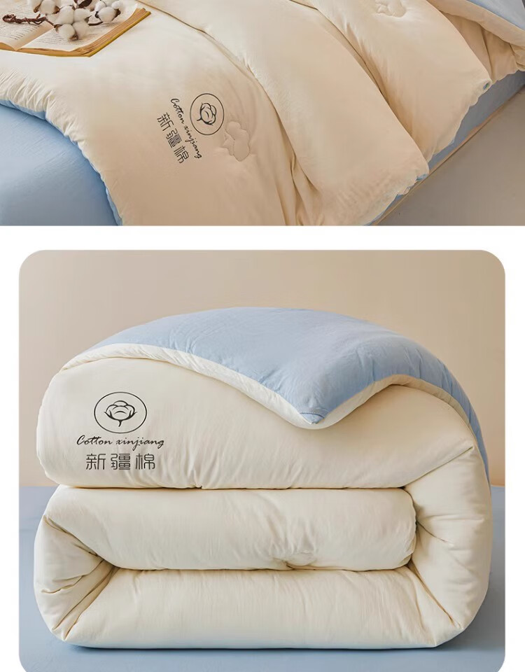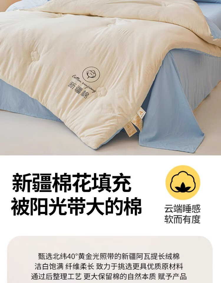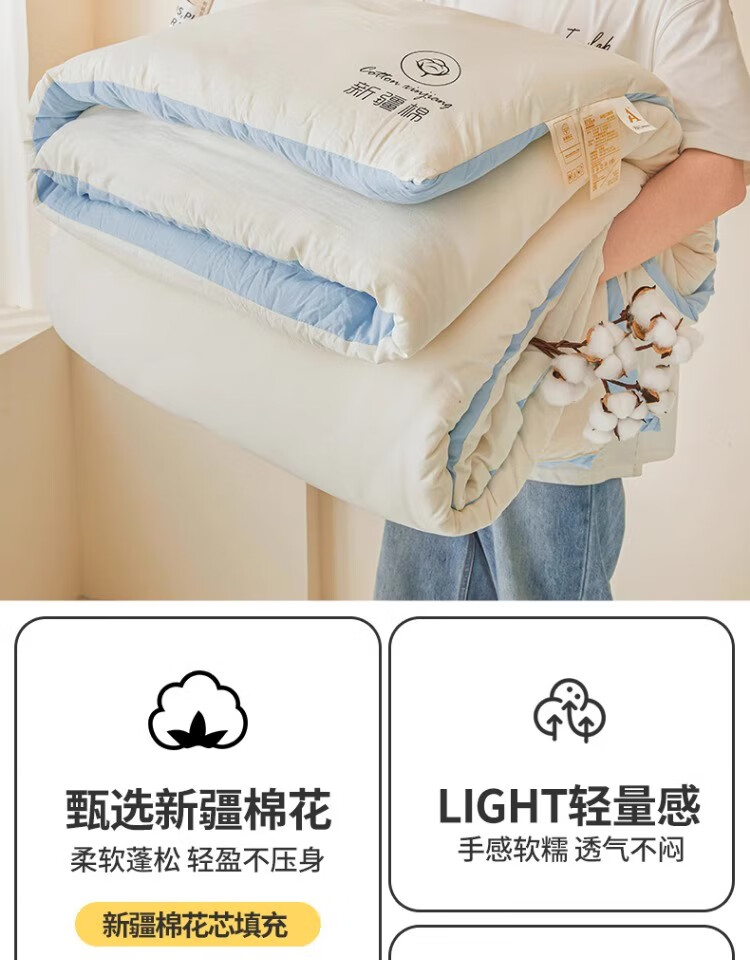 浪莎(langsha)新疆棉花被子冬被棉被芯冬季加厚6-8斤冬天1.5米x2米单人棉絮被褥 蓝灰拼白【甄选正宗新疆棉花】 150x200cm-重约6斤【暖冬被】
