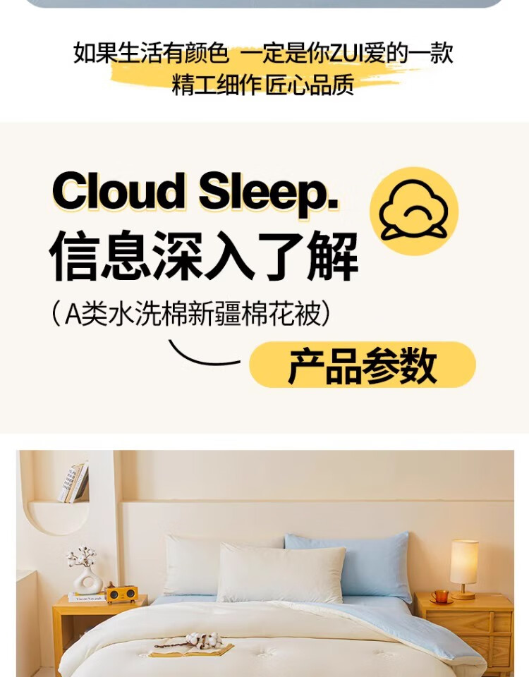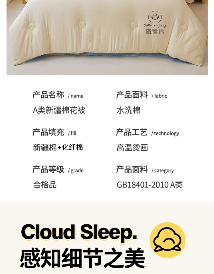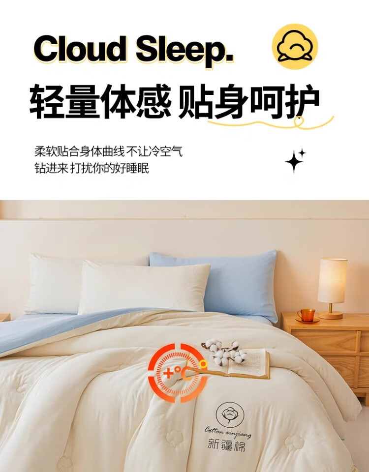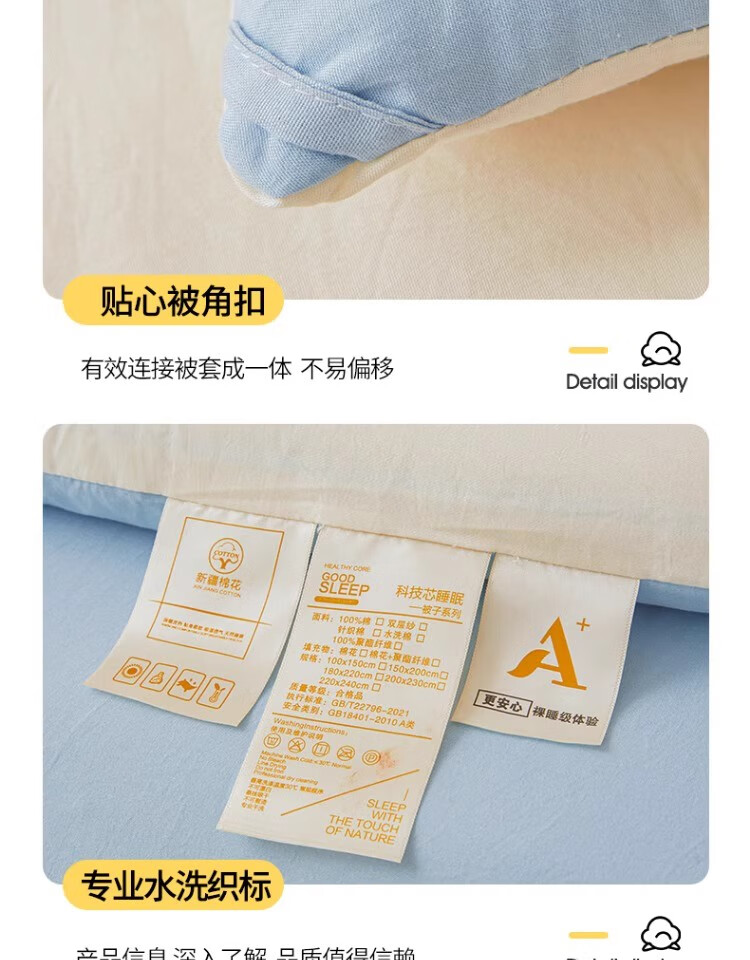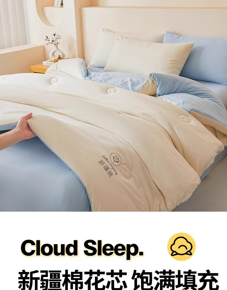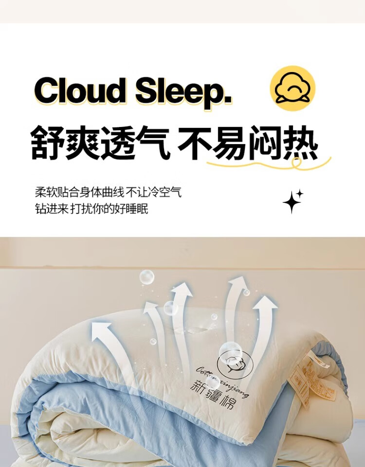 浪莎(langsha)新疆棉花被子冬被棉被芯冬季加厚6-8斤冬天1.5米x2米单人棉絮被褥 蓝灰拼白【甄选正宗新疆棉花】 150x200cm-重约6斤【暖冬被】