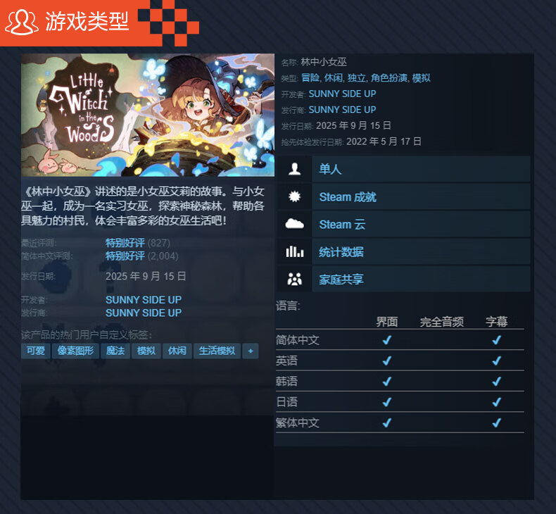 steam 林中小女巫 国区激活码CDKey Little Witch in the Woods PC中文正版游戏 标准版