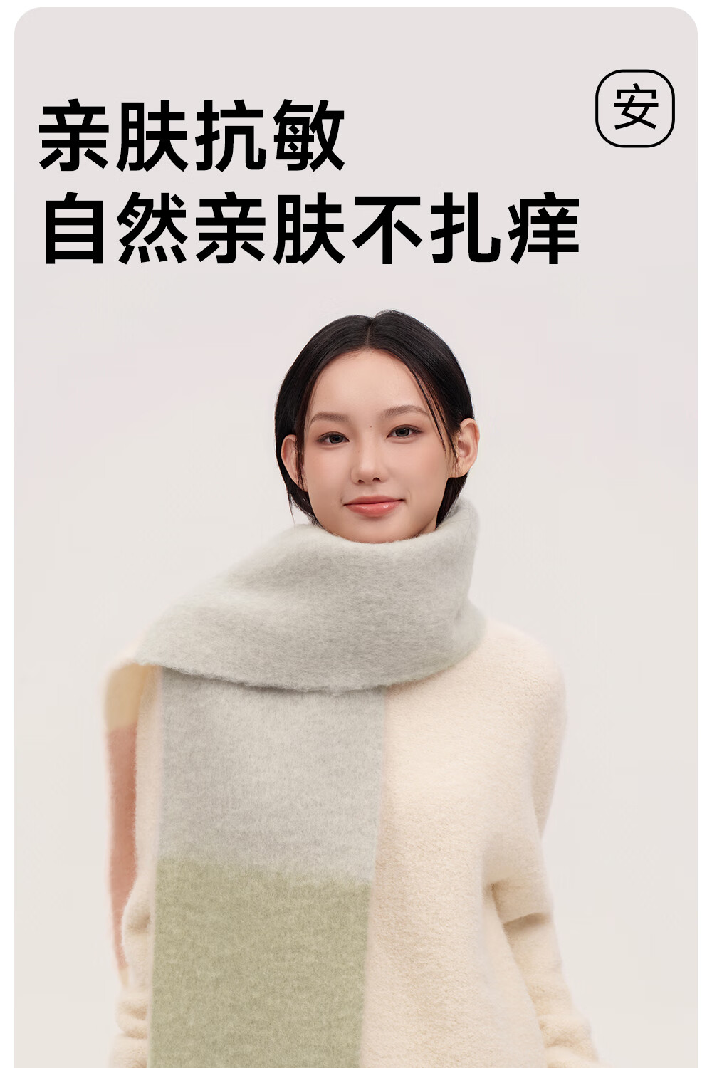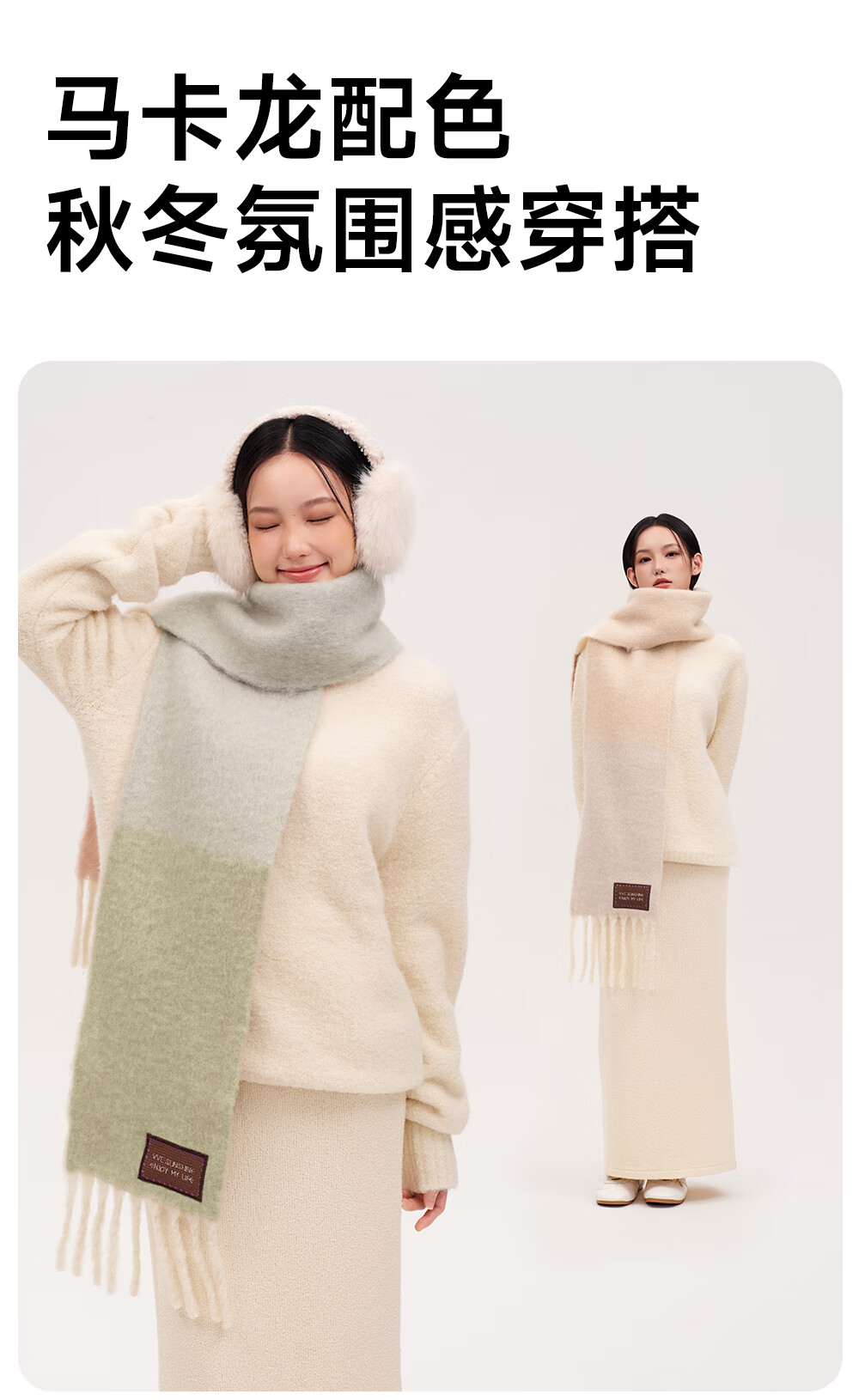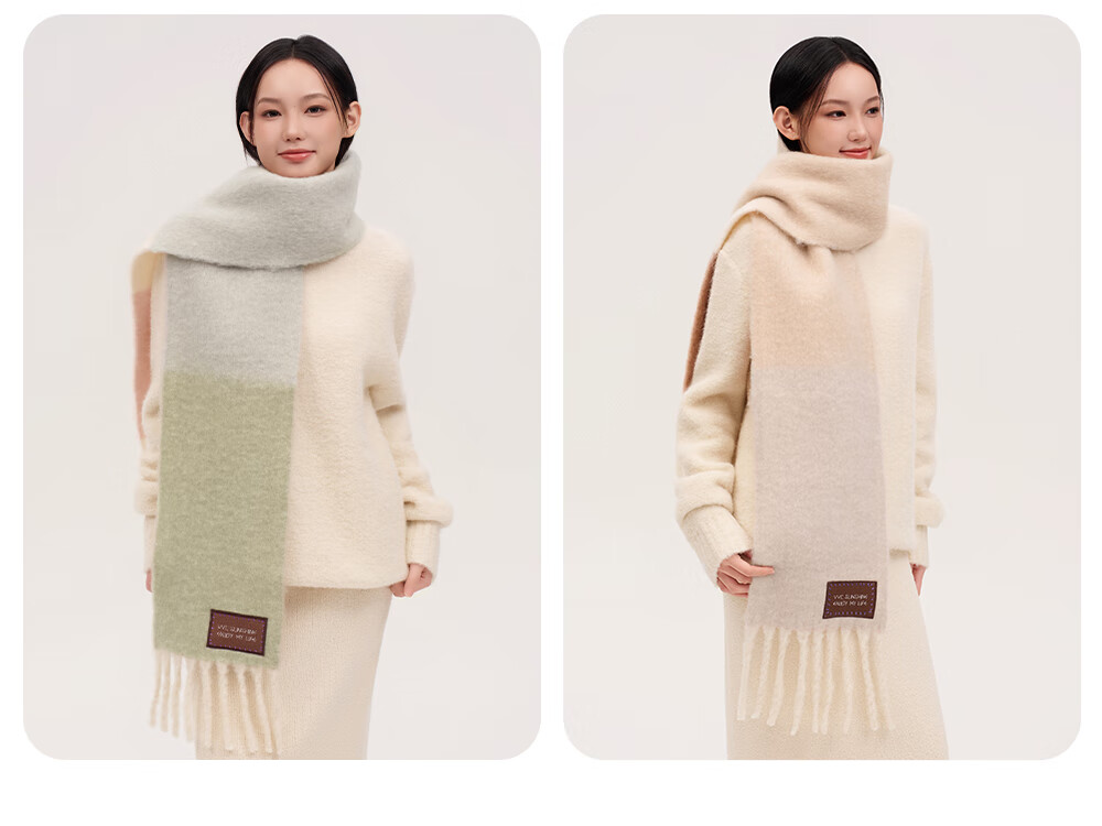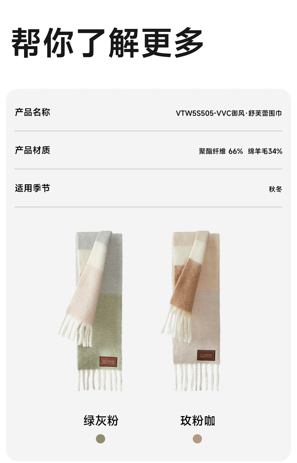 VVC【成毅同款】围巾女秋冬季韩版百搭保暖加厚流苏围脖送女友礼物 绿灰粉组