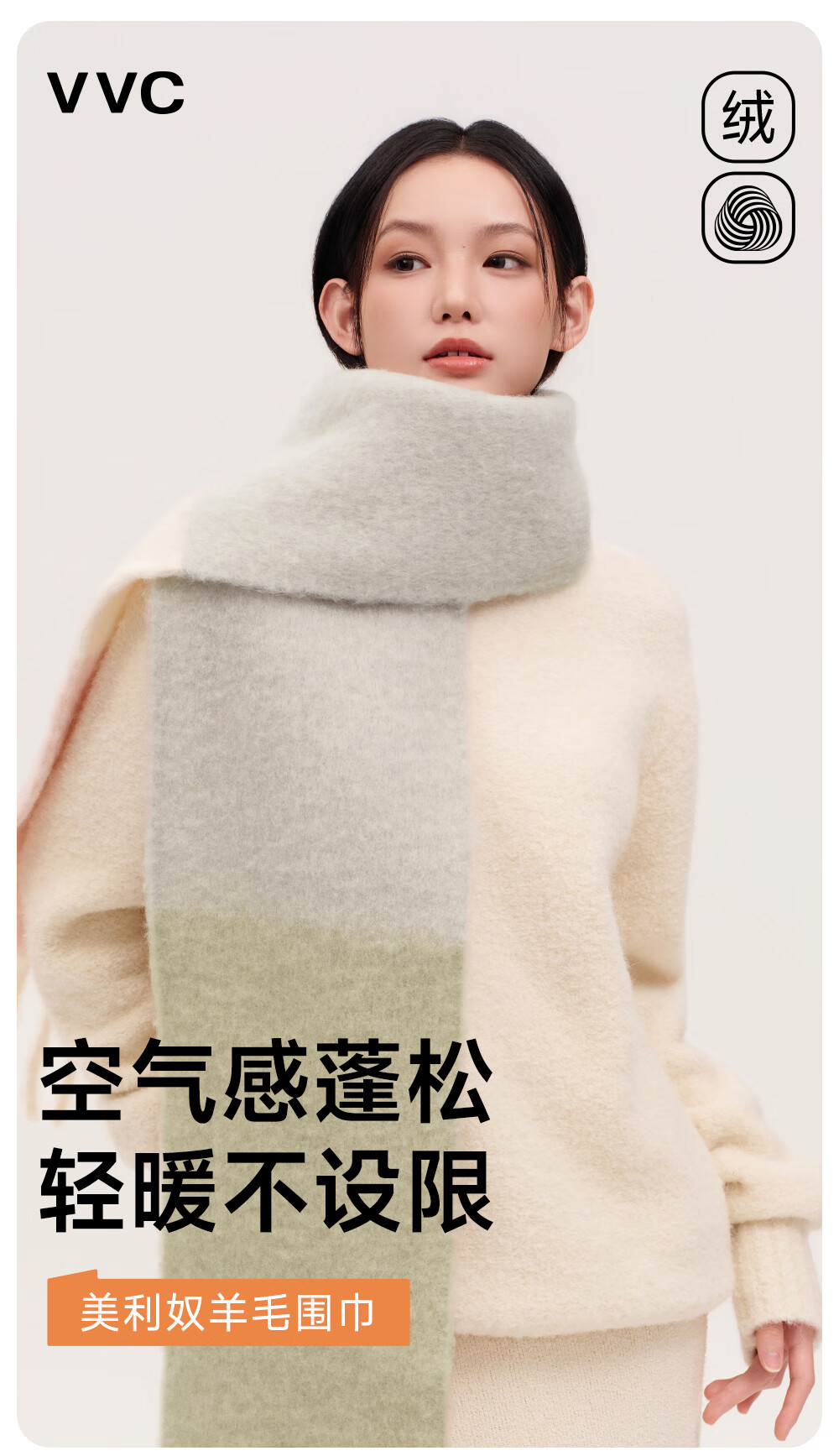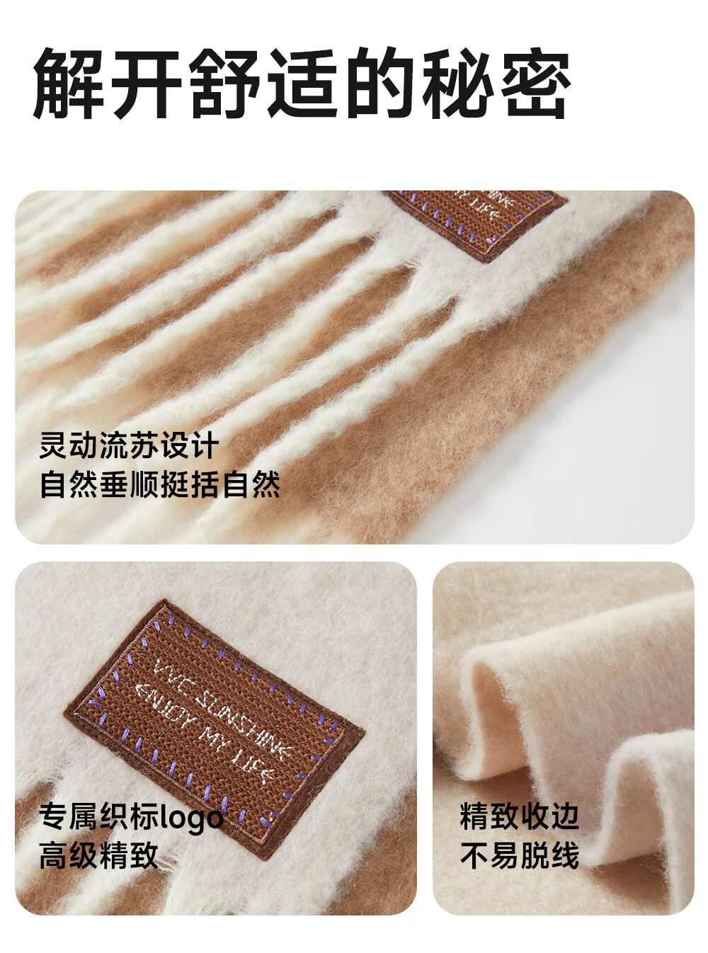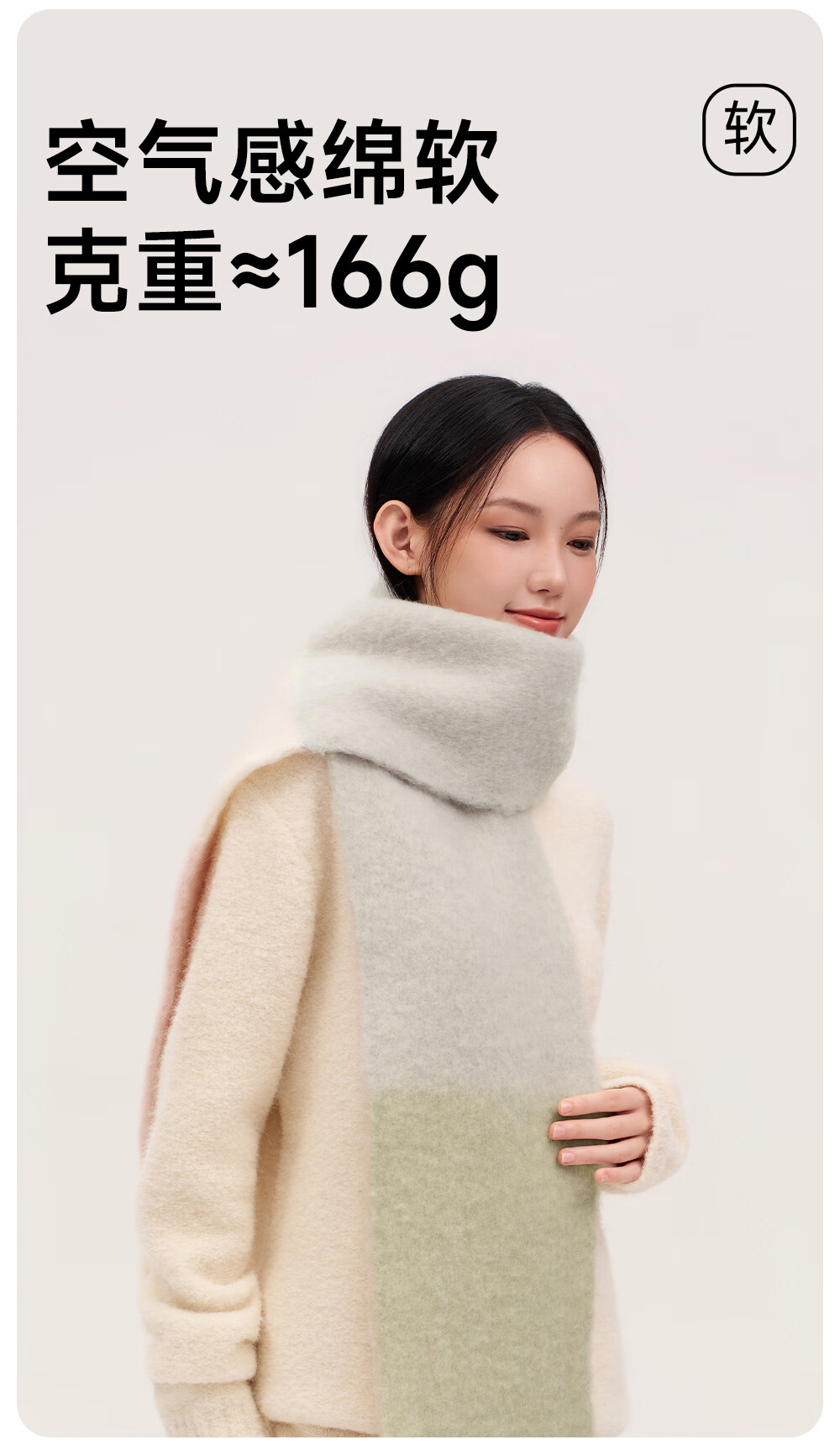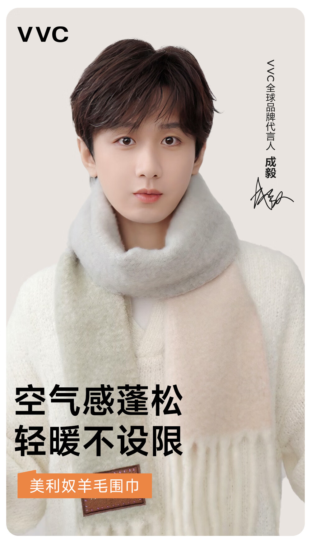 VVC【成毅同款】围巾女秋冬季韩版百搭保暖加厚流苏围脖送女友礼物 绿灰粉组
