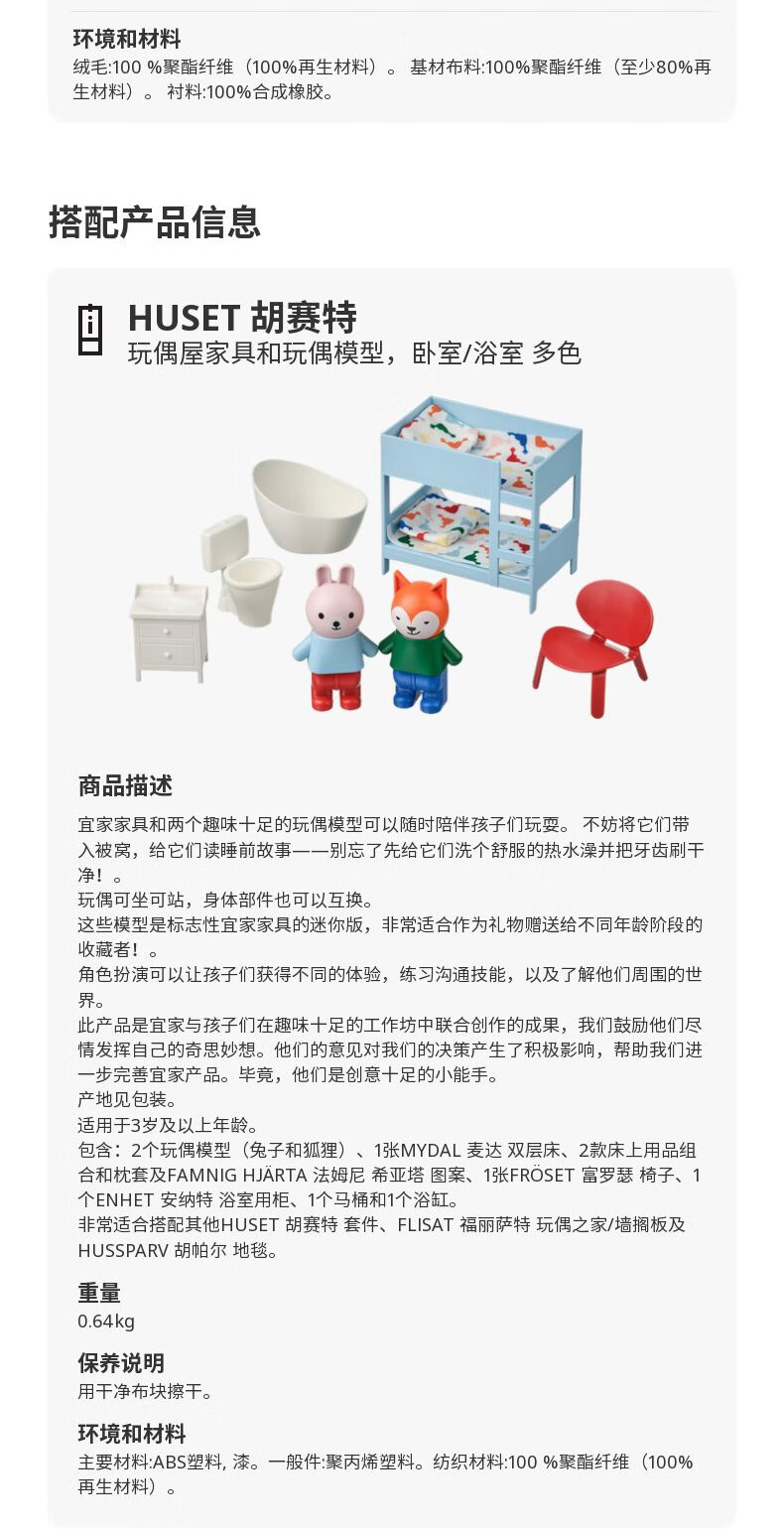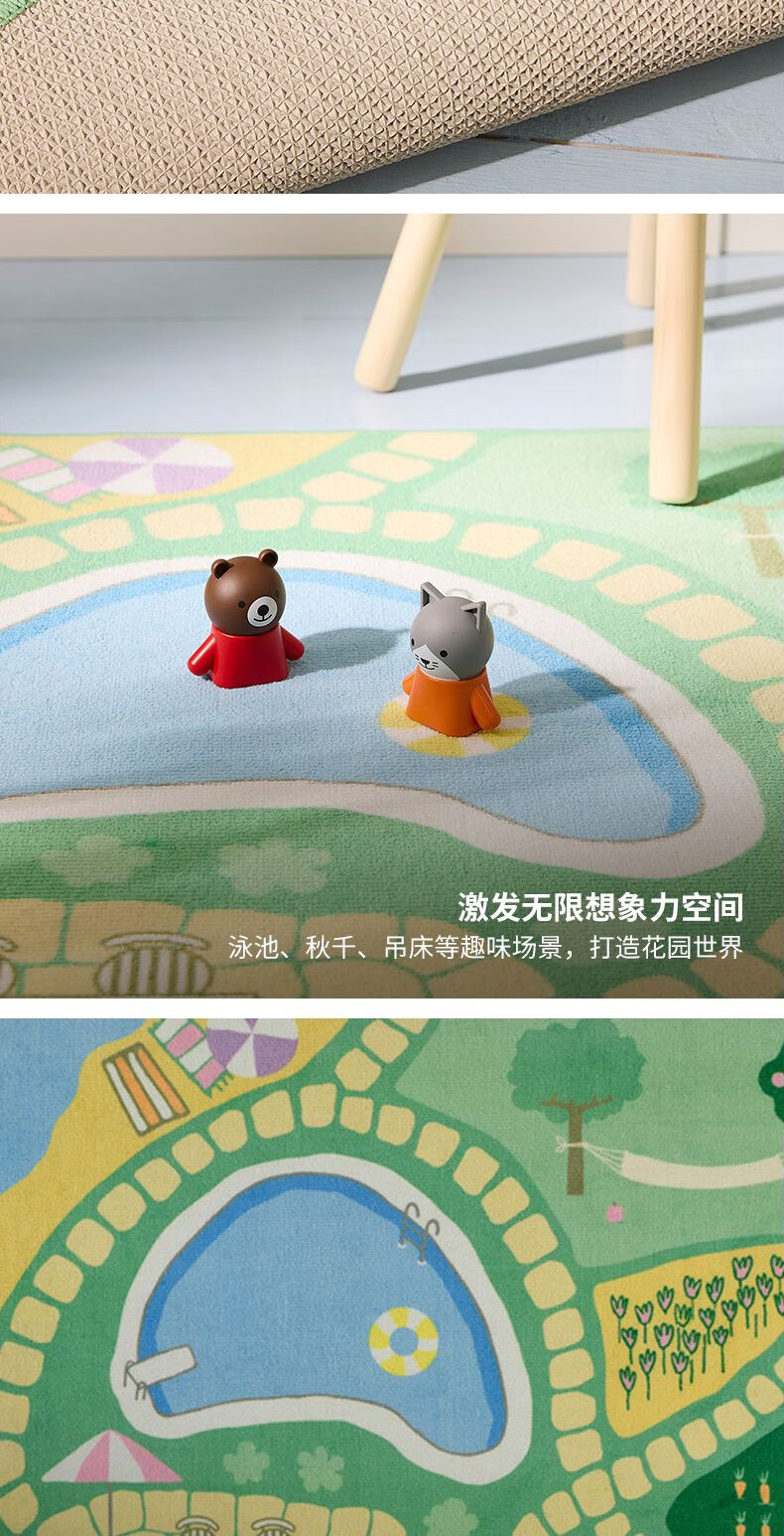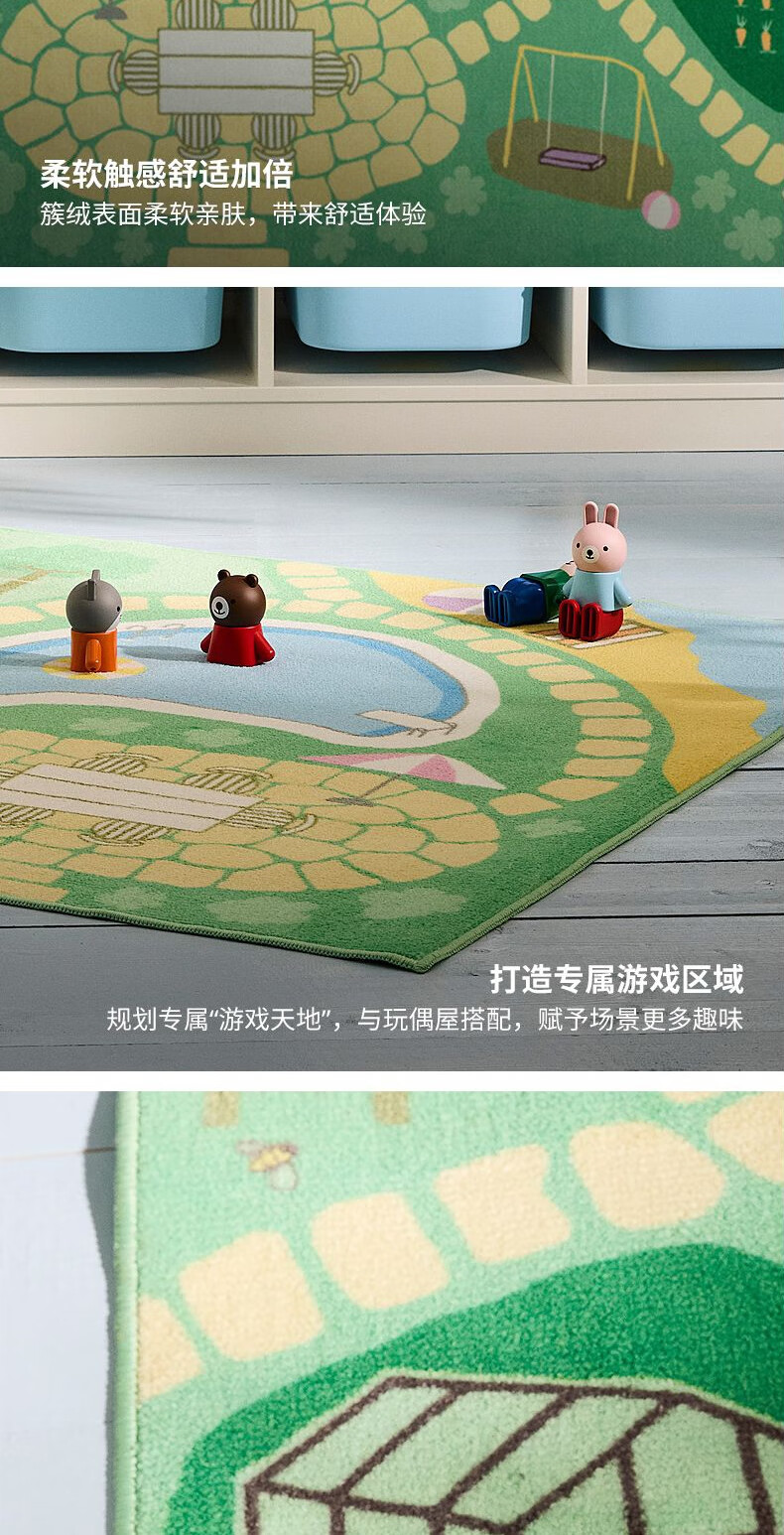 宜家(IKEA)【新品】HUSSPARV胡帕尔儿童地毯防滑玩耍宝宝爬行儿童房 绿色地毯100x133cm