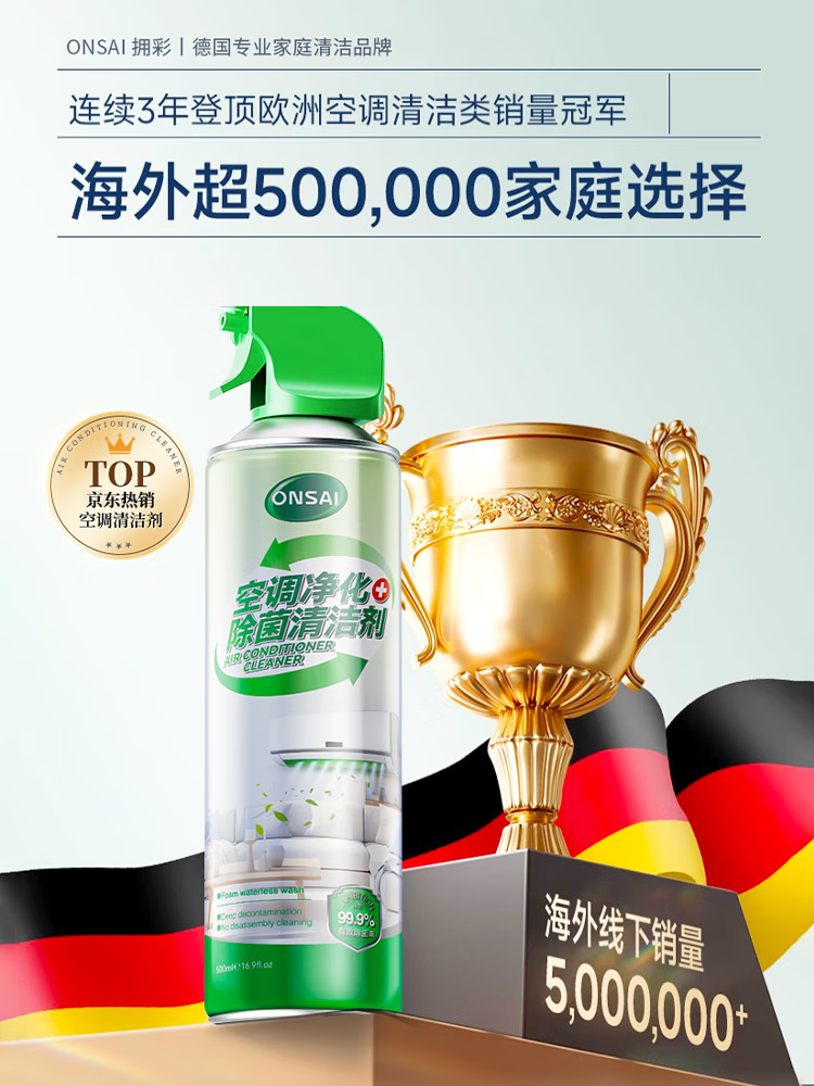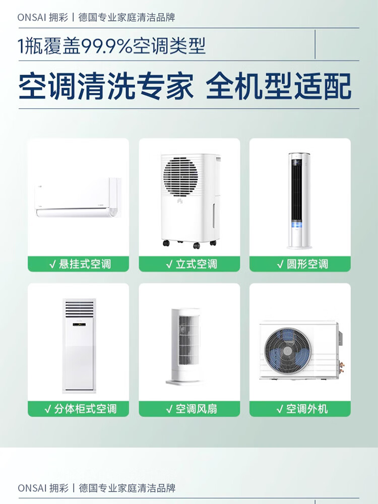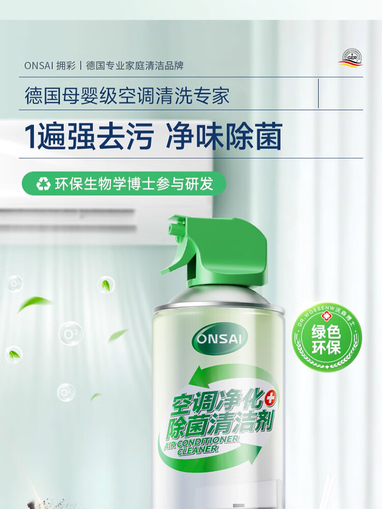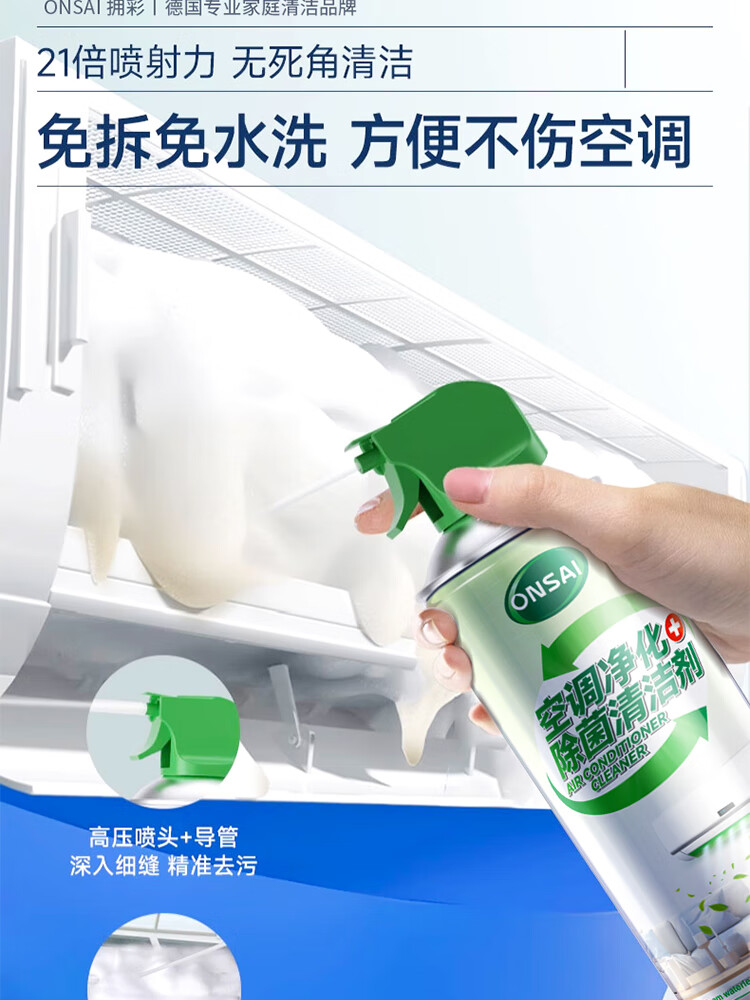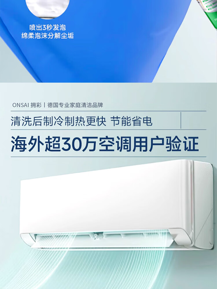 拥彩空调清洗剂免拆洗家用挂机柜机强力去污杀菌去异味洗内机清洁液