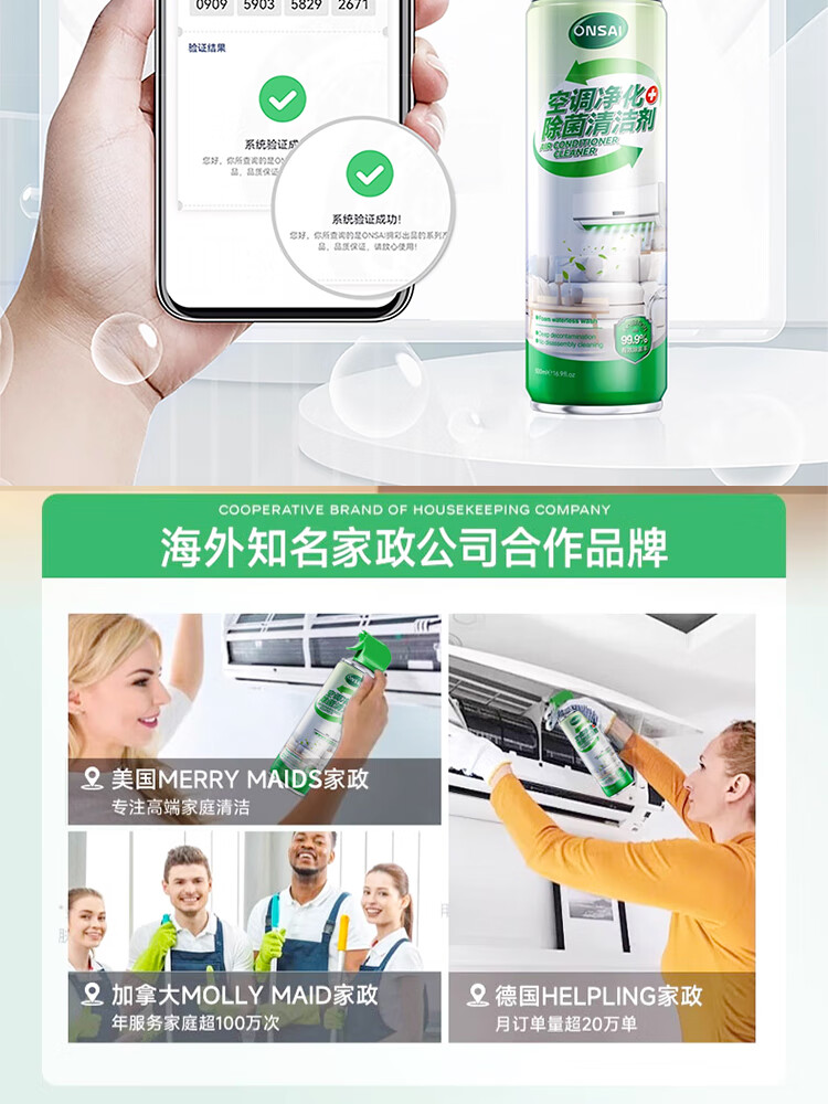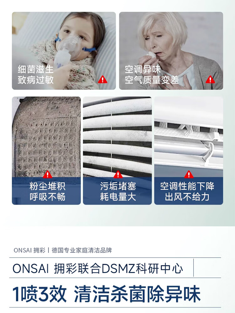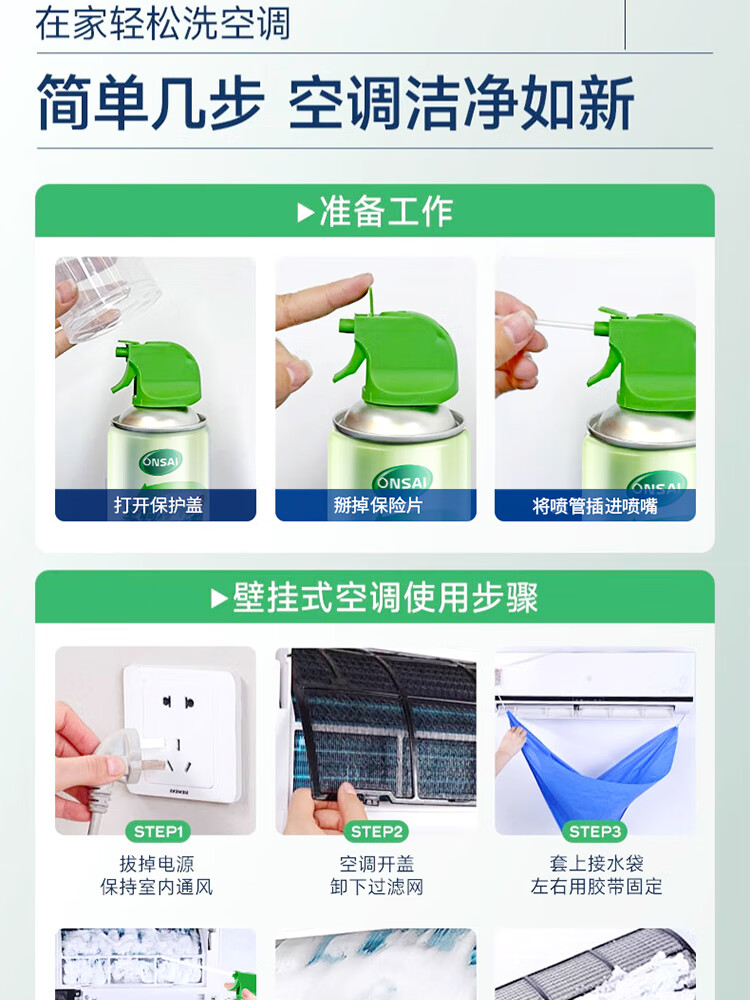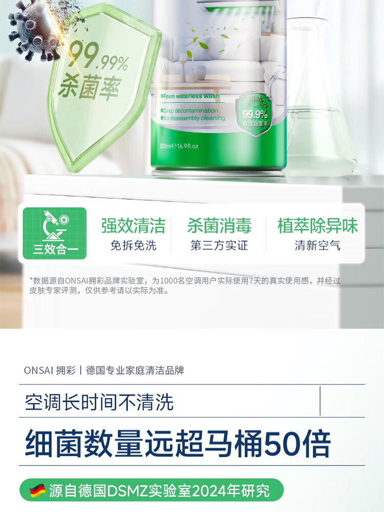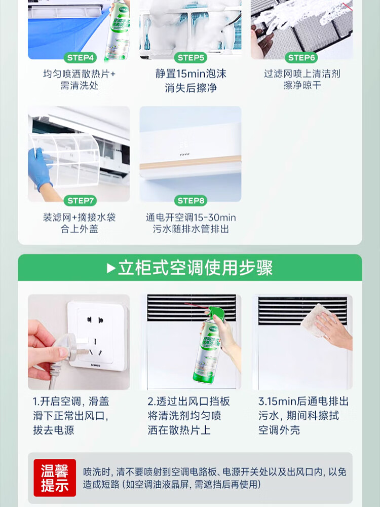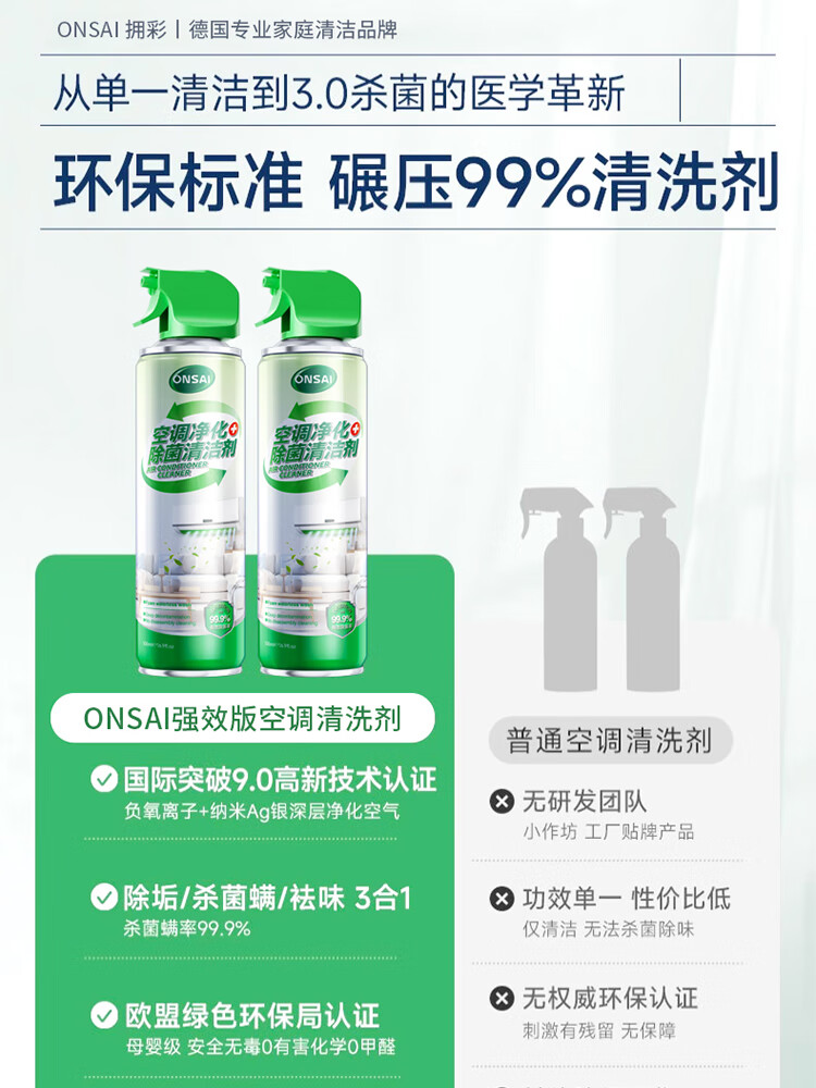 拥彩空调清洗剂免拆洗家用挂机柜机强力去污杀菌去异味洗内机清洁液