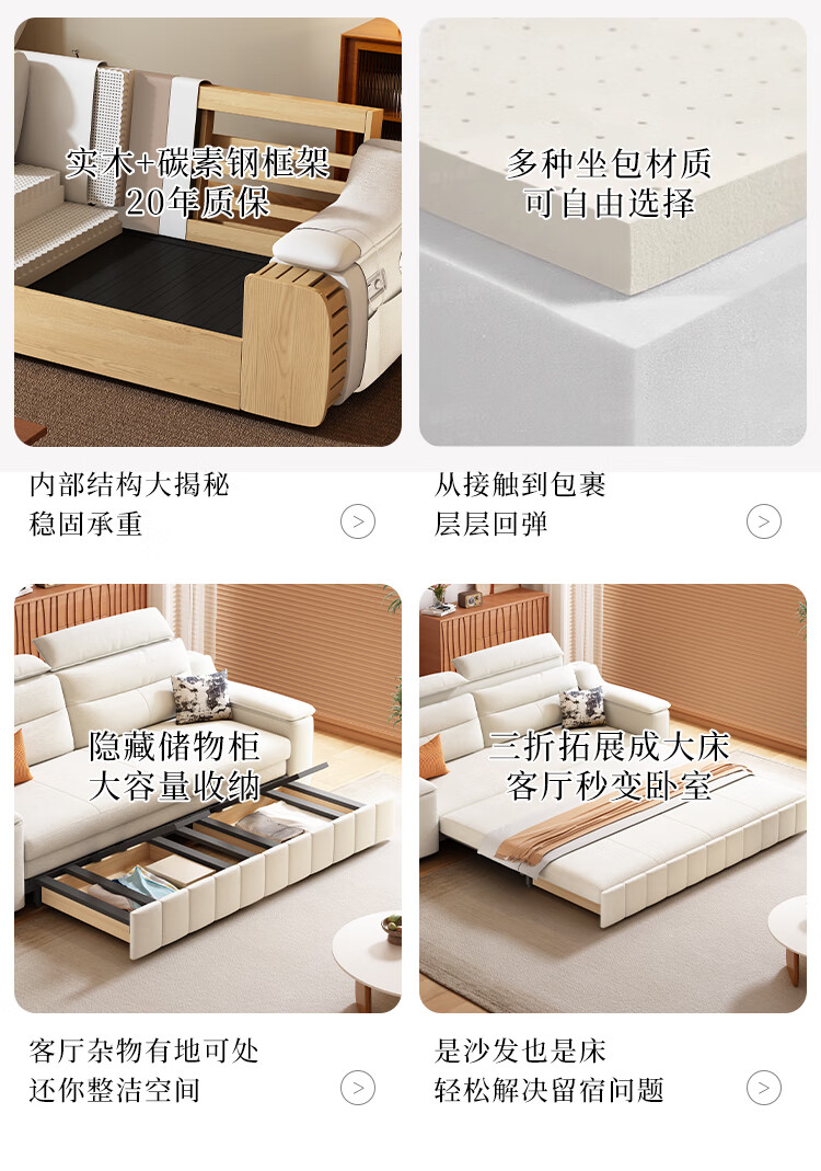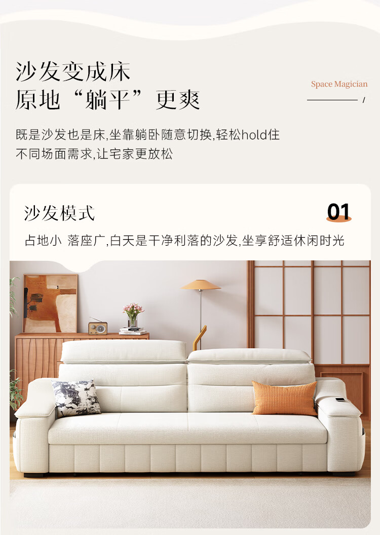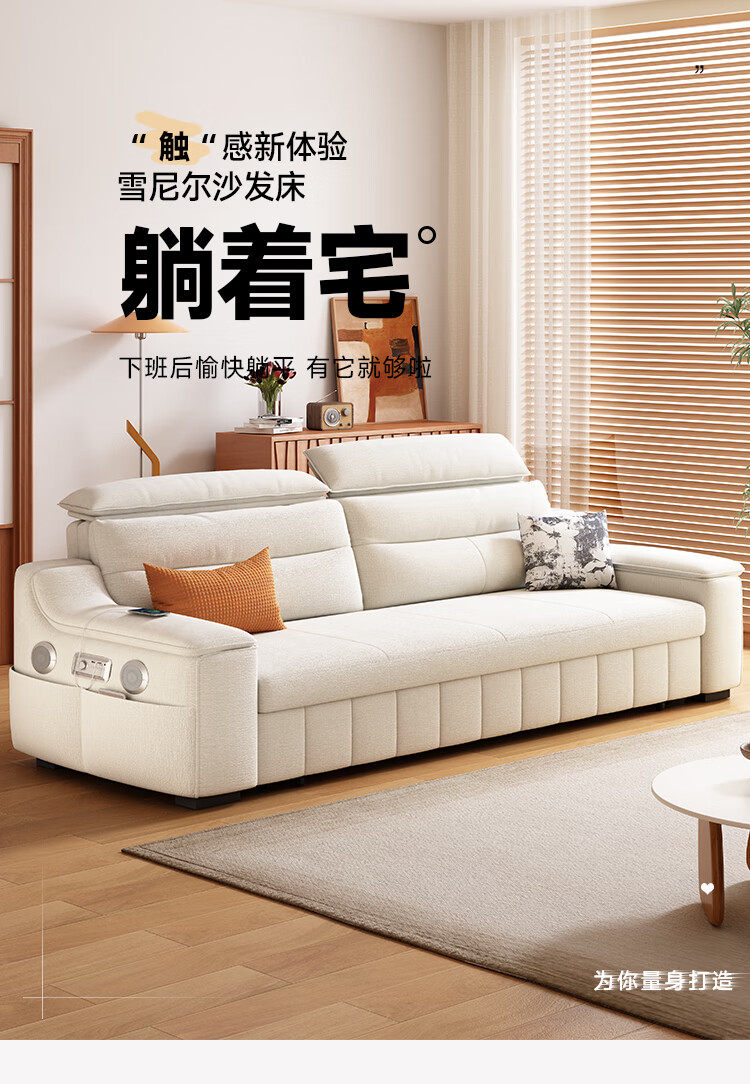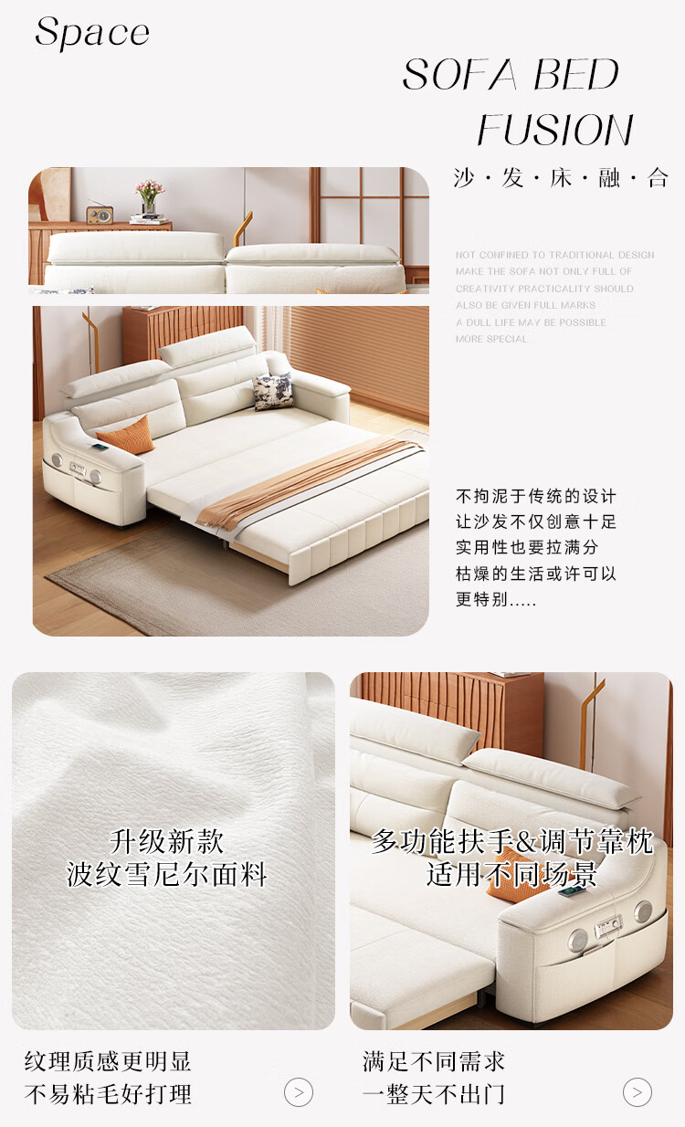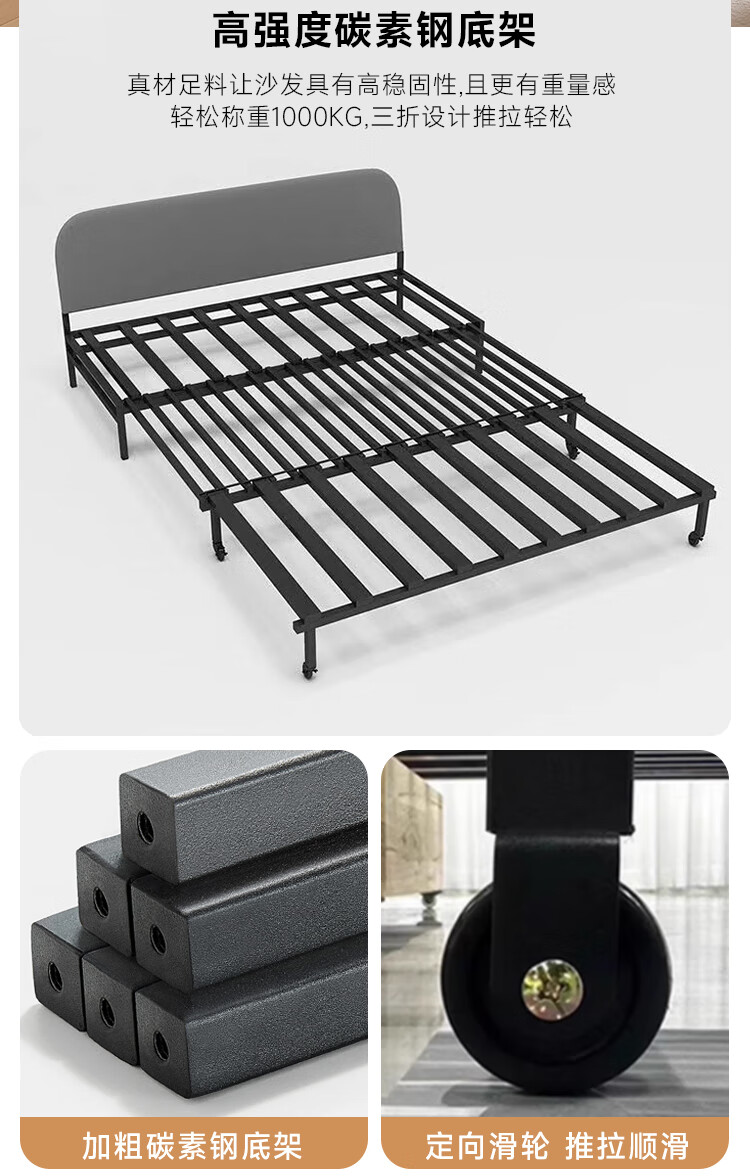 哈森诗丹多功能沙发床一体两用2025新款小户型家用客厅高端折叠雪尼尔沙发 外径:1.4m(无储物)可调节头枕 高弹海绵款(加厚猫抓皮)