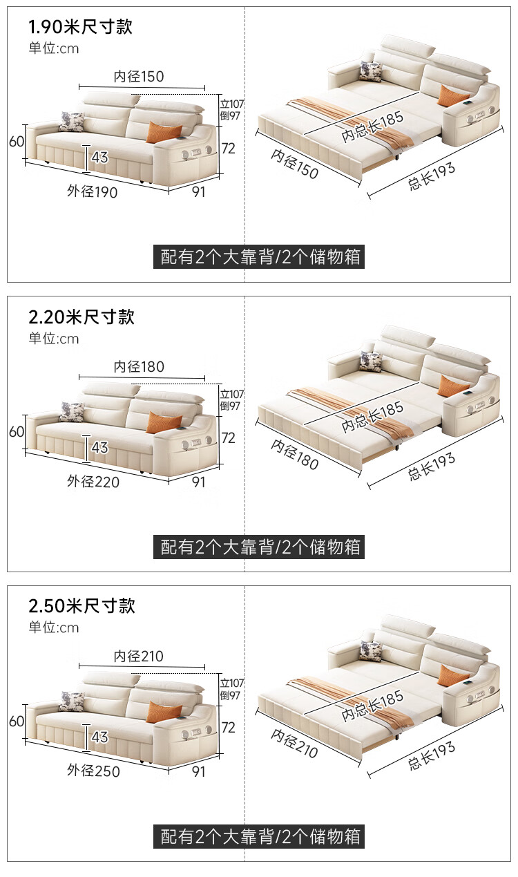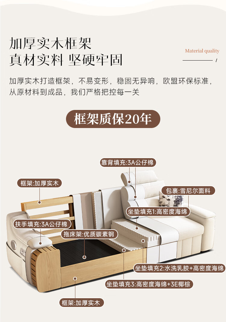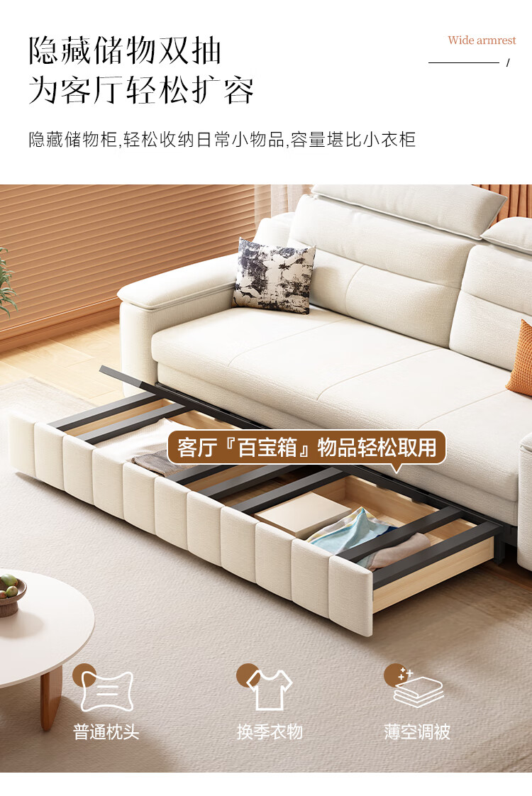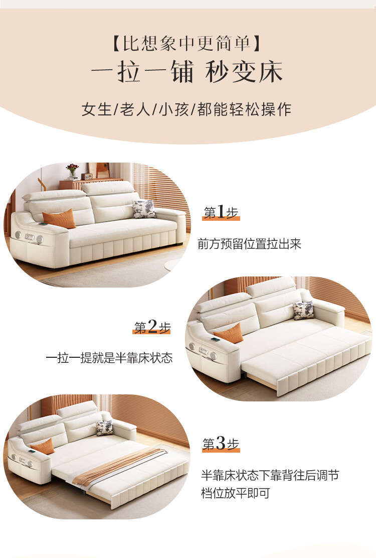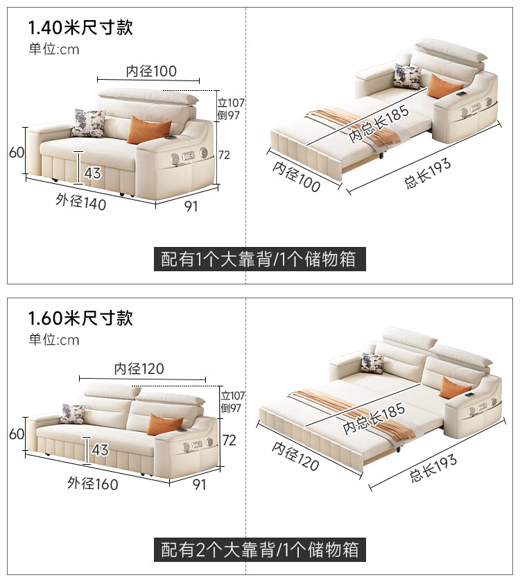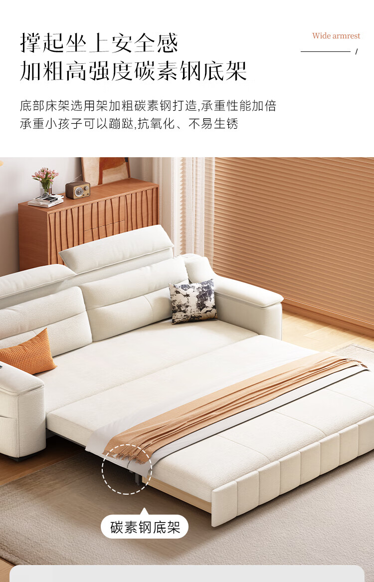 哈森诗丹多功能沙发床一体两用2025新款小户型家用客厅高端折叠雪尼尔沙发 外径:1.4m(无储物)可调节头枕 高弹海绵款(加厚猫抓皮)