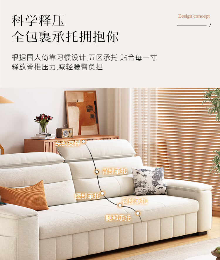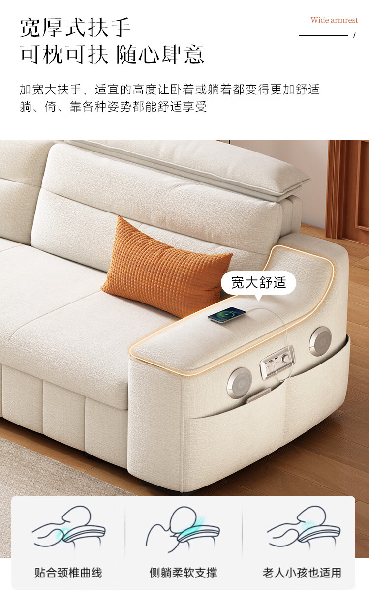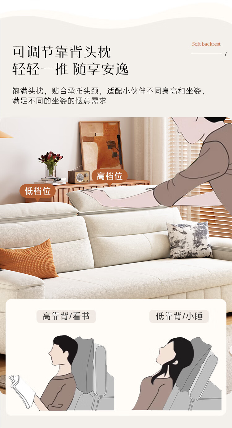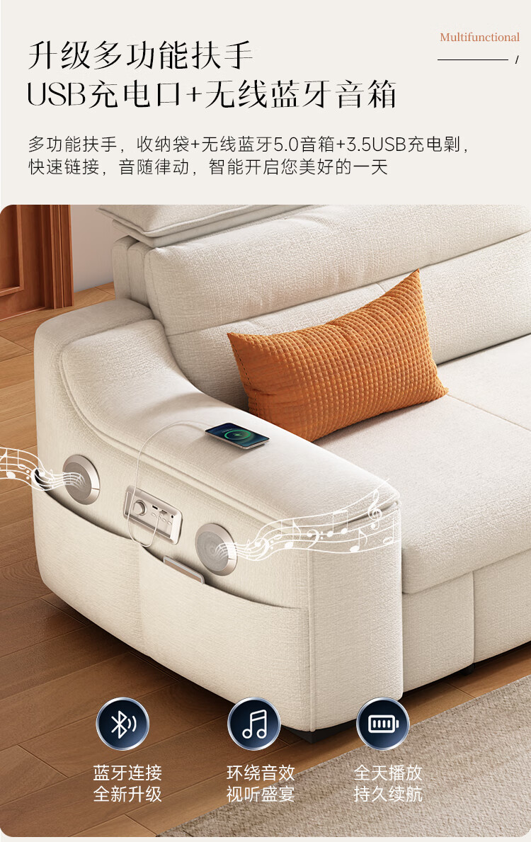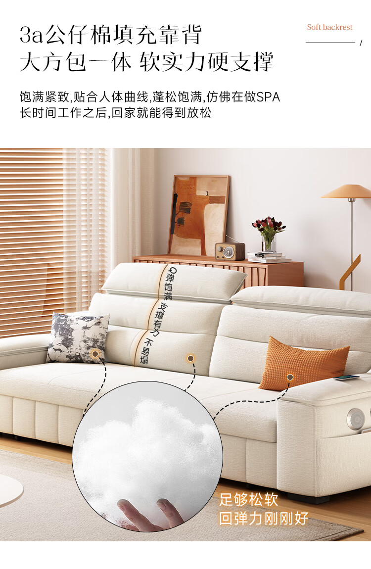 芝华仕(CHEERS)头等舱电动功能沙发客厅布艺小户型沙发云朵奶油风芝华士30202