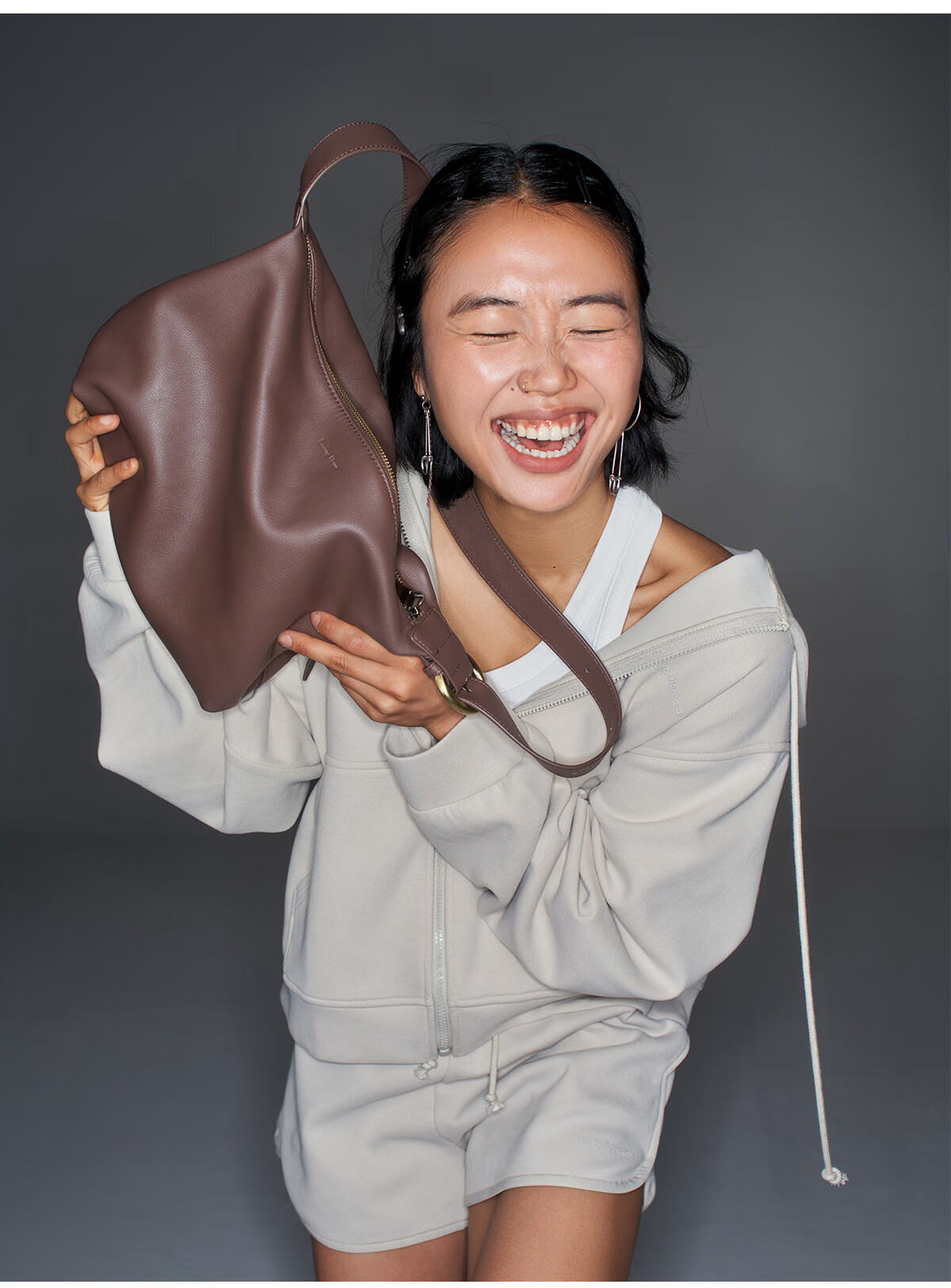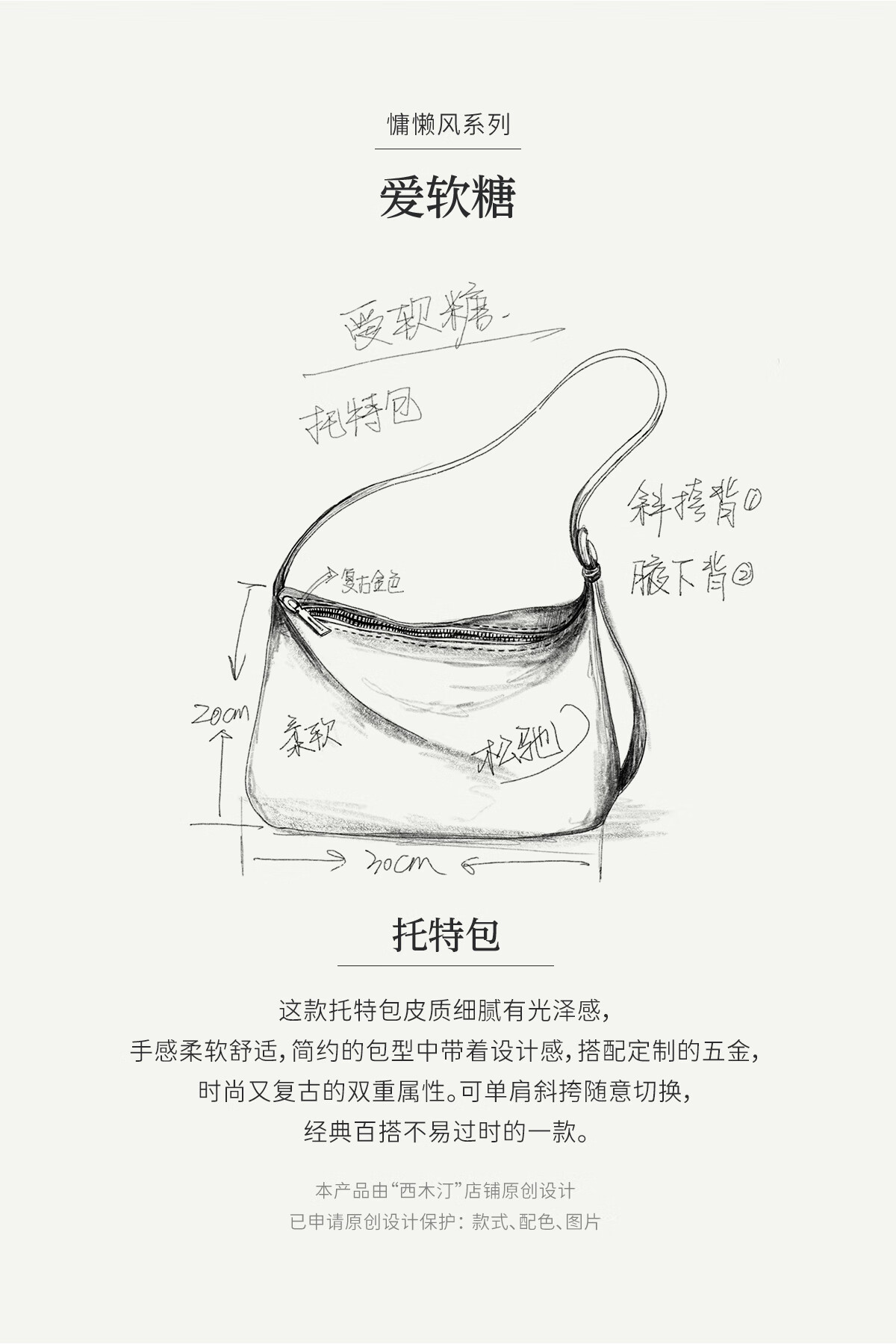 西木汀 爱软糖 牛皮托特包女大容量单肩通勤包小众轻奢斜挎包 咖色小号
