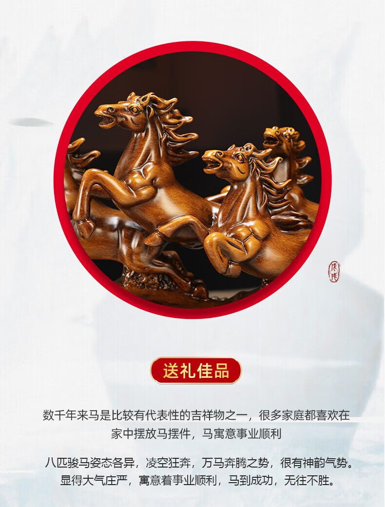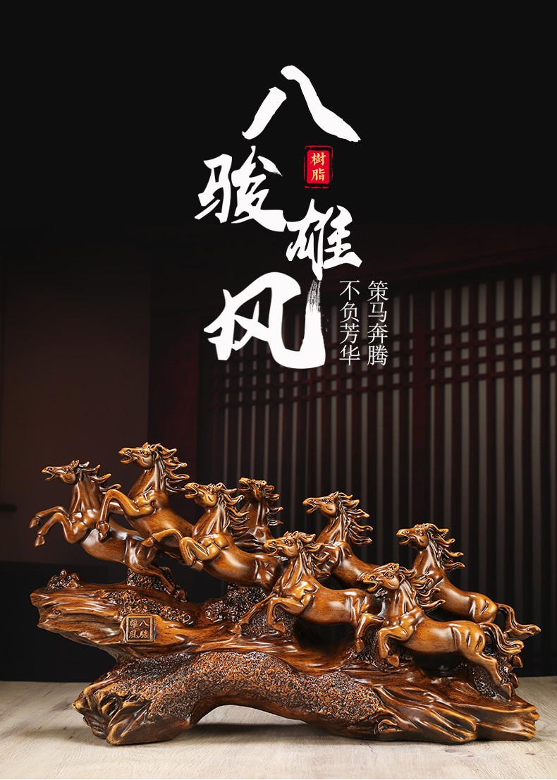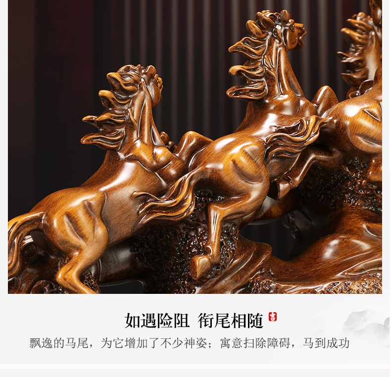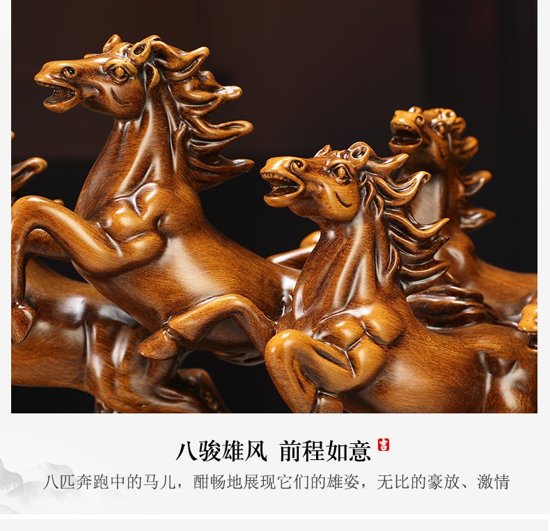 聚善缘八骏雄风招财马摆件中式办公室客厅酒柜装饰品公司开业乔迁礼物 【已售3000+】大号马60*17*34cm