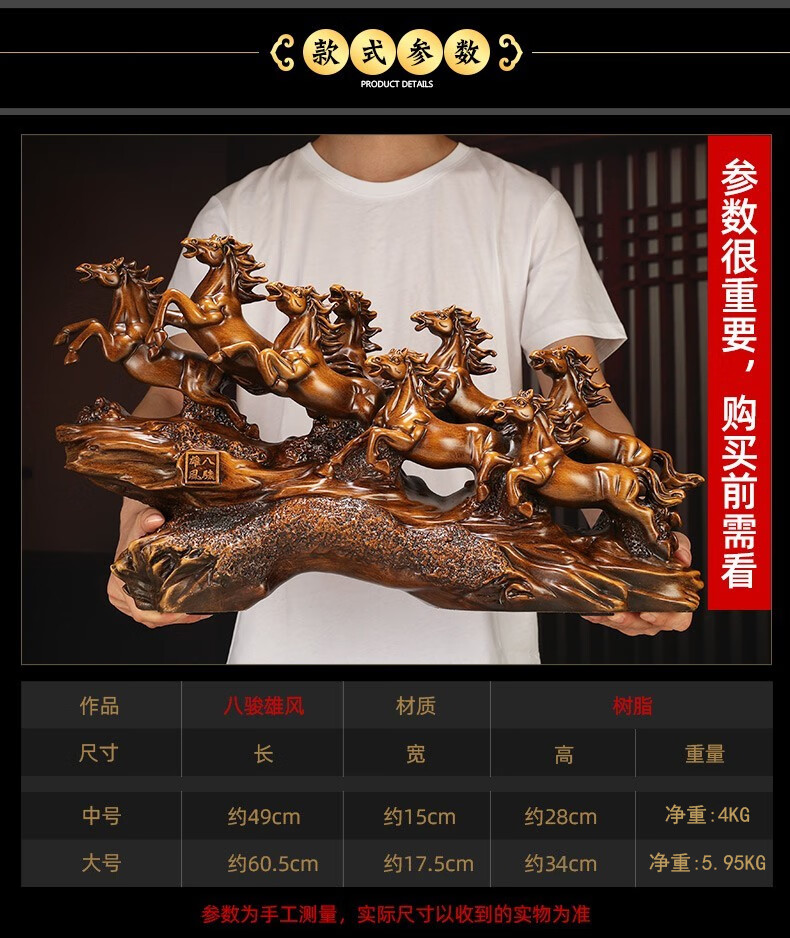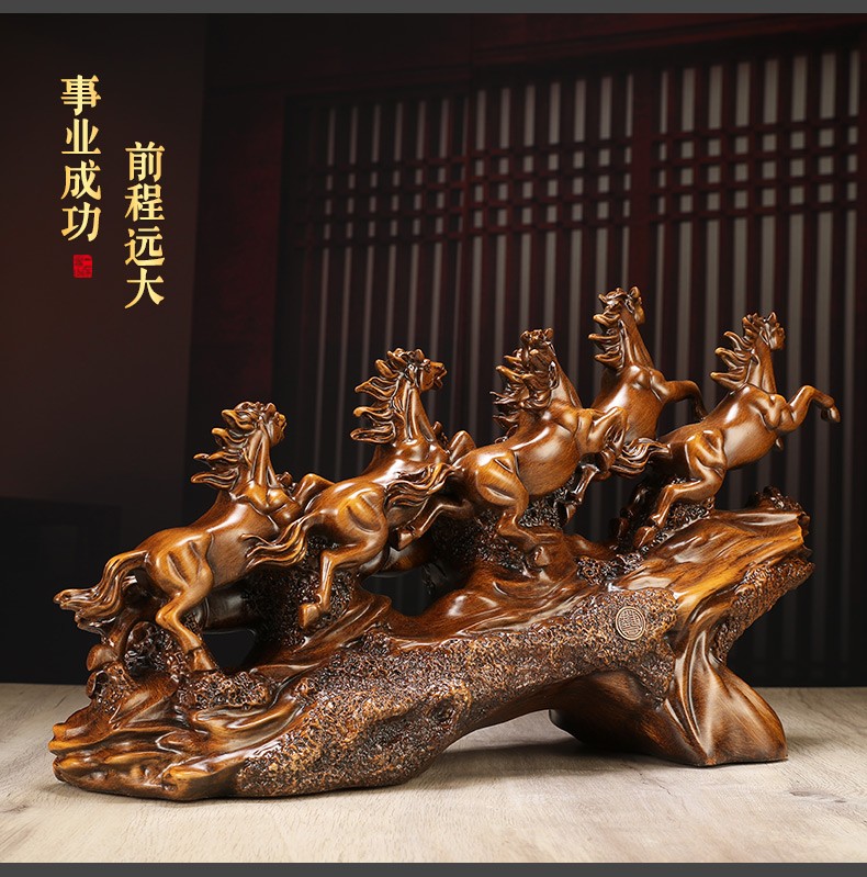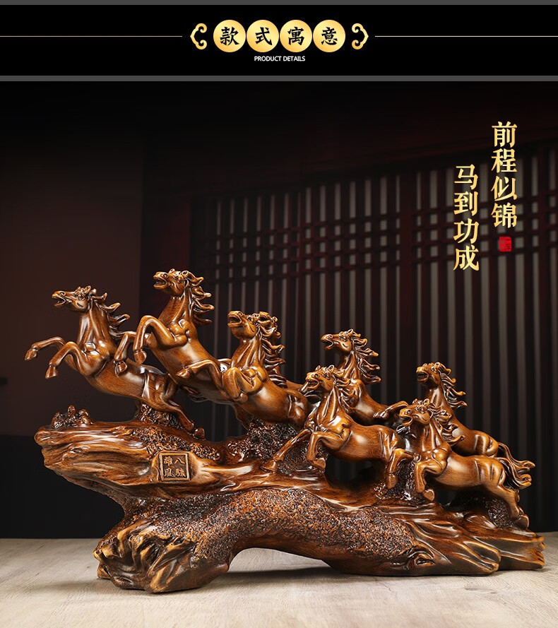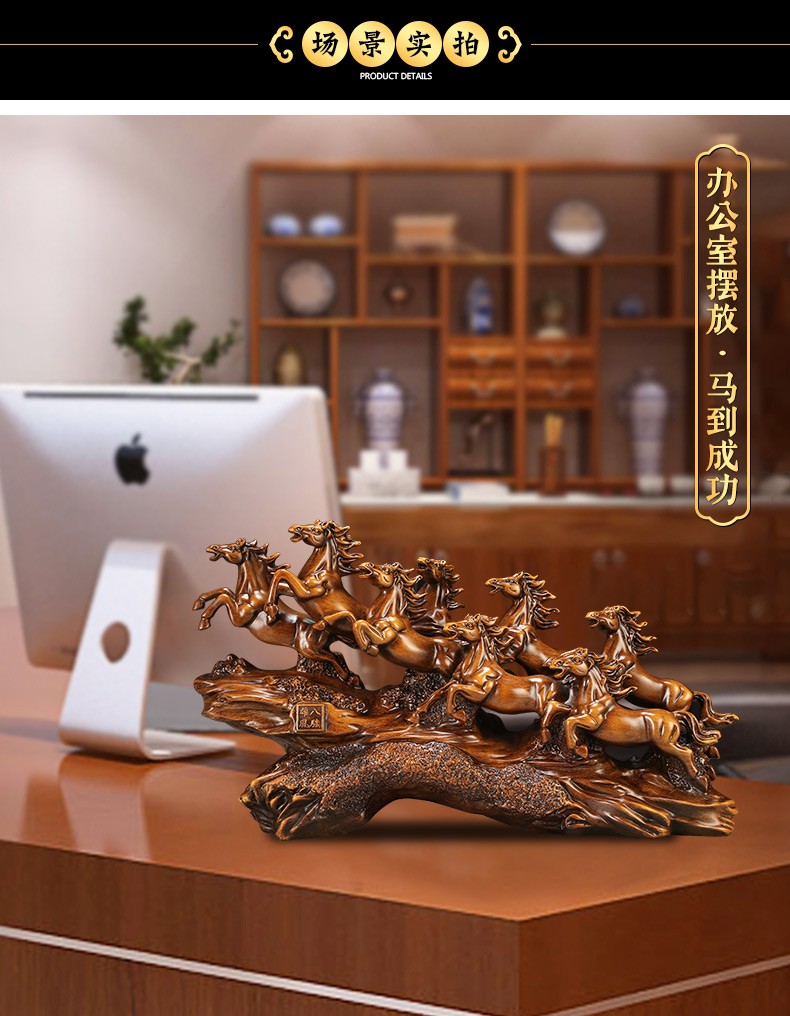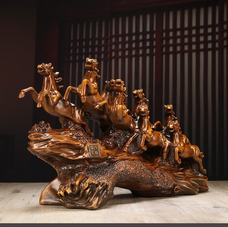 聚善缘八骏雄风招财马摆件中式办公室客厅酒柜装饰品公司开业乔迁礼物 【已售3000+】大号马60*17*34cm