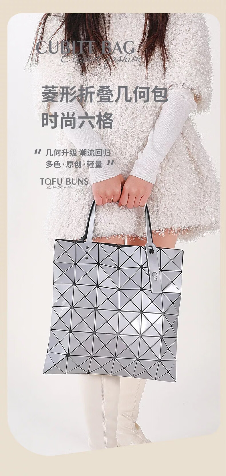 【大牌平替】六格6*6托特包几何手提包休闲菱格单肩腋下女包 炫彩白色