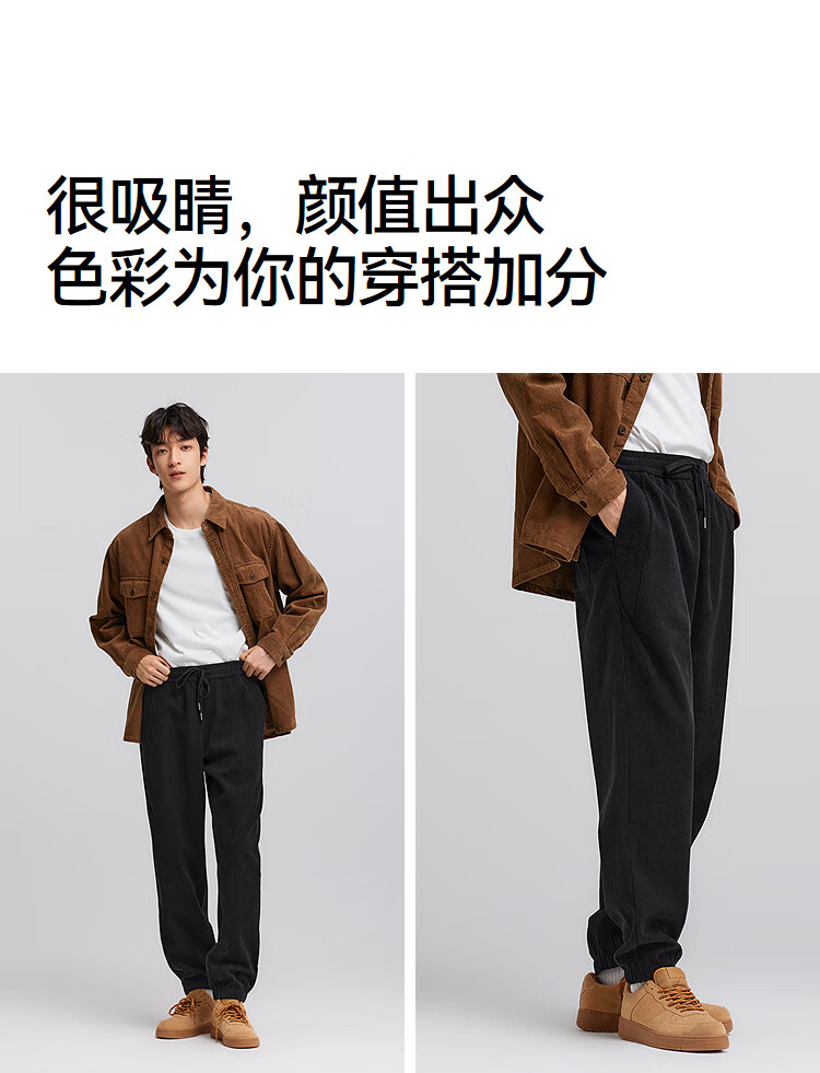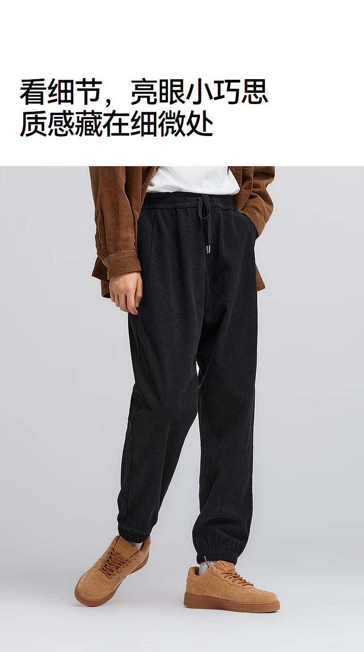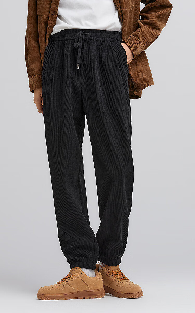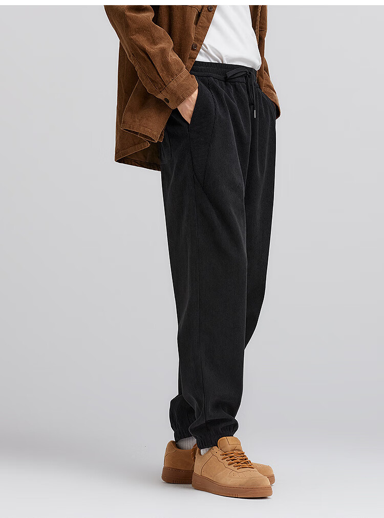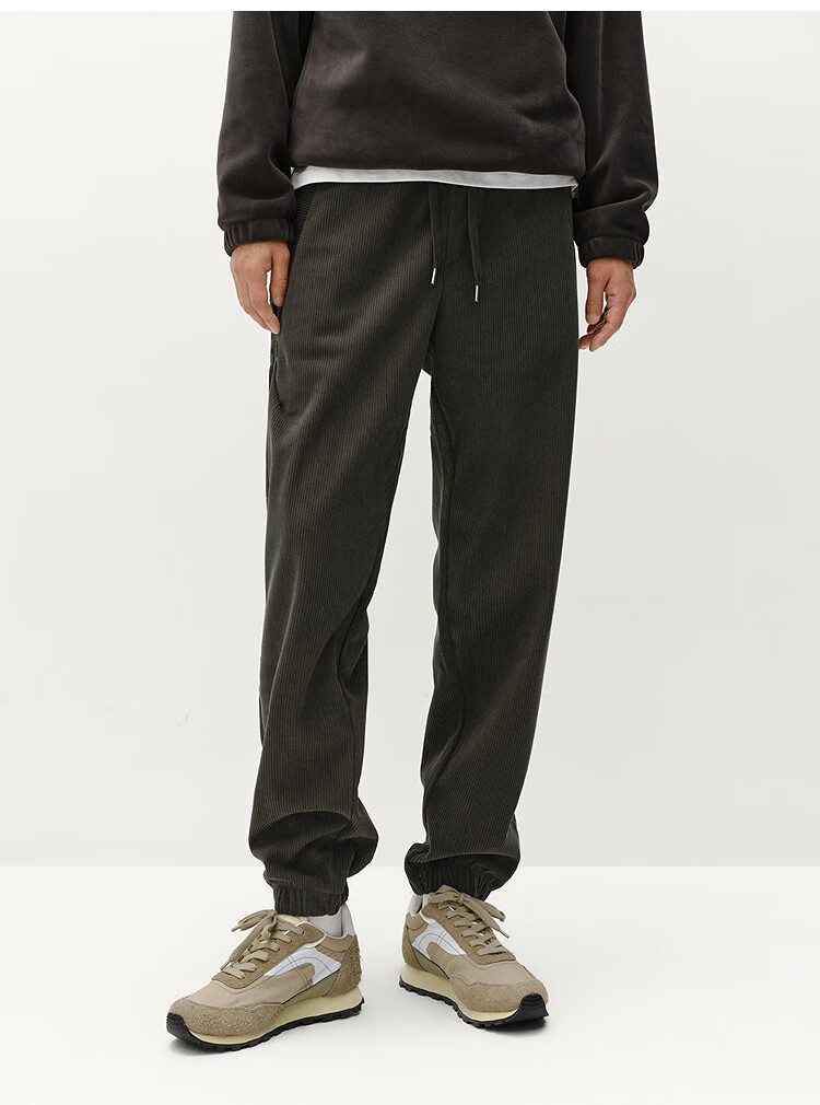 森马(Semir)休闲裤男肌理感灯芯绒长裤冬拼接抽绳束脚裤锥形101724127111