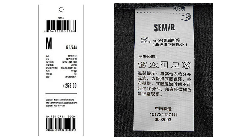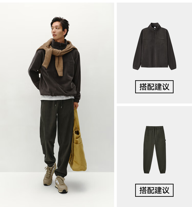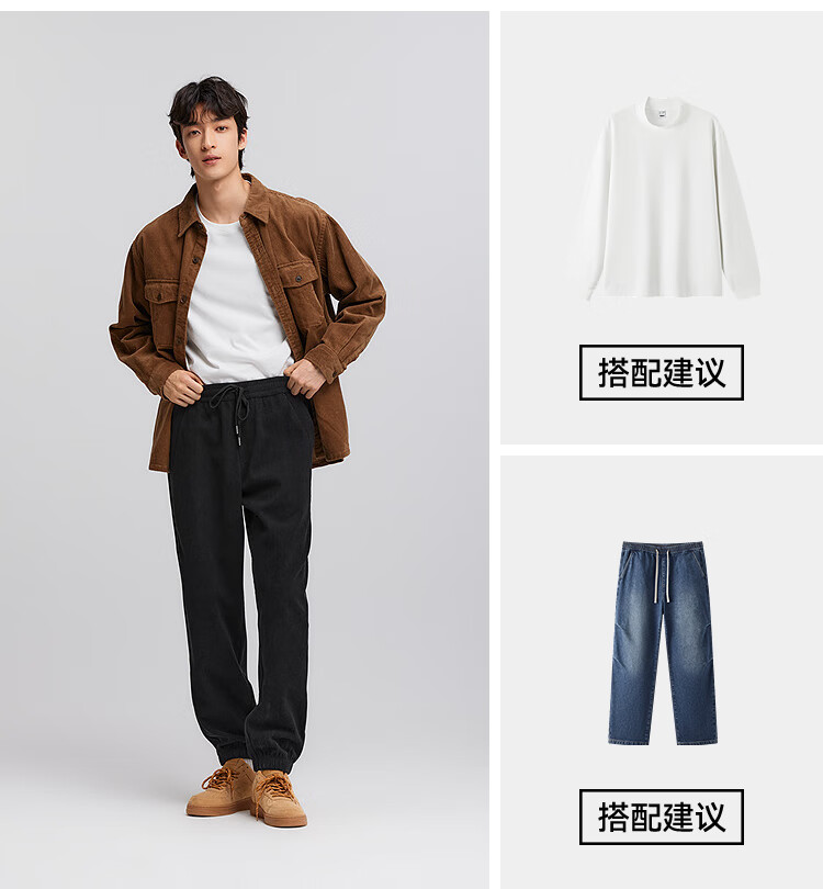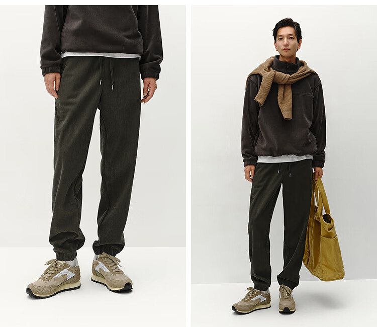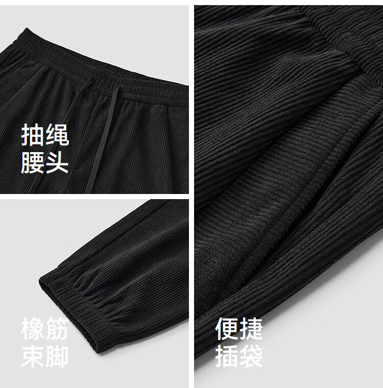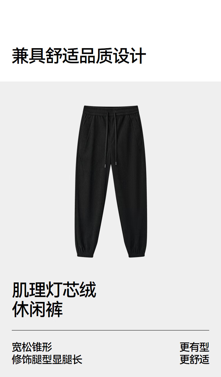 森马(Semir)休闲裤男肌理感灯芯绒长裤冬拼接抽绳束脚裤锥形101724127111