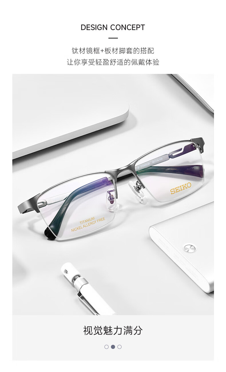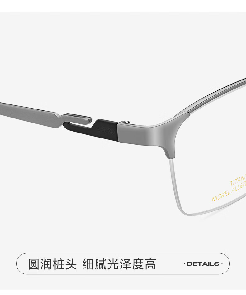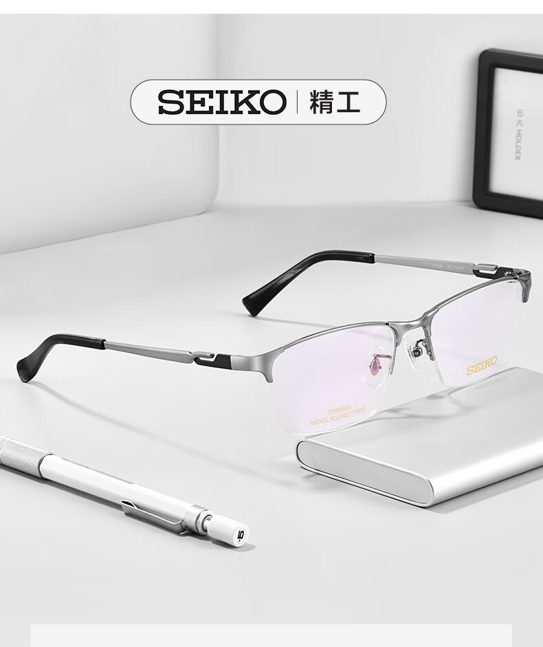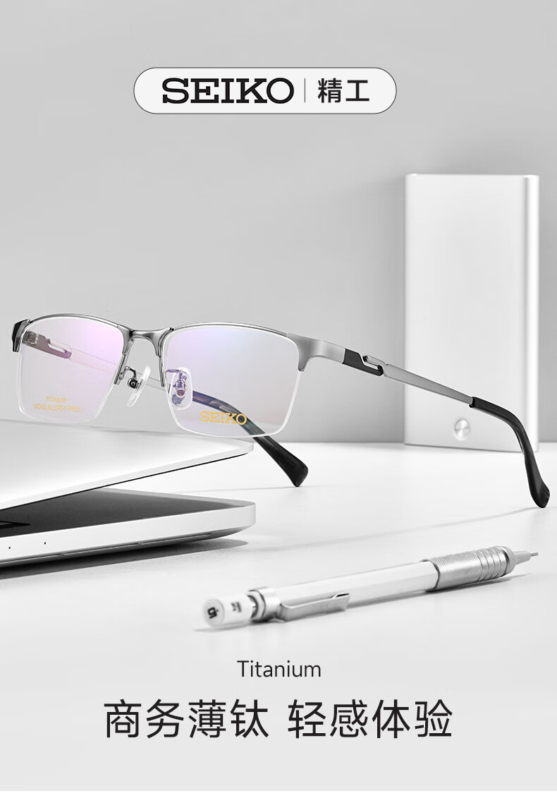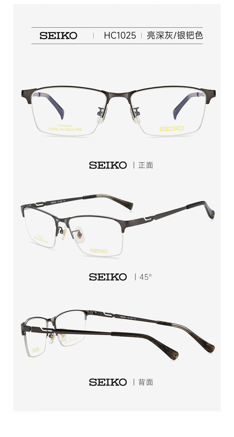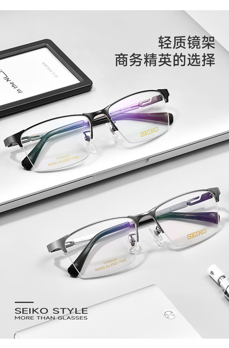 精工(SEIKO)眼镜框男款半框钛材远近视眼镜架HT01080 76 55mm亮深灰/银钯色