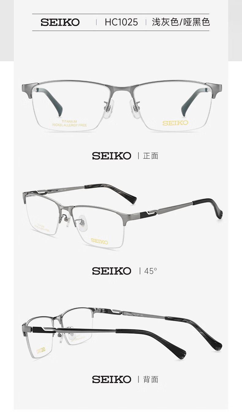 精工(SEIKO)眼镜框男款半框钛材休闲远近视镜架HC1025 169 55mm浅灰色/哑黑色