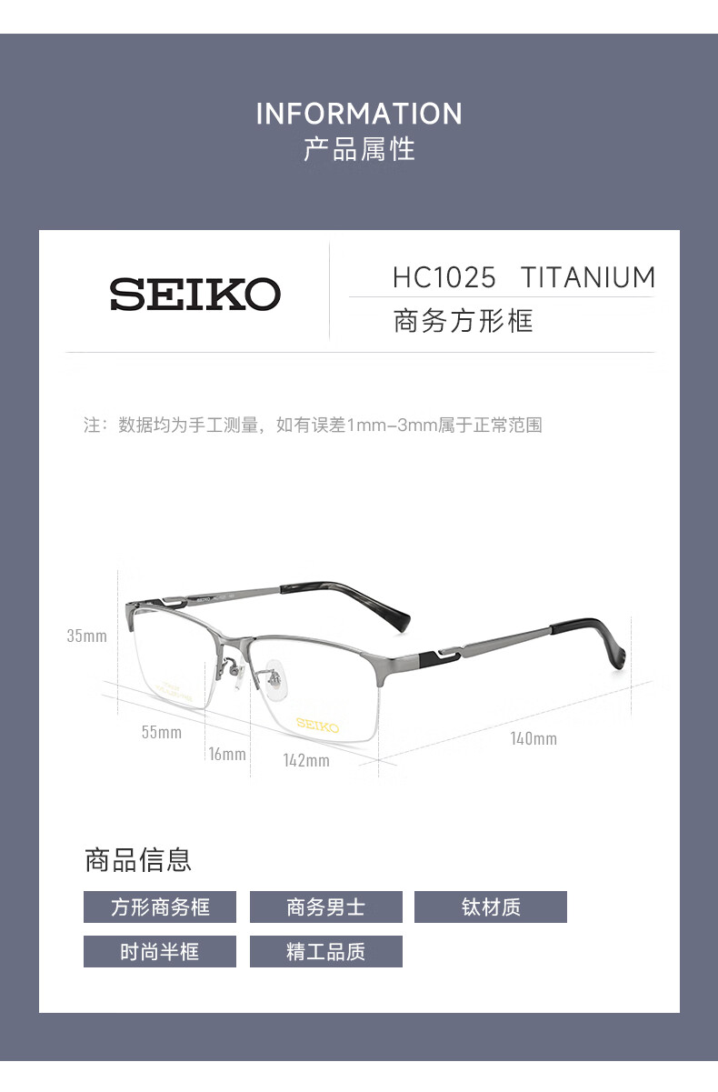 精工(SEIKO)眼镜框男款全框钛材轻商务休闲远近视眼镜架H01046 02 51mm银钯色