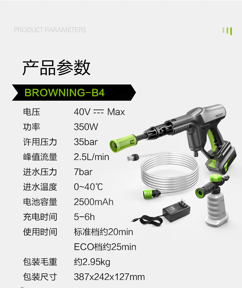 绿田(LUTIAN)40V无线洗车机家用锂电池350W高压清洗机手持充电水枪泵便携B4