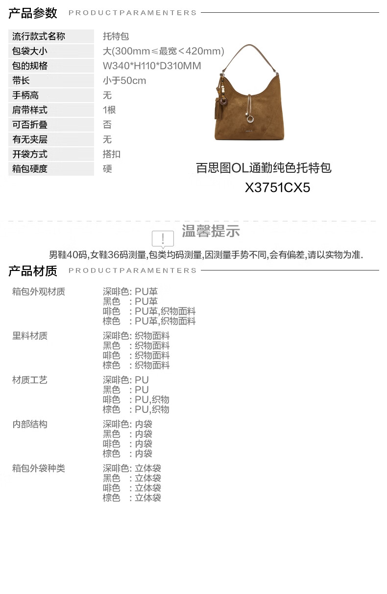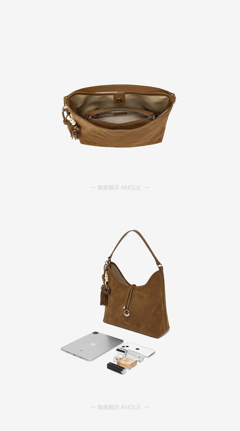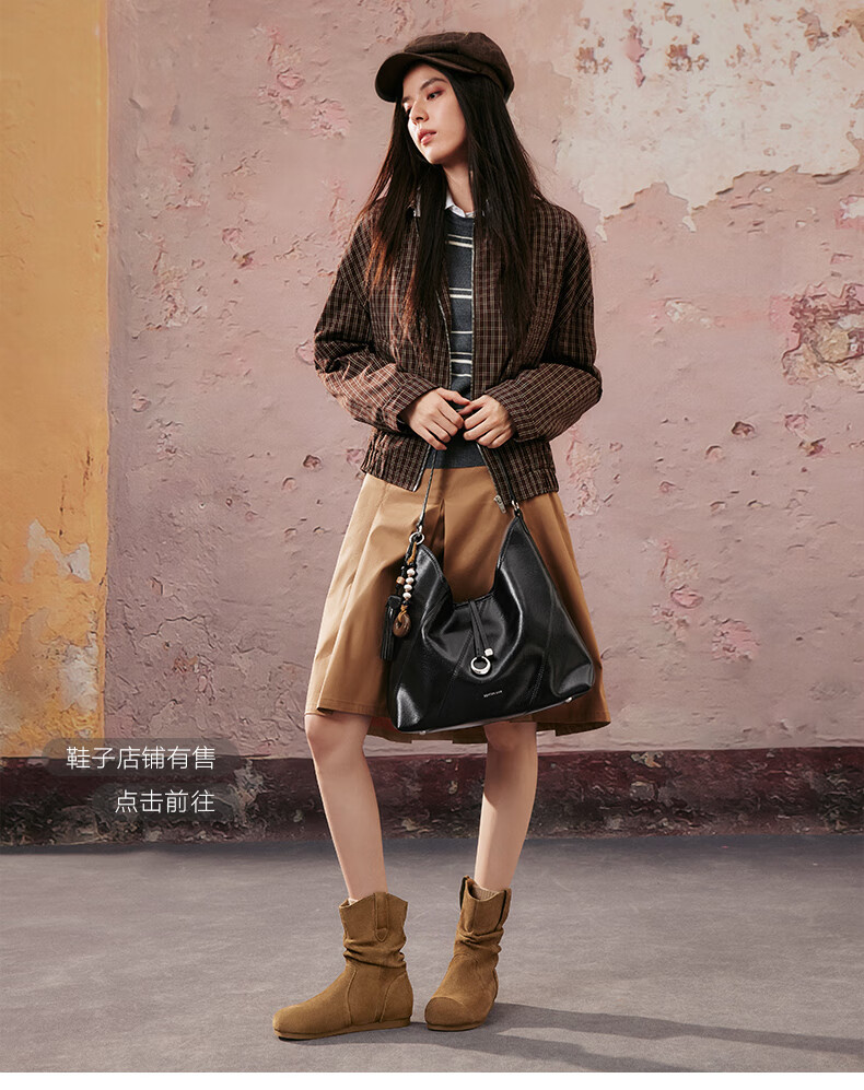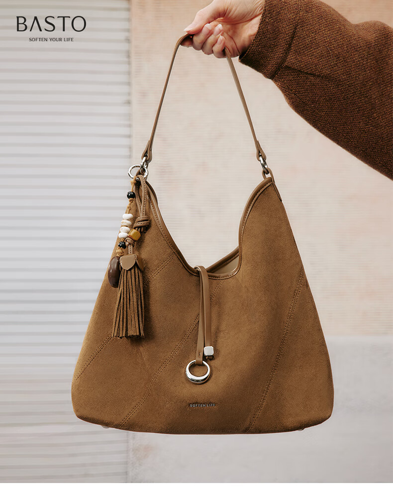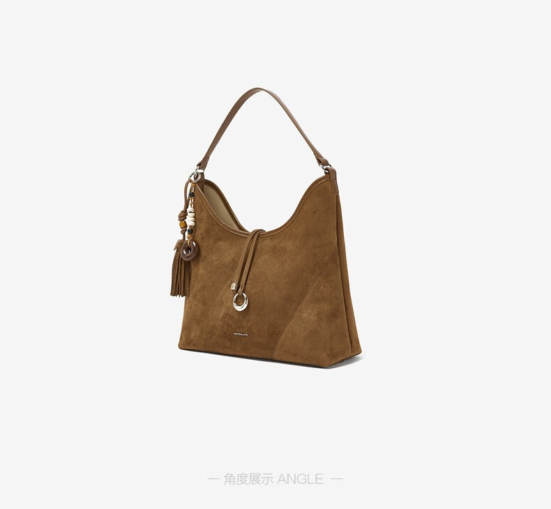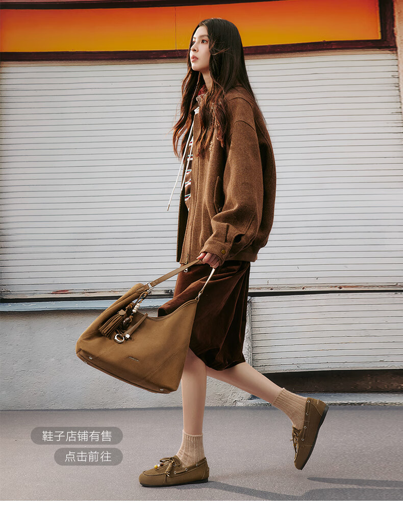 百思图25秋商场新款miu系托特包时尚流浪包单肩斜挎包女X3751CX5 棕色 F