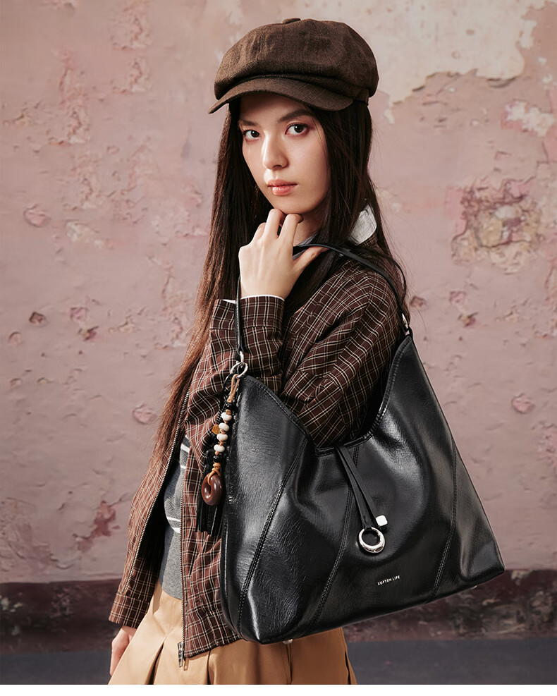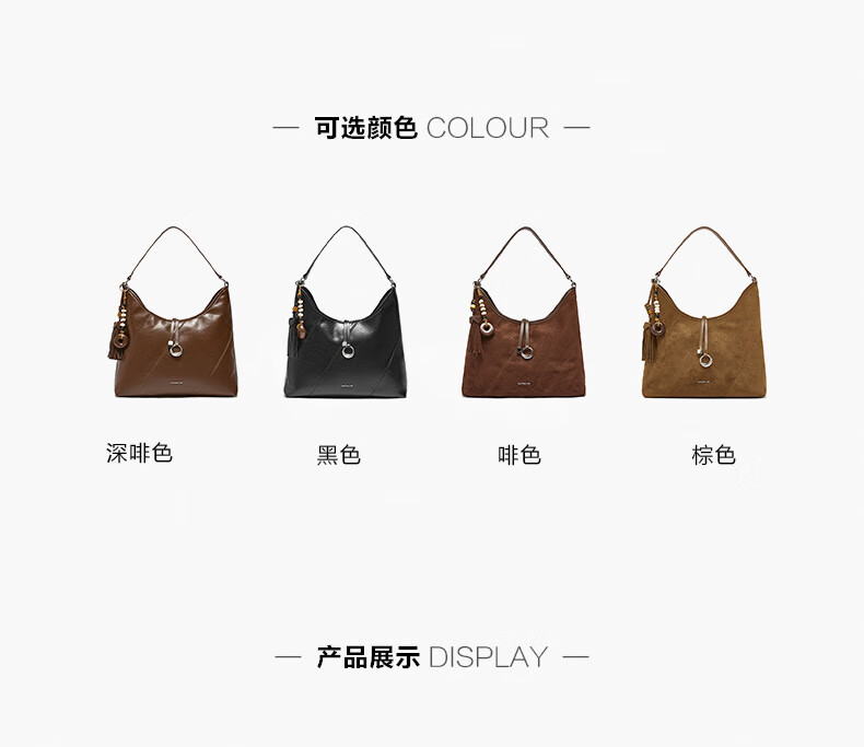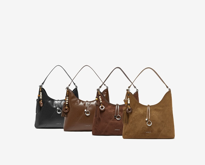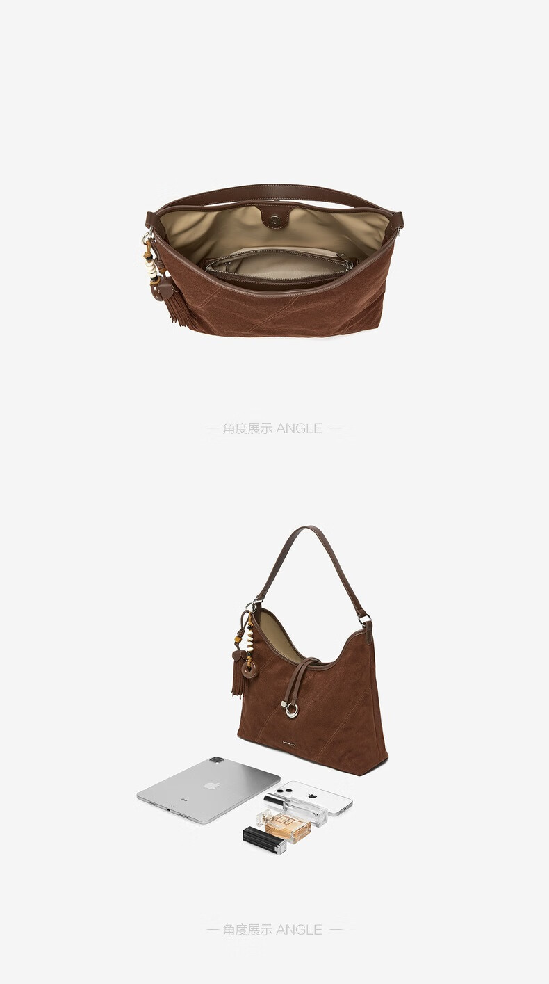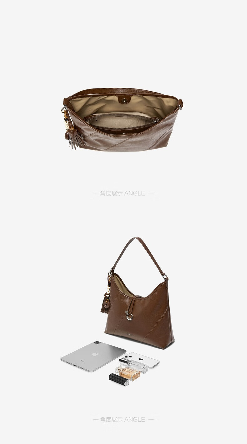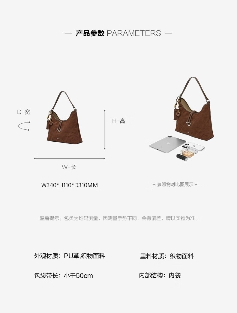 百思图25秋商场新款miu系托特包时尚流浪包单肩斜挎包女X3751CX5 棕色 F