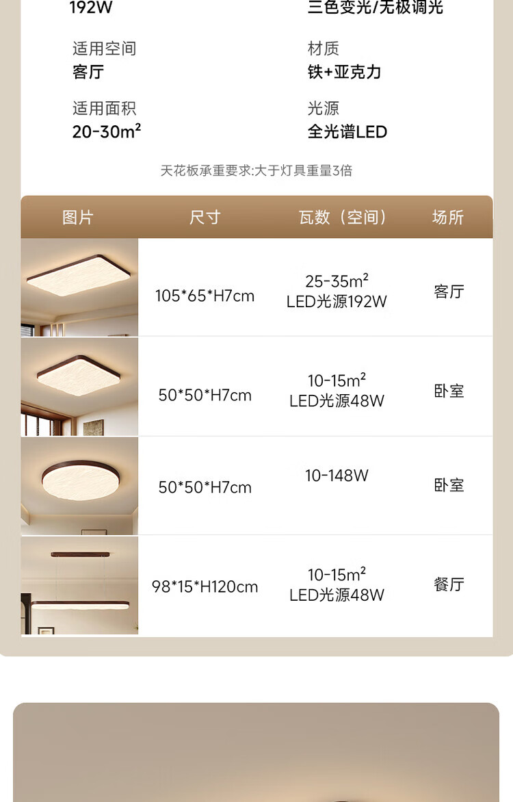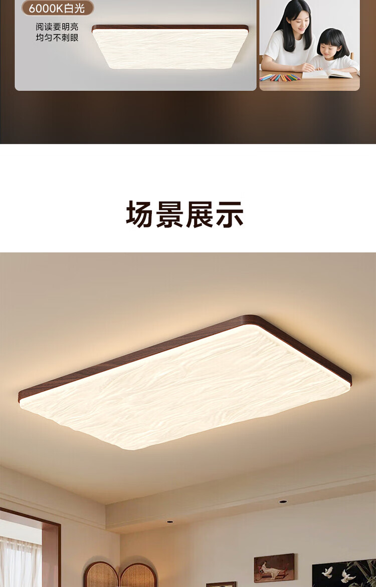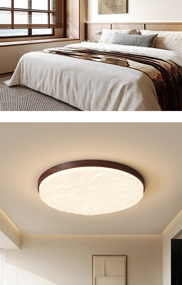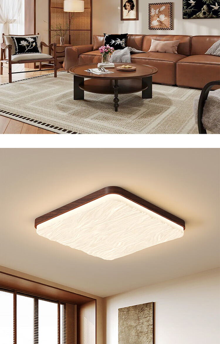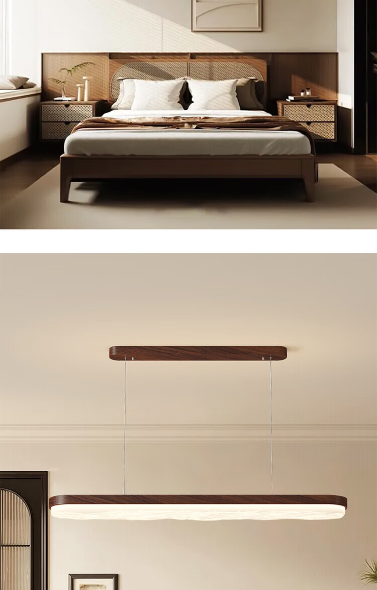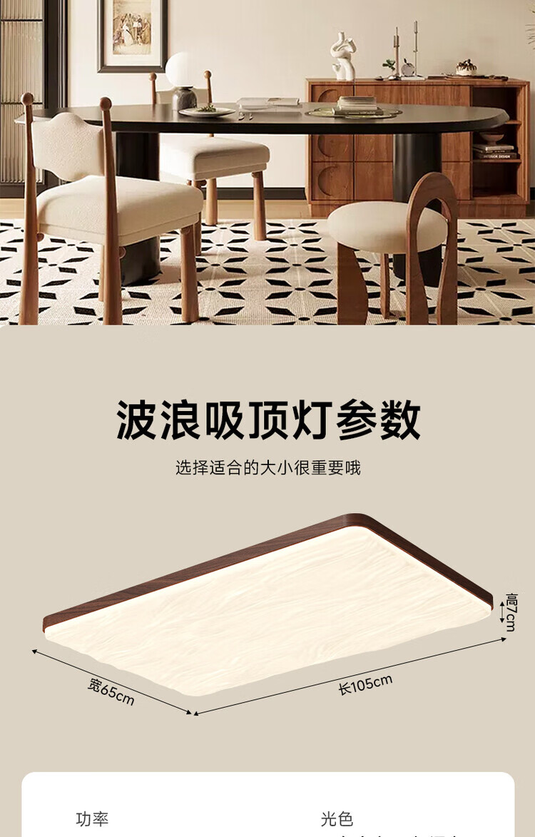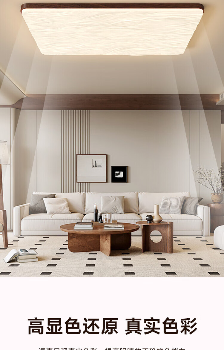 大自然照明(NATURE)中古风客厅吸顶灯复古胡桃木色卧室灯全屋灯具三室两厅套餐 【全光谱护眼】沙白色餐厅灯98CM 三色