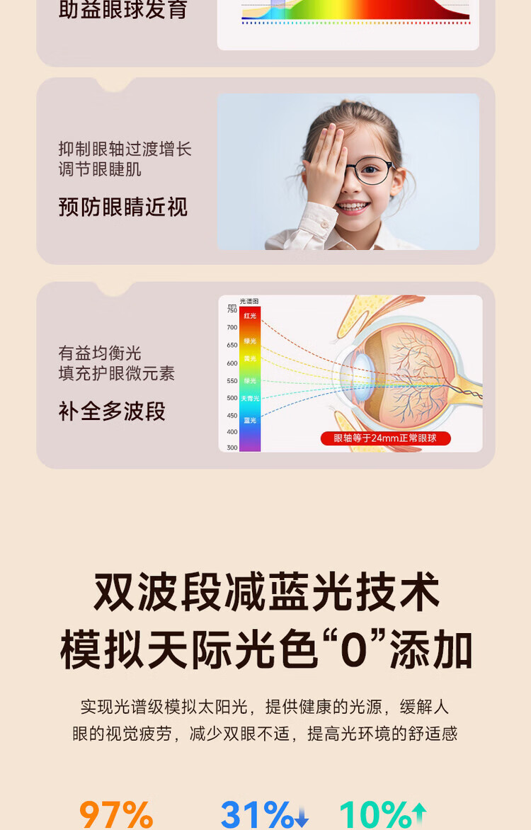 惠普护眼台灯全光谱学习专用国aa级学生儿童书桌作业写字阅读灯防近视 长条款-升级智能护眼款