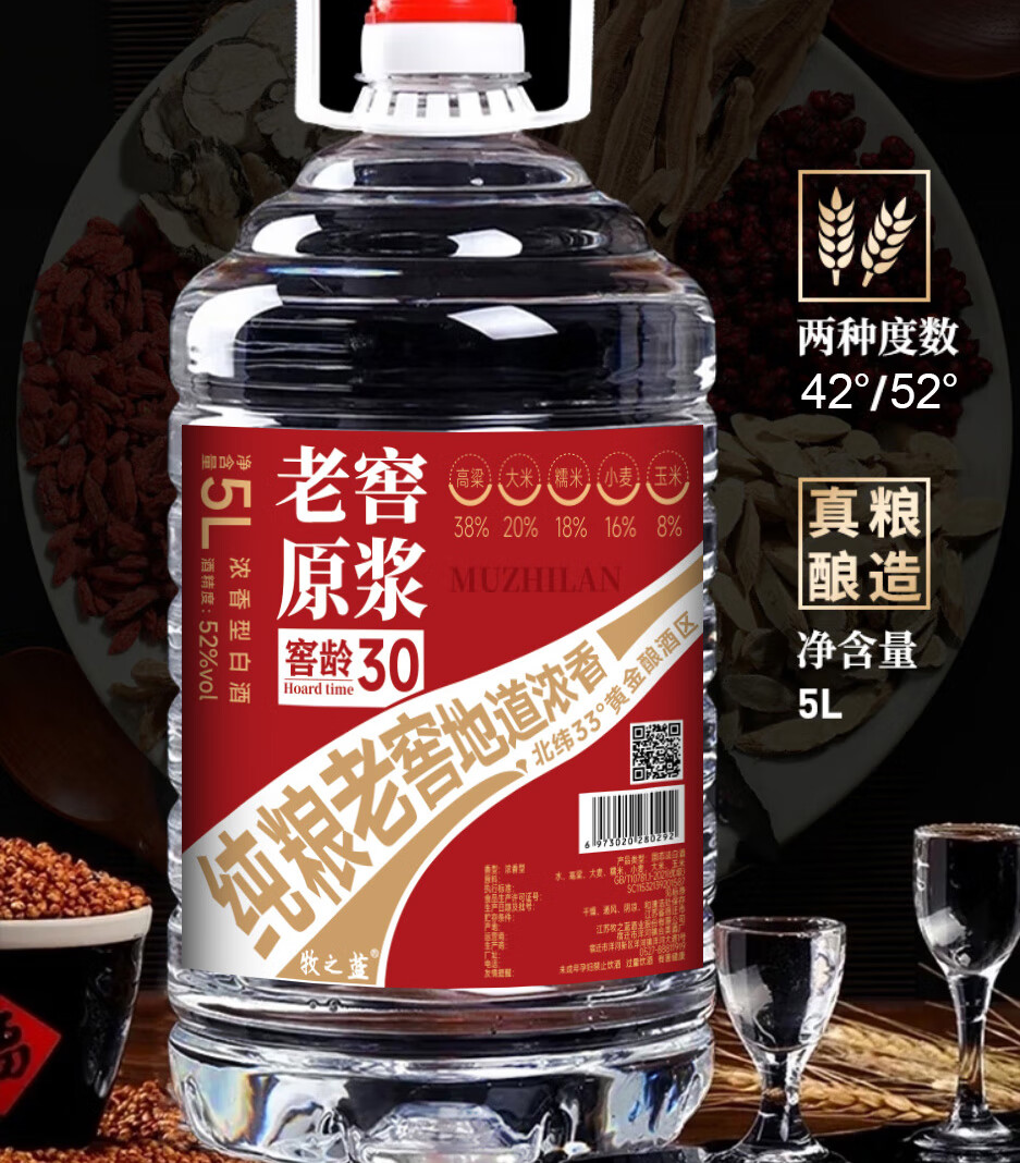 牧之蓝【老窖原浆】浓香型优级白酒 纯粮食白酒 散装泡酒高粱老酒水 42度 5L 1桶 纯酿 【高粱酒绵柔顺口】