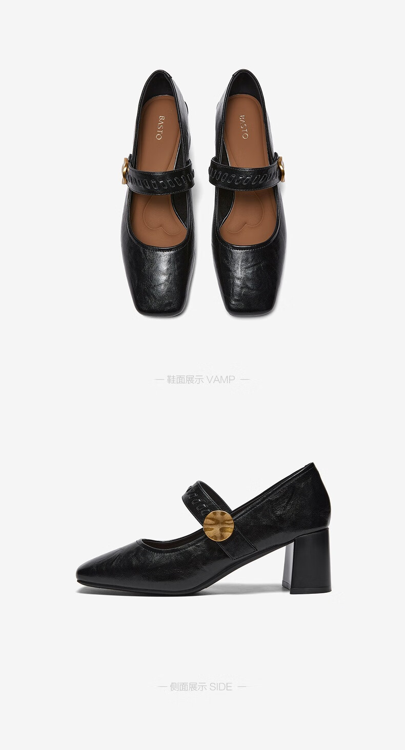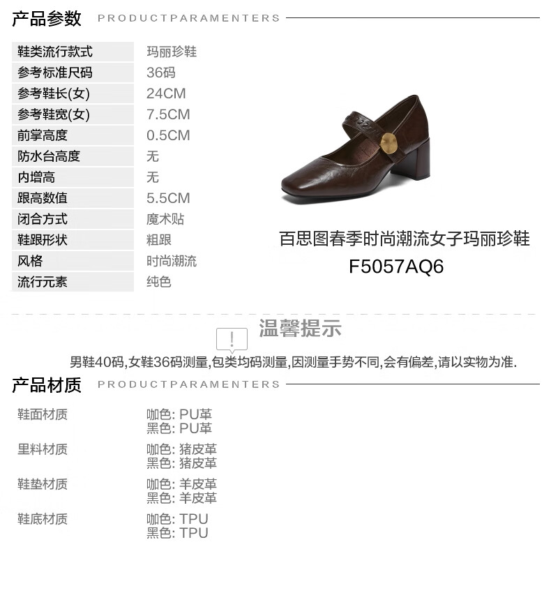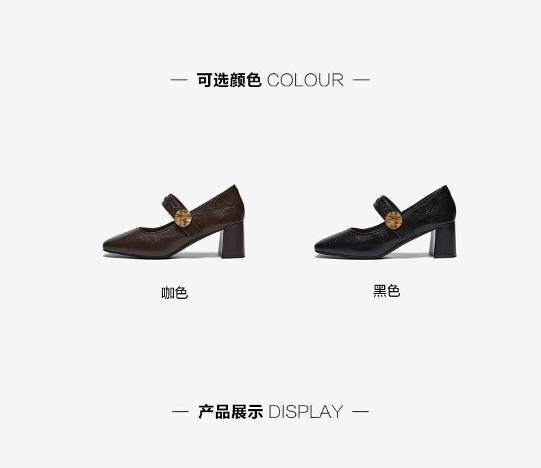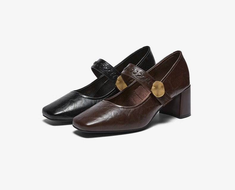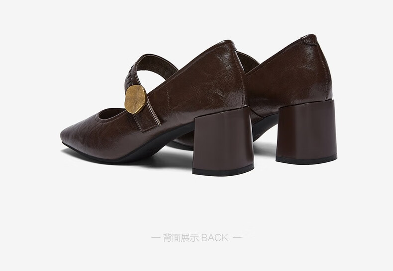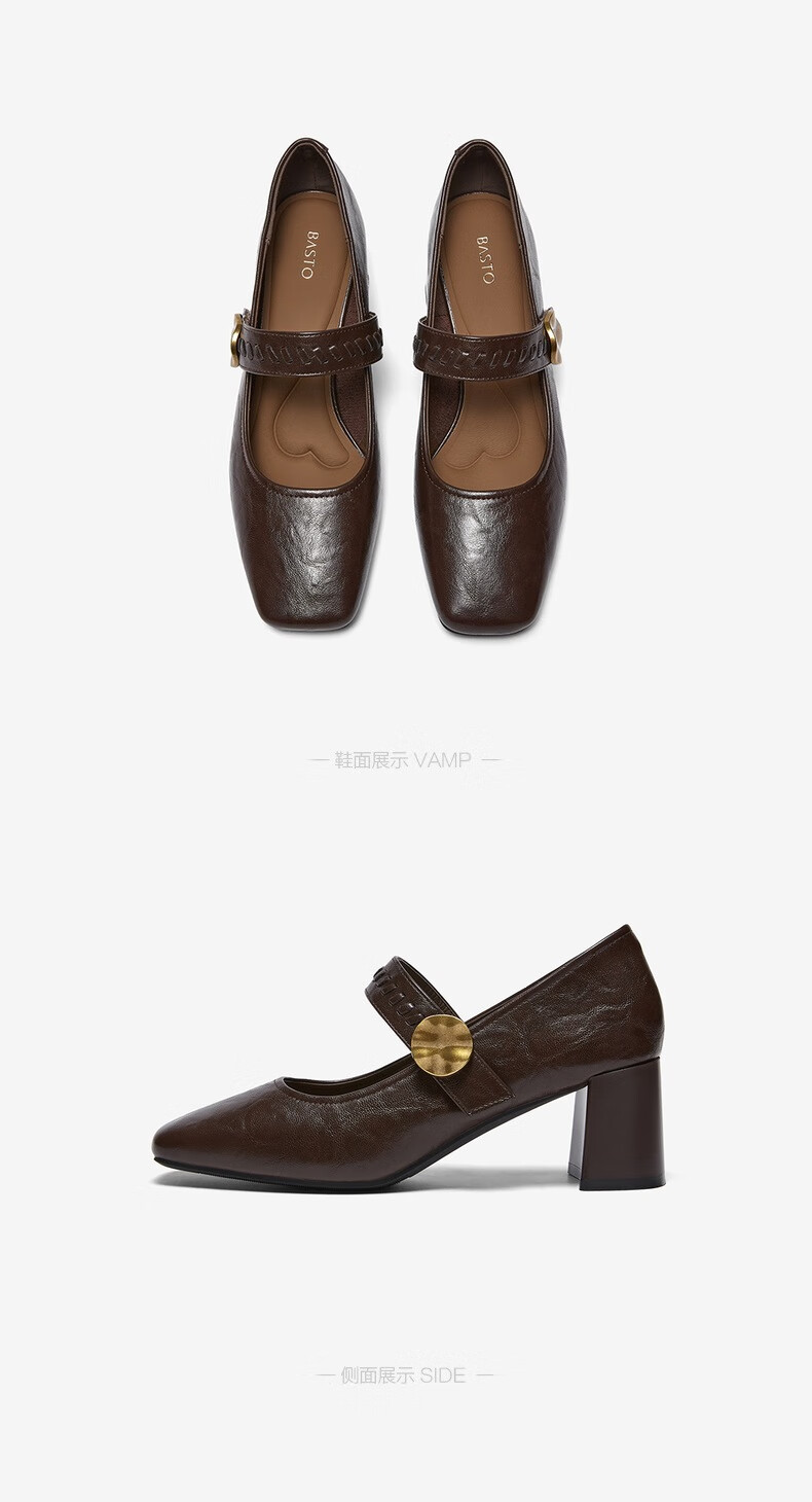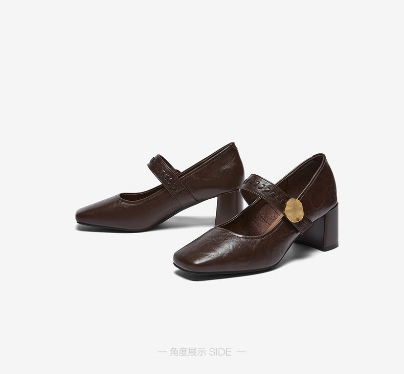百思图2026春季新款玛丽珍鞋时尚复古法式方头女单鞋F5057AQ6 咖色 36