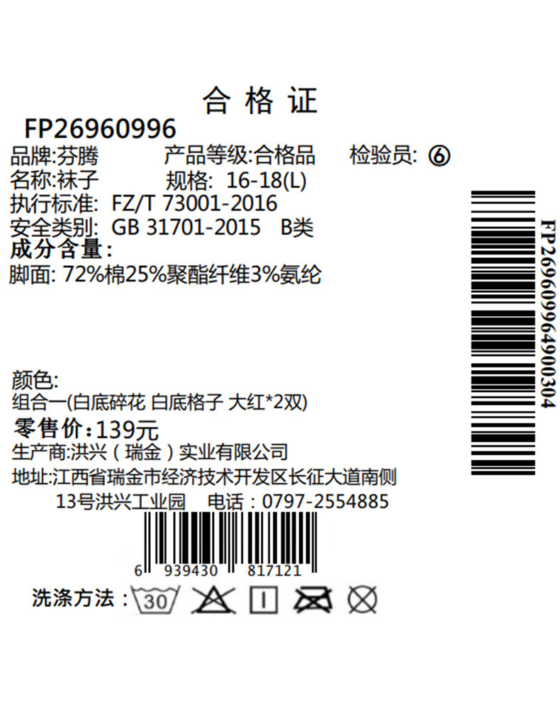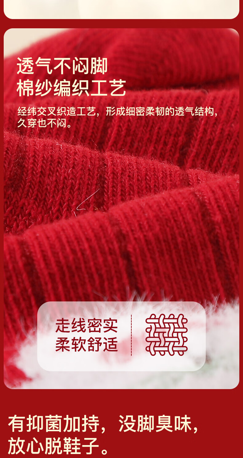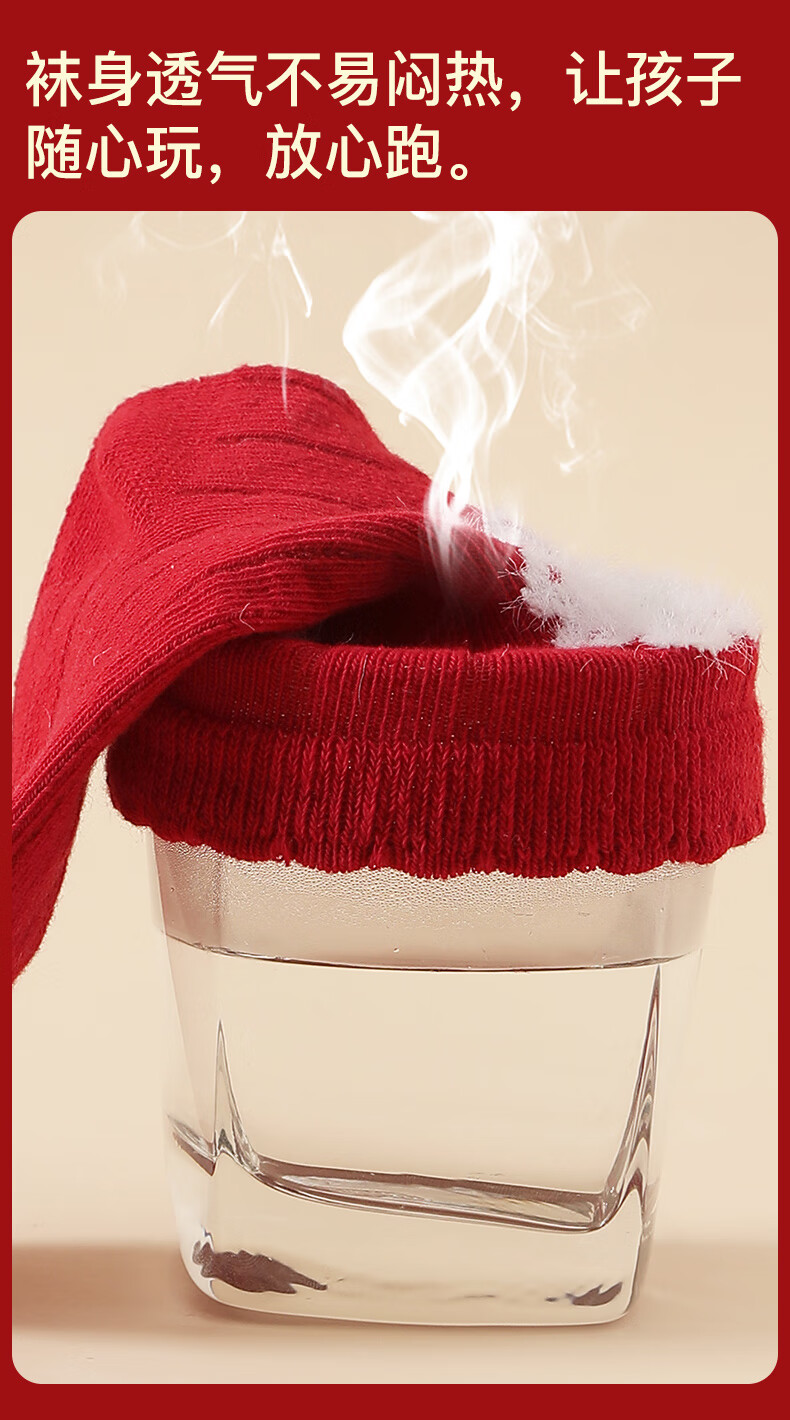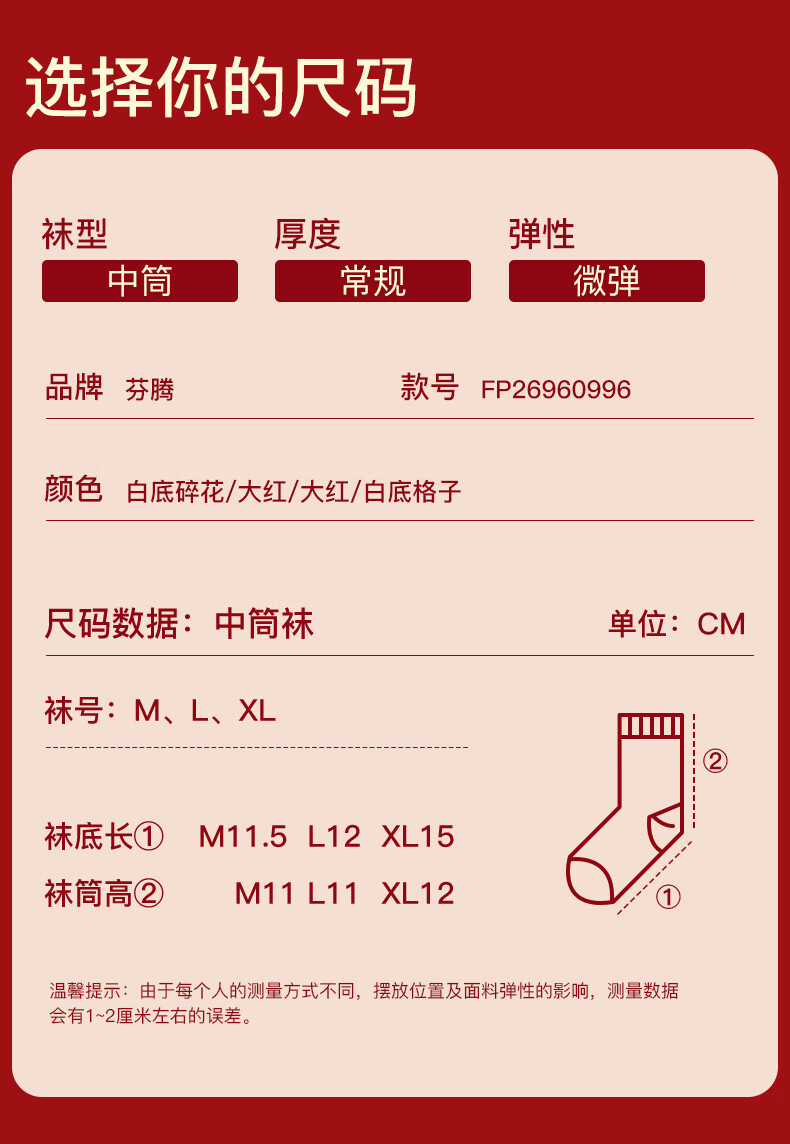 芬腾袜子男童新疆棉2025新款4双装本命年女童柔软透气红品中筒袜新年1 白底碎花/大红/大红/白底格子 4双 6-8岁 (L)