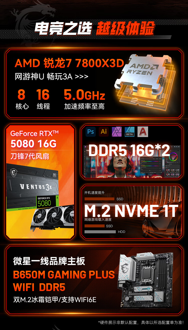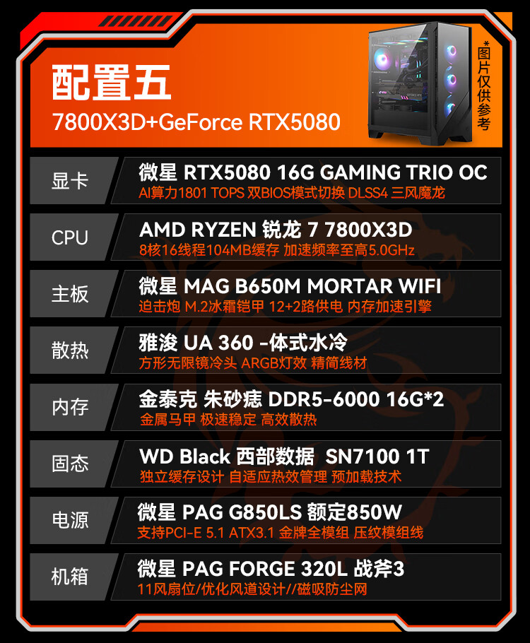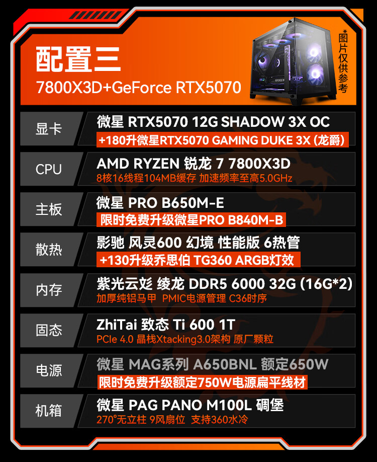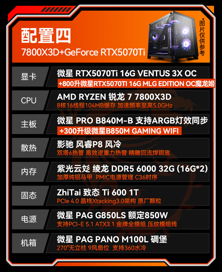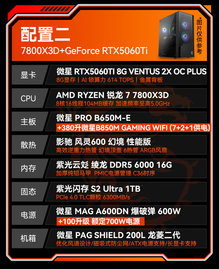微星(MSI)全家桶 锐龙R7 7800X3D 5060Ti/5070/5070Ti/5080电竞游戏直播组装电脑设计渲染AI本地部署台式机 配置3:7800X3D | RTX5070