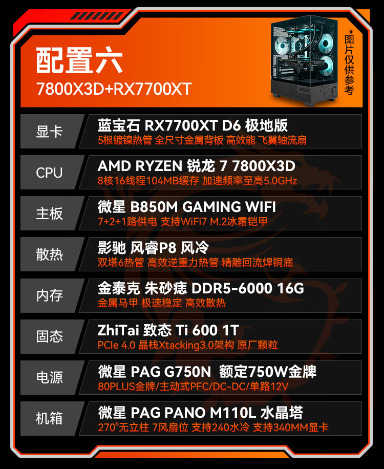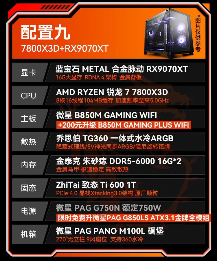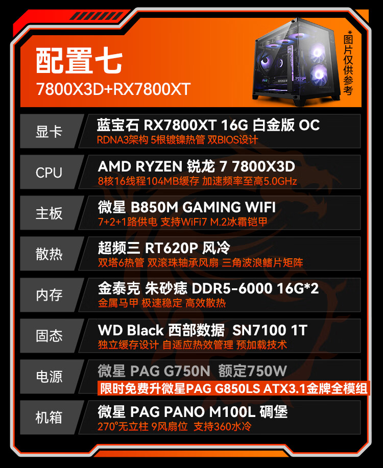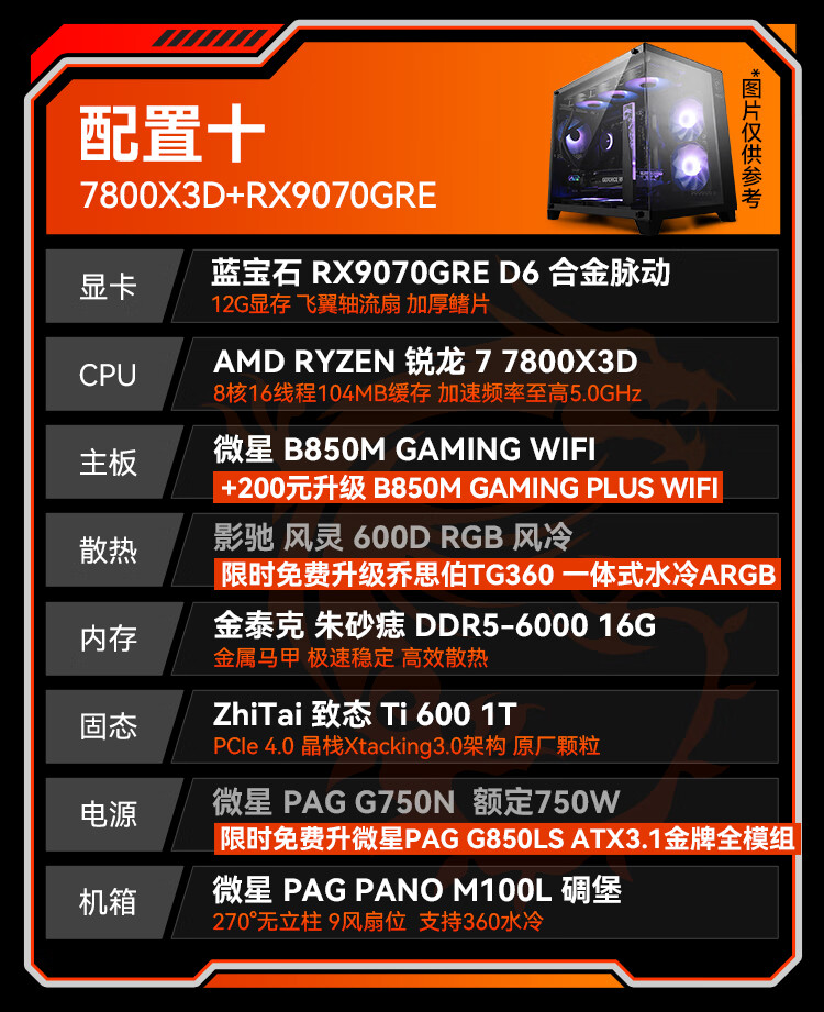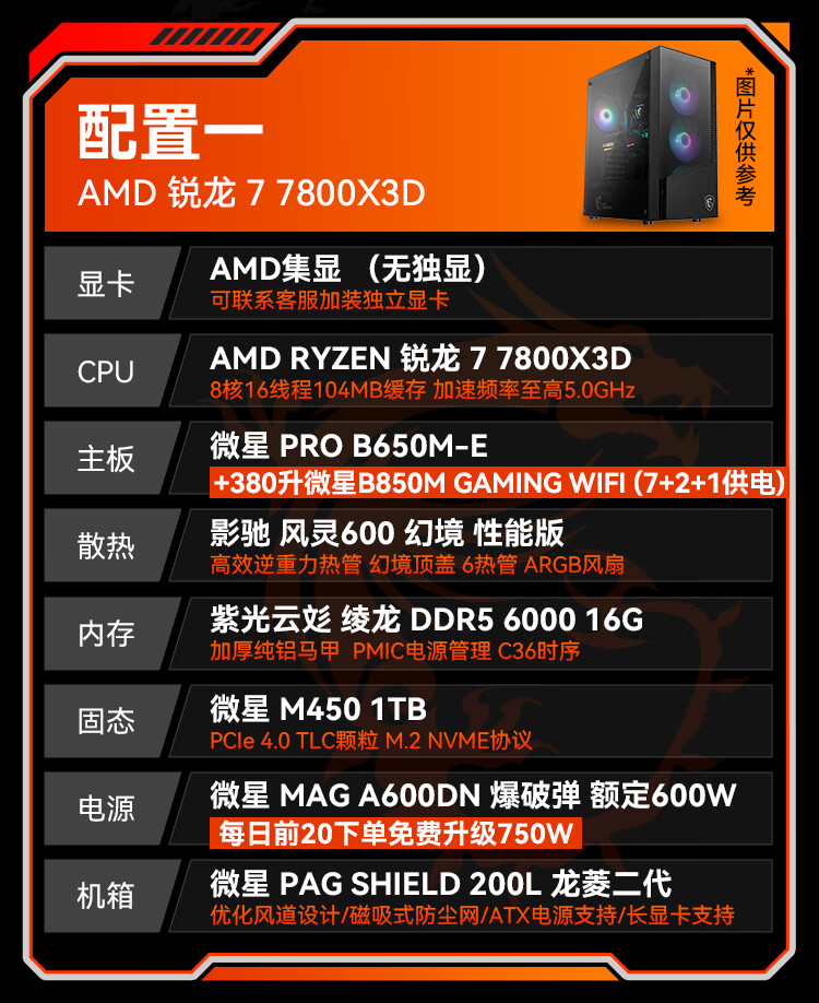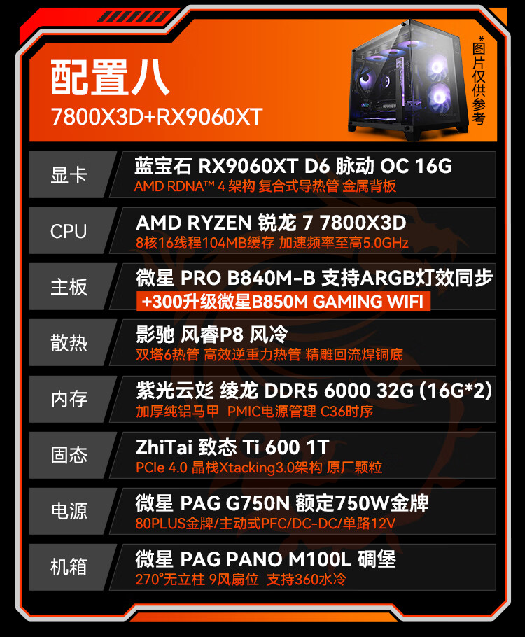 微星(MSI)全家桶 锐龙R7 7800X3D 5060Ti/5070/5070Ti/5080电竞游戏直播组装电脑设计渲染AI本地部署台式机 配置3:7800X3D | RTX5070