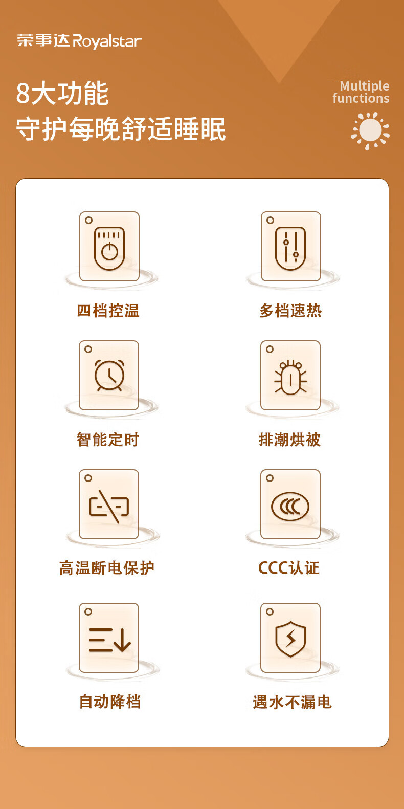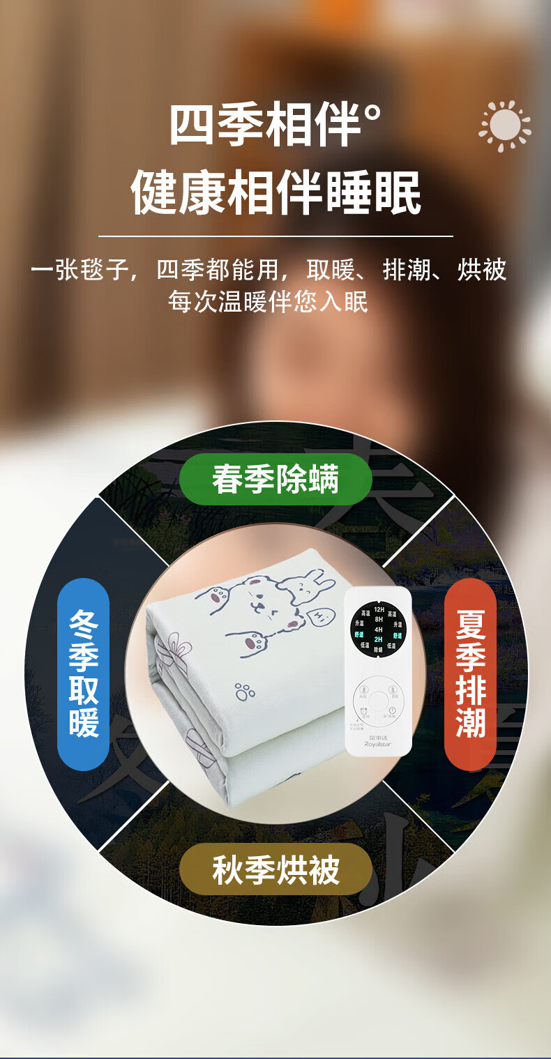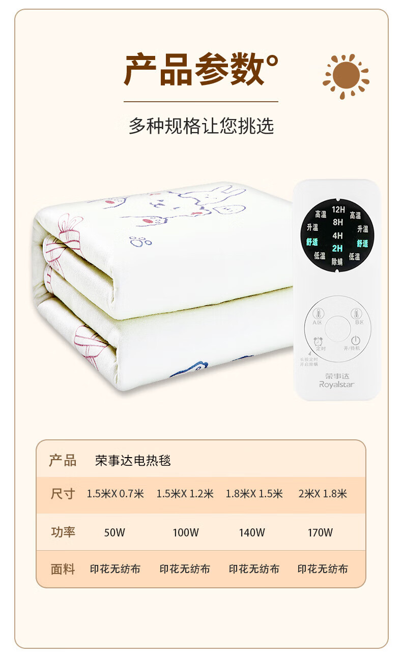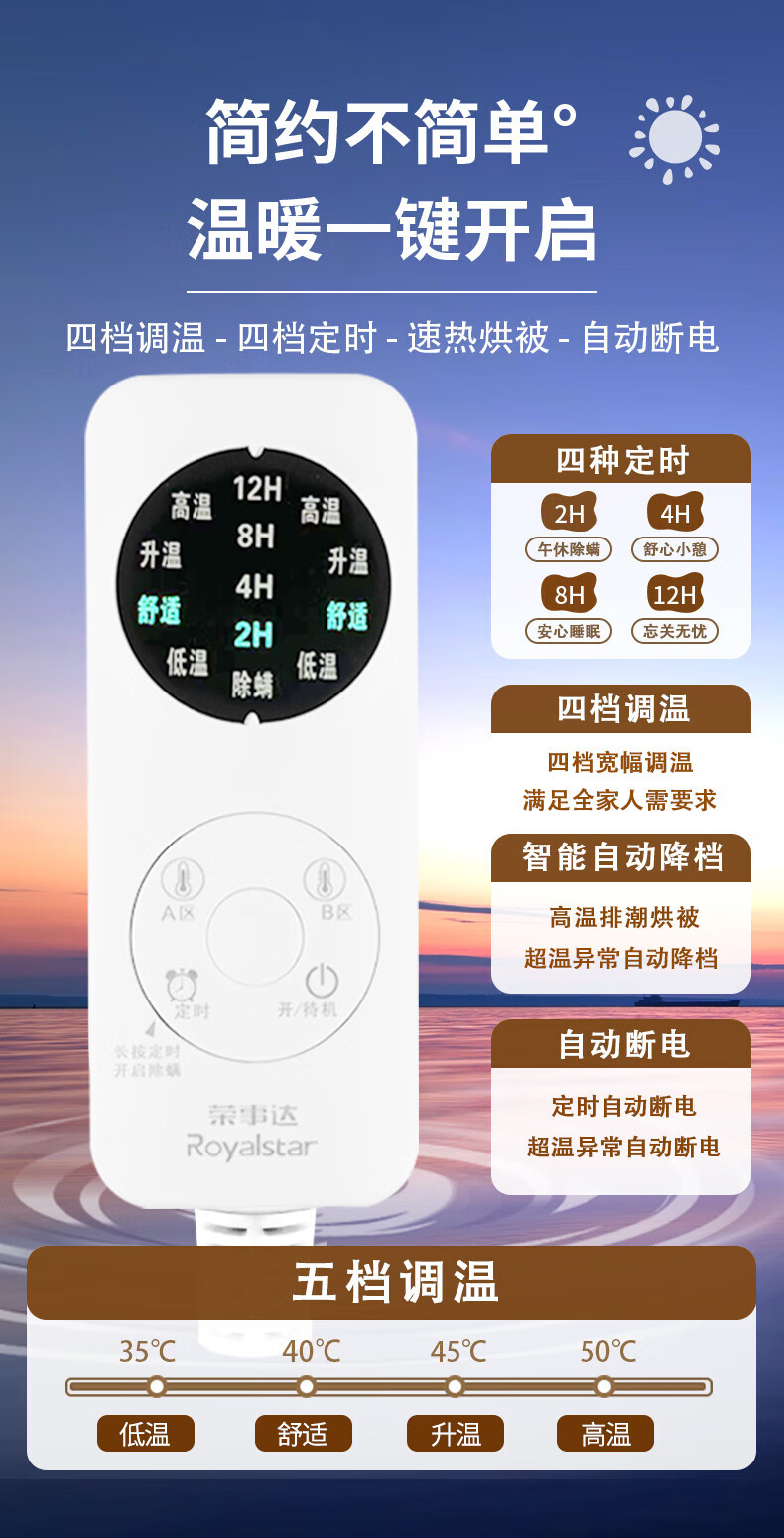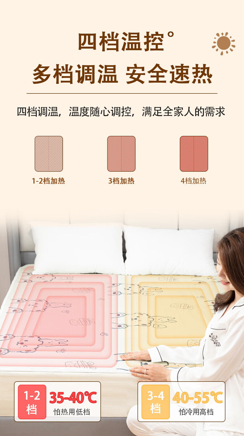 荣事达电热毯单人双人双控石墨烯调温家用电热毯电褥子宿舍暖身毯 150CM*70CM(单人款)