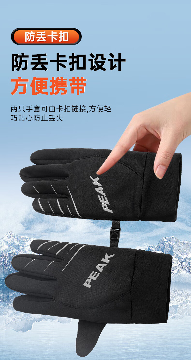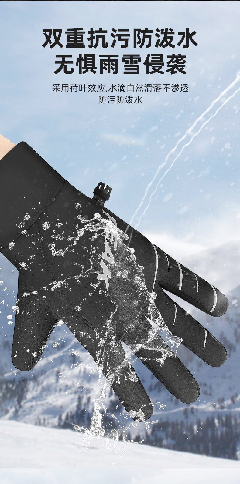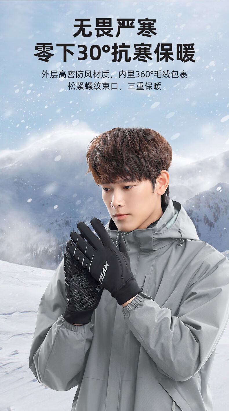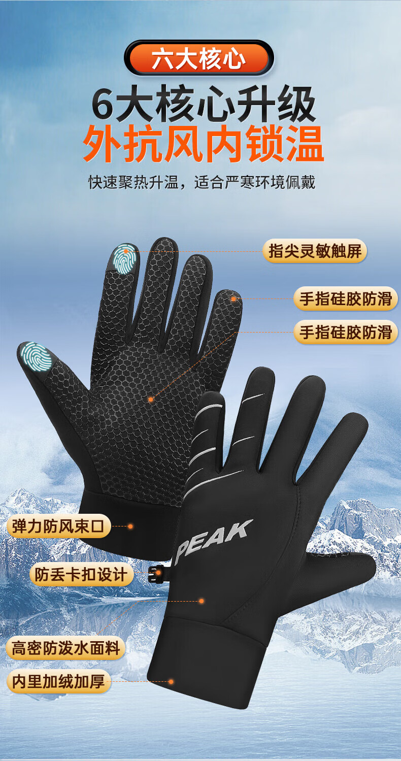 匹克保暖手套冬季骑行加绒加厚电动车摩托车防水防寒手套男女款可触屏 加厚加绒触屏【保暖蓄热】黑色 升级加厚加绒/零下抗寒
