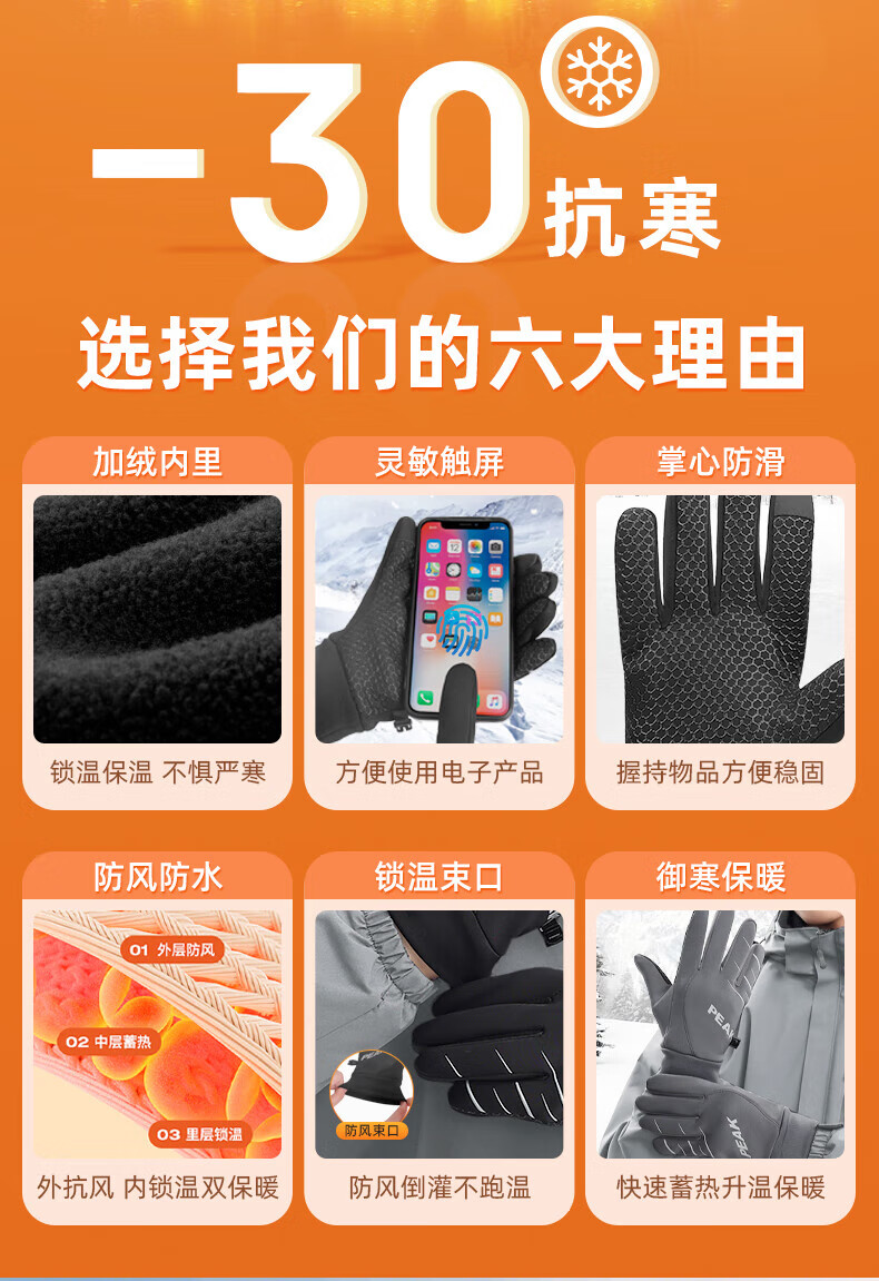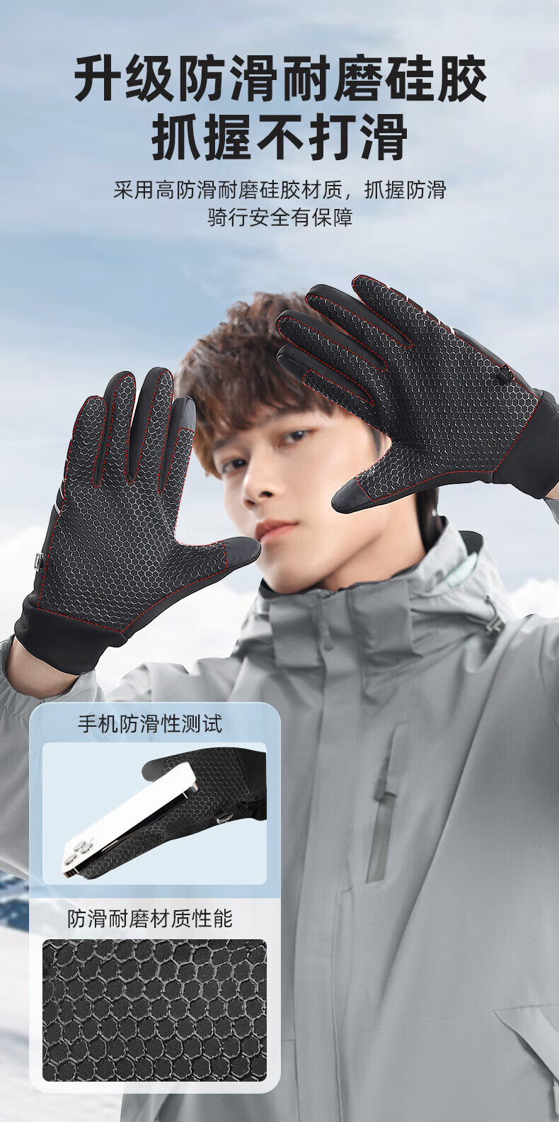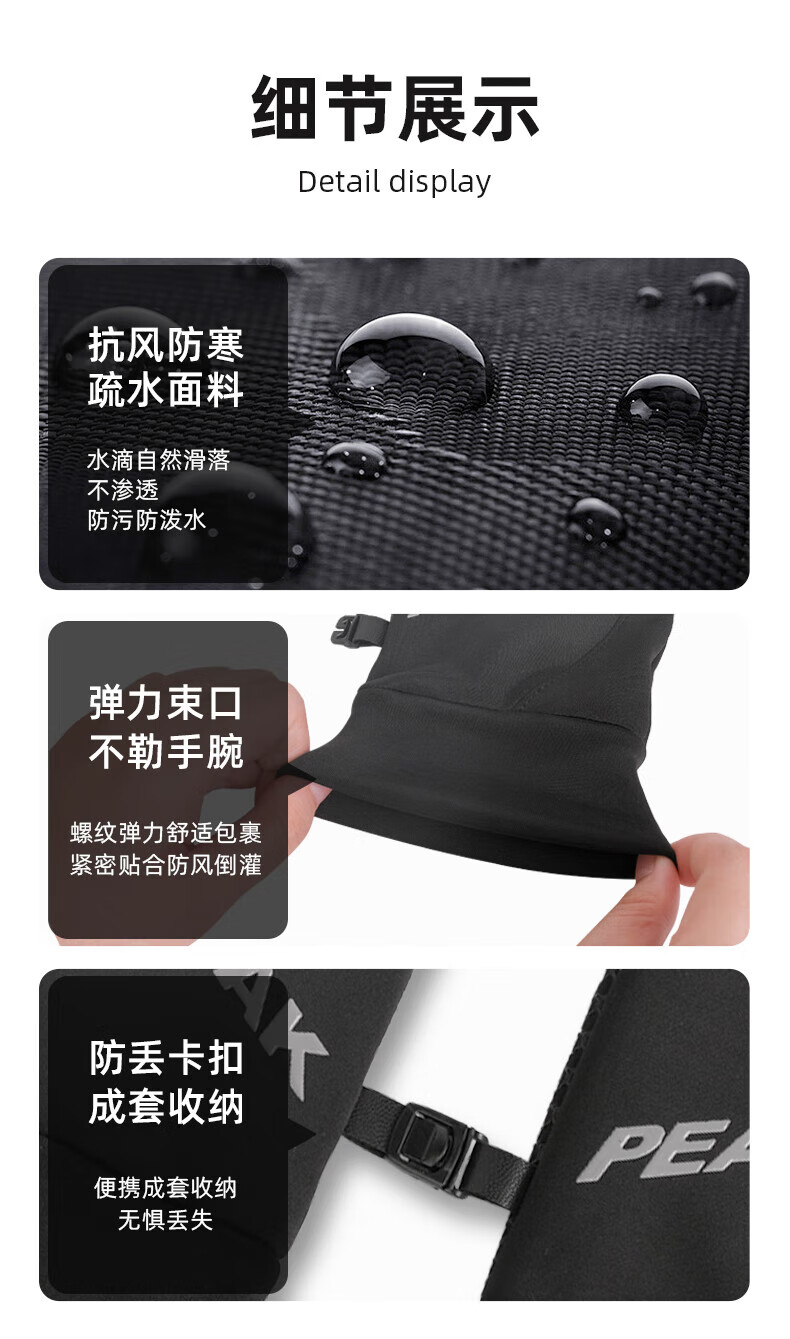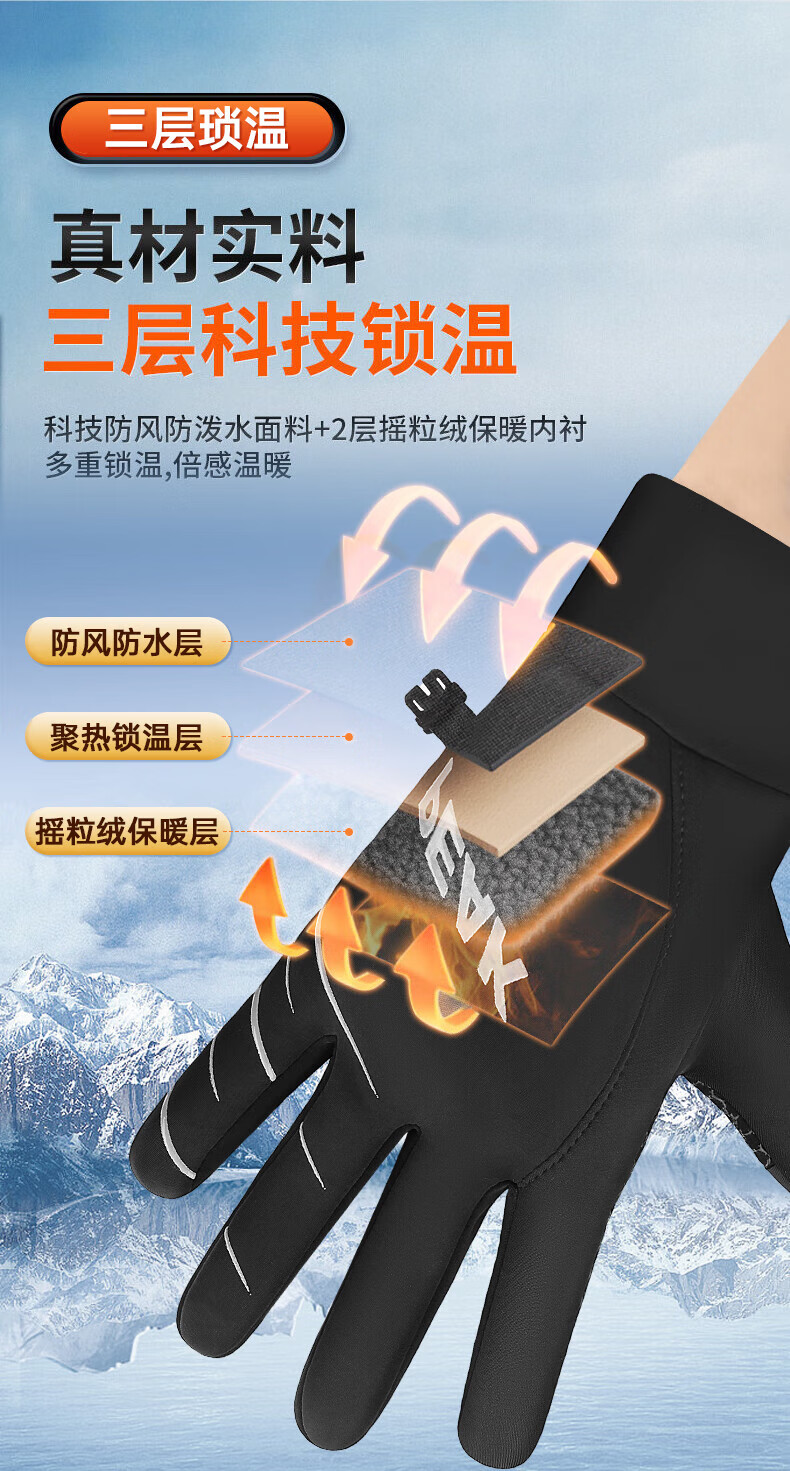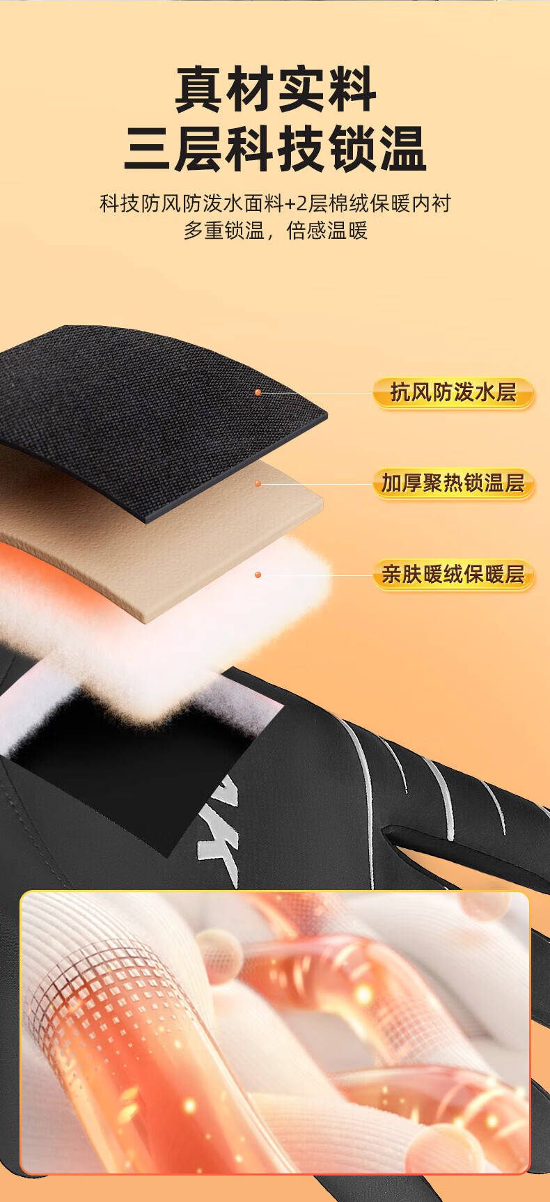 匹克保暖手套冬季骑行加绒加厚电动车摩托车防水防寒手套男女款可触屏 加厚加绒触屏【保暖蓄热】黑色 升级加厚加绒/零下抗寒